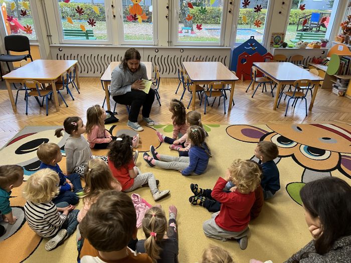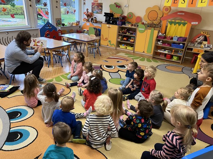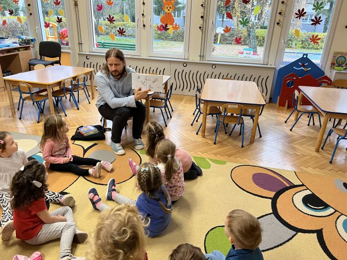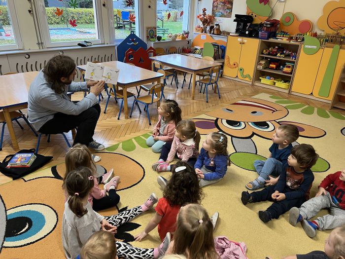 W dniu 16.11.2022r. grupę „Krasnali“ odwiedził Pan Bibliotekarz z Miejskiej Biblioteki Publicznej im. M. Wańkowicza w Stalowej Woli. Są to cykliczne spotkania pracowników MBP z naszymi przedszkolakami.