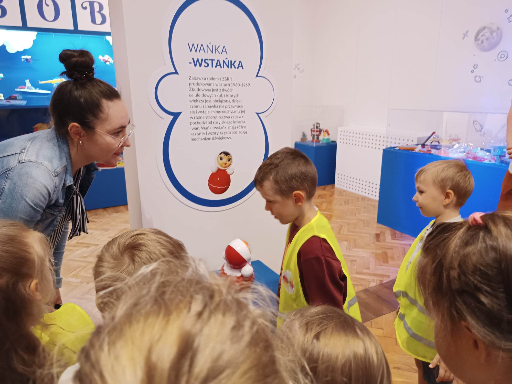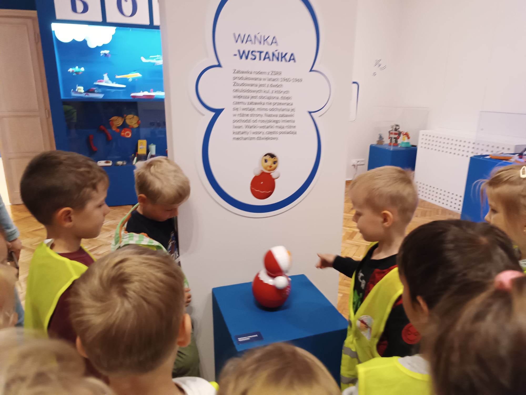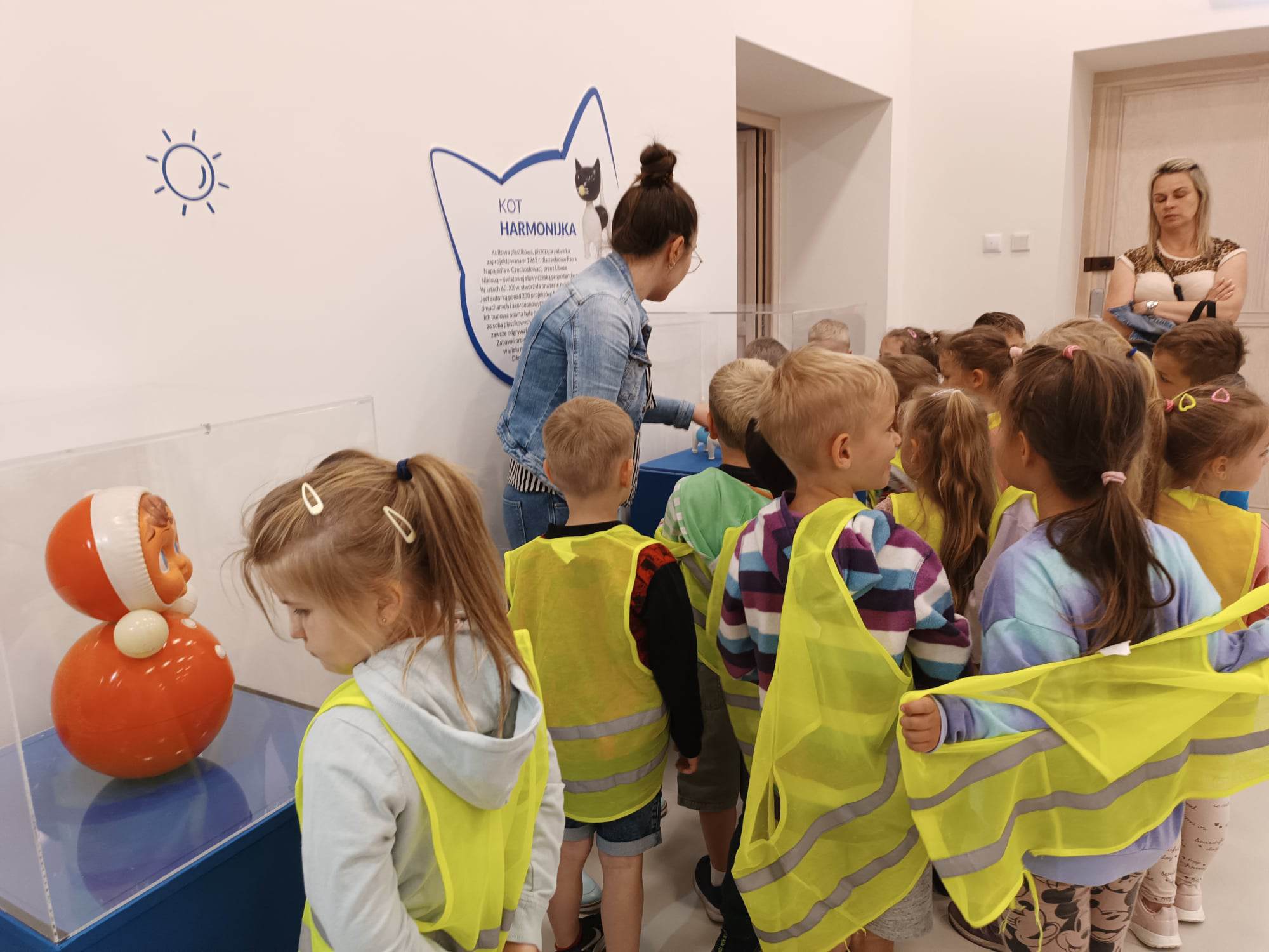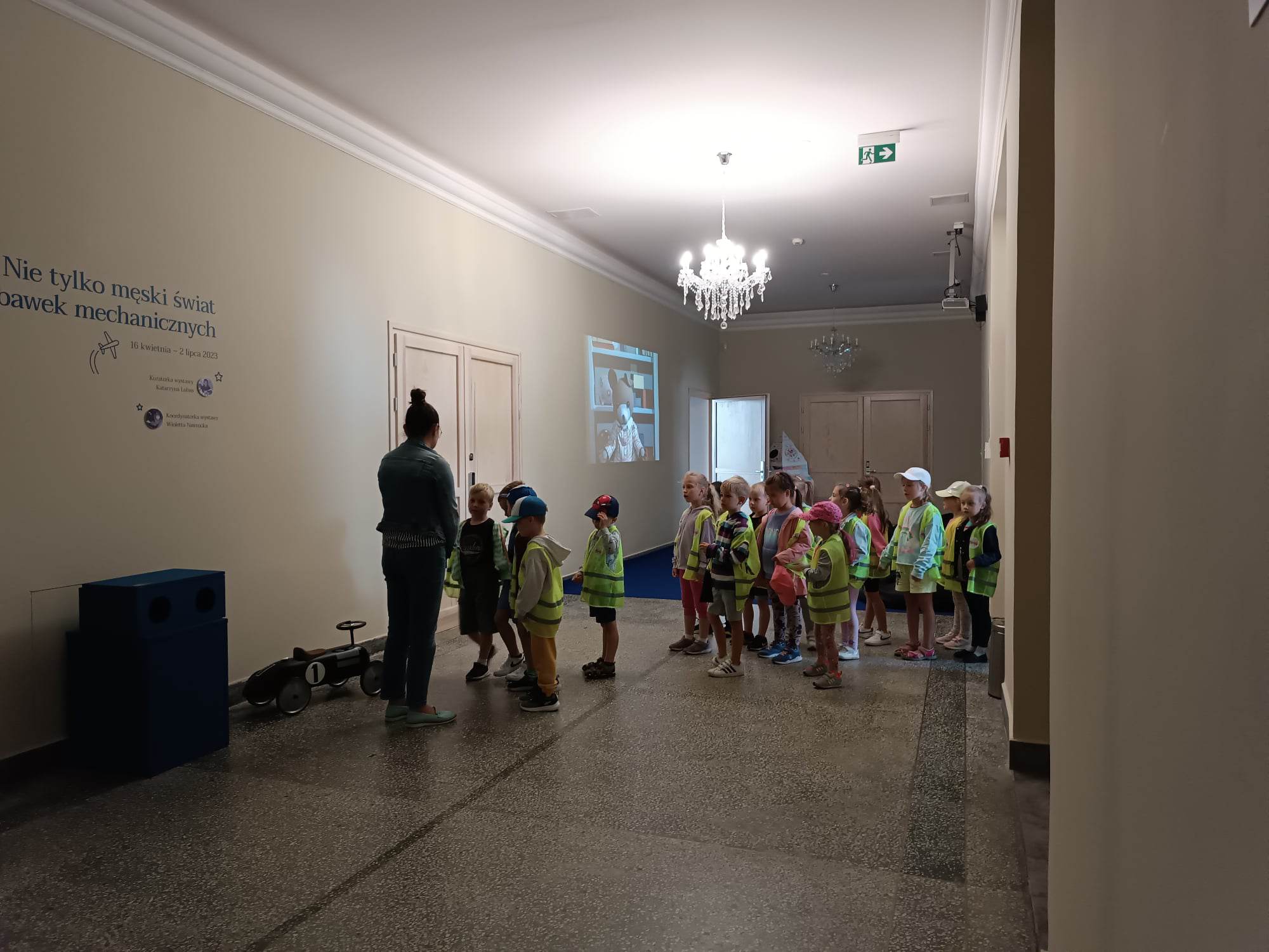 12.06.2023 r. przedszkolaki z grupy „Motylki“ uczestniczyły w wycieczce do Galerii Malarstwa Alfonsa Karpińskiego, by obejrzeć wystawę pn. „Nie tylko męski świat zabawek mechanicznych.“ Ta wyjątkowa interaktywna ekspozycja pozwoliła dzieciom przenieść się w świat zabawek sprzed lat. Dzieci mogły zobaczyć kolorowe zabawki z wbudowanymi mechanizmami, drewniane, metalowe oraz z plastiku, jakimi bawili się ich rodzice, czy dziadkowie. „Motylki“ dowiedziały się, jak wyglądała wańka-wstańka, kot Harmonijka, metalowy bączek, zdalnie sterowane auta, czy gra „Koło fortuny“. Mogły pobawić się niektórymi zabawkami. Oglądnęły także film „Przygody Misia Uszatka”. Na pewno ten dzień zostanie na długo w pamięci naszych „Motylków“.