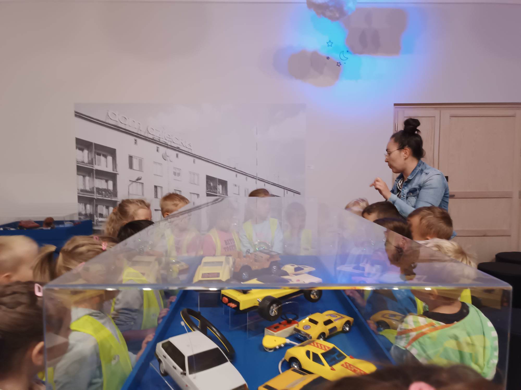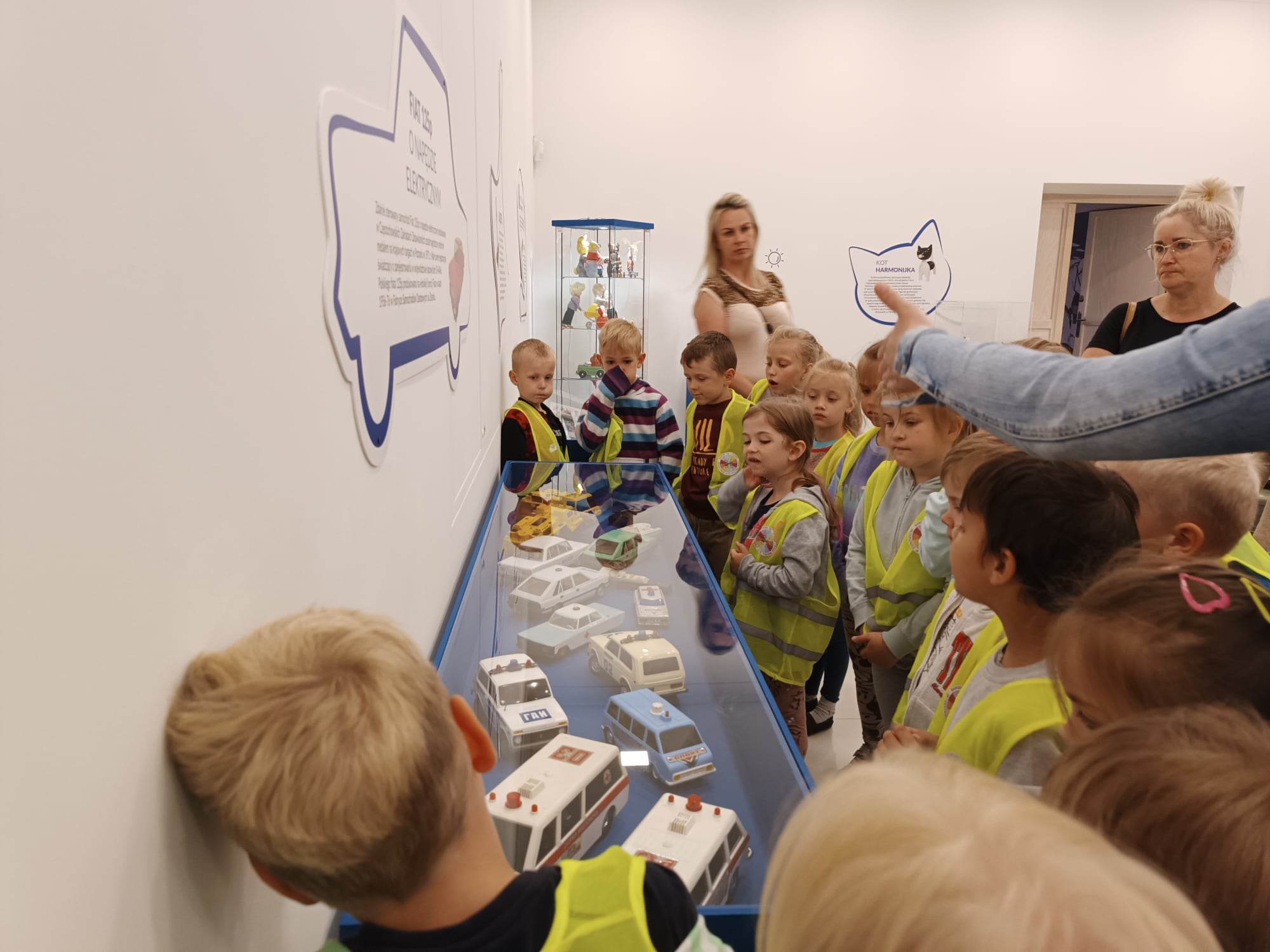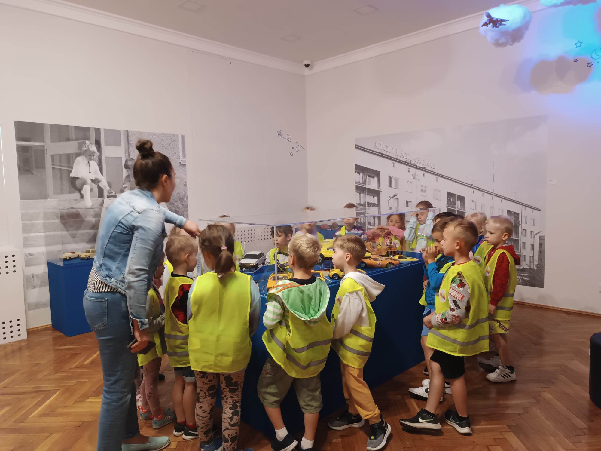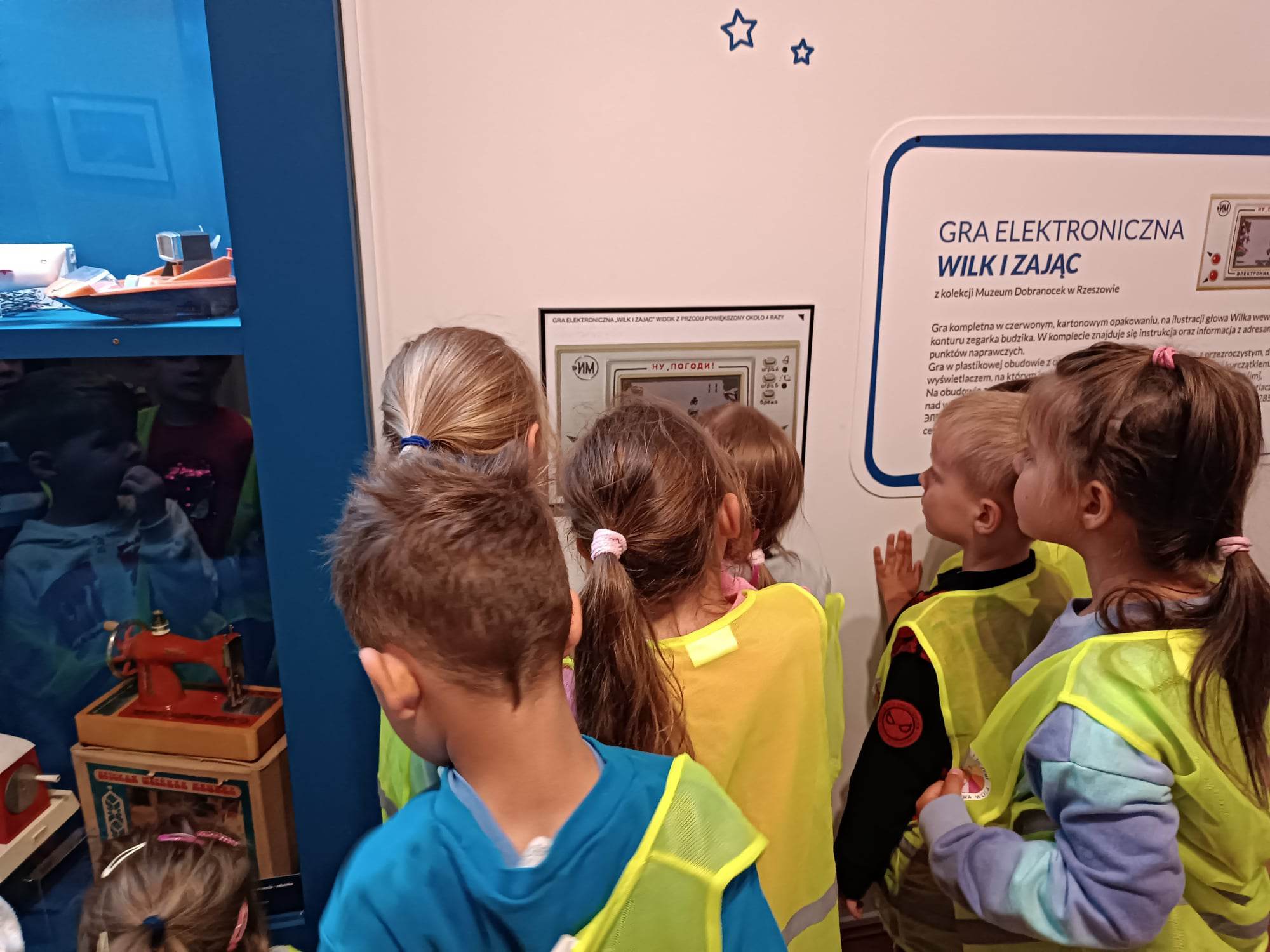 12.06.2023 r. przedszkolaki z grupy „Motylki“ uczestniczyły w wycieczce do Galerii Malarstwa Alfonsa Karpińskiego, by obejrzeć wystawę pn. „Nie tylko męski świat zabawek mechanicznych.“ Ta wyjątkowa interaktywna ekspozycja pozwoliła dzieciom przenieść się w świat zabawek sprzed lat. Dzieci mogły zobaczyć kolorowe zabawki z wbudowanymi mechanizmami, drewniane, metalowe oraz z plastiku, jakimi bawili się ich rodzice, czy dziadkowie. „Motylki“ dowiedziały się, jak wyglądała wańka-wstańka, kot Harmonijka, metalowy bączek, zdalnie sterowane auta, czy gra „Koło fortuny“. Mogły pobawić się niektórymi zabawkami. Oglądnęły także film „Przygody Misia Uszatka”. Na pewno ten dzień zostanie na długo w pamięci naszych „Motylków“.
