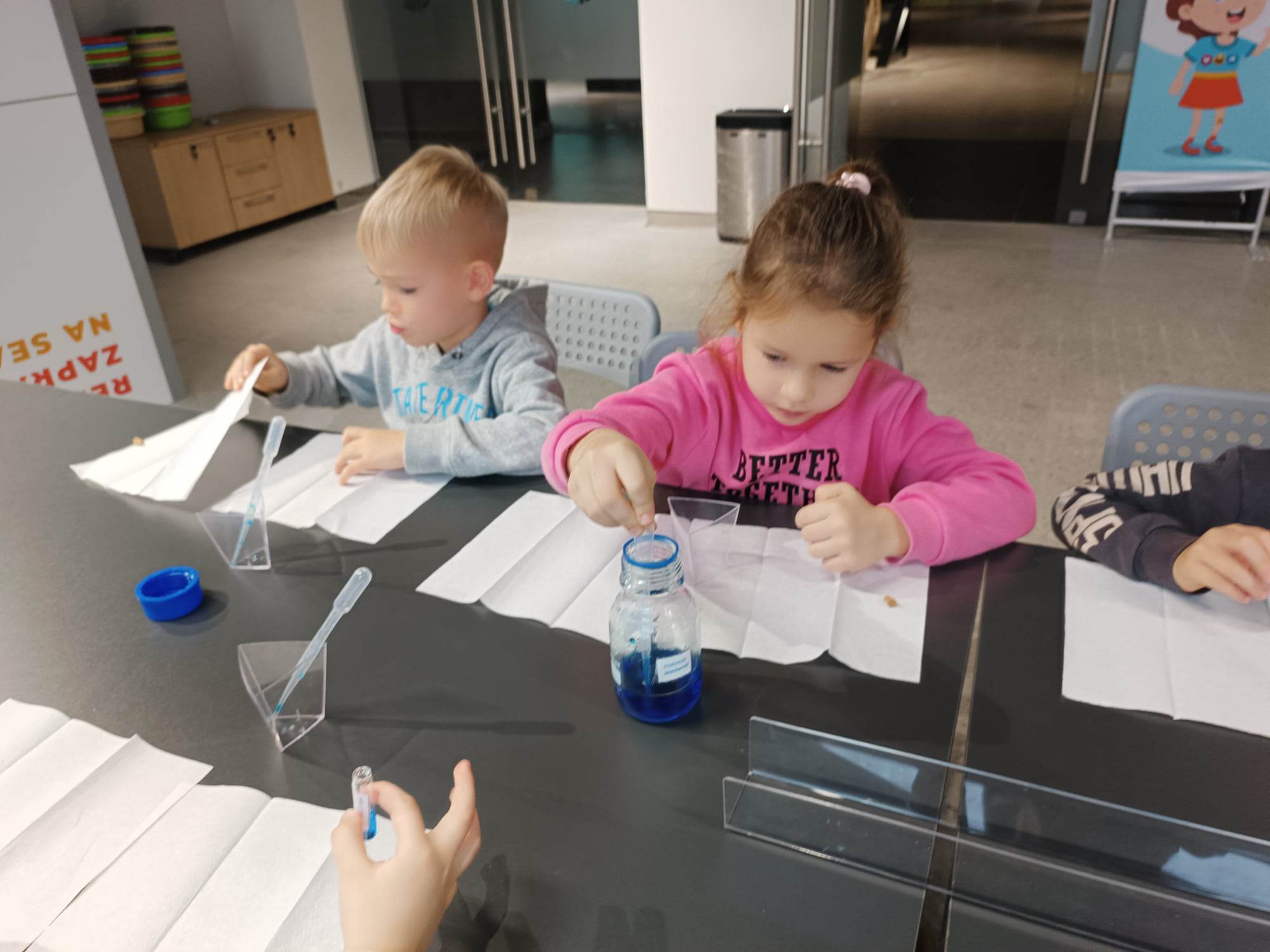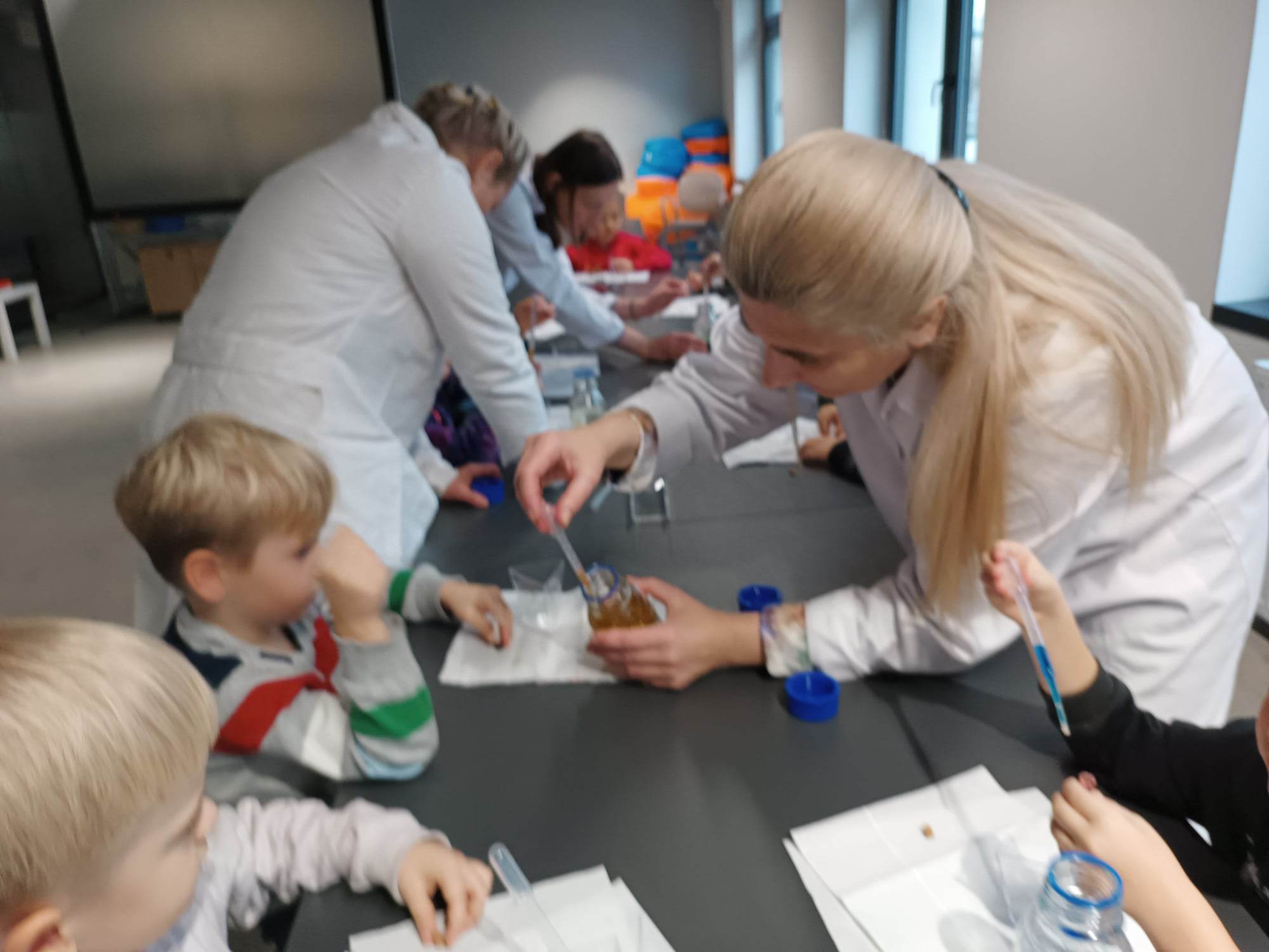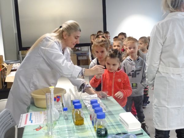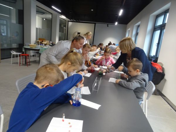 29.11.2022 r. przedszkolaki z grup „Motylki” i „Zajączki” uczestniczyły w wycieczce do Muzeum Centralnego Okręgu Przemysłowego. Muzeum COP to nowe miejsce na mapie Stalowej Woli, które zauroczyło nasze przedszkolaki. Dzieci mogły swobodnie eksplorować przestrzeń zorganizowaną z myślą o najmłodszych – „Miasto dla dzieci”, gdzie wchodziły w role sprzedawców, kucharzy, pracowników poczty, lekarzy, czy budowlańców, czy policjantów. Przedszkolaki mogły „na niby“ wysyłać listy, stemplować je, mogły wystukać na maszynie swoje imię, czy też tworzyły budowle z dużych piankowych klocków. Miejsce to dało im możliwość świetnej zabawy. Motylki i Zajączki uczestniczyły też w warsztatach chemicznych, podczas których każdy stworzył swój eliksir przyjaźni. Była to okazja nie tylko do poznania nazw przedmiotów wykorzystywanych podczas pracy w laboratorium, a także możliwość przypomnienia sobie, jakie wartości są ważne w przyjaźni. Była to dla wszystkich wspaniała wycieczka i z radością wrócimy do Muzeum COP.