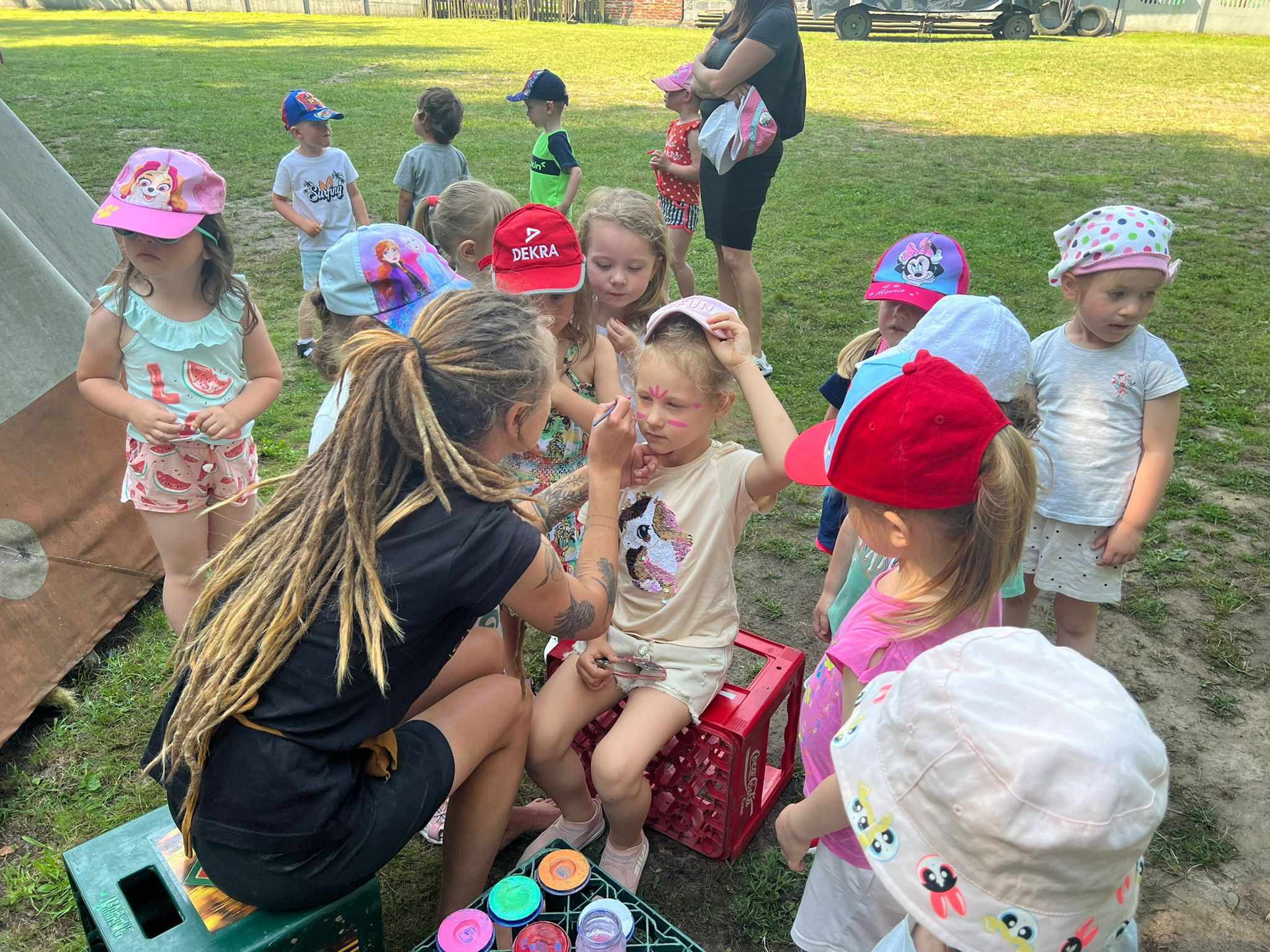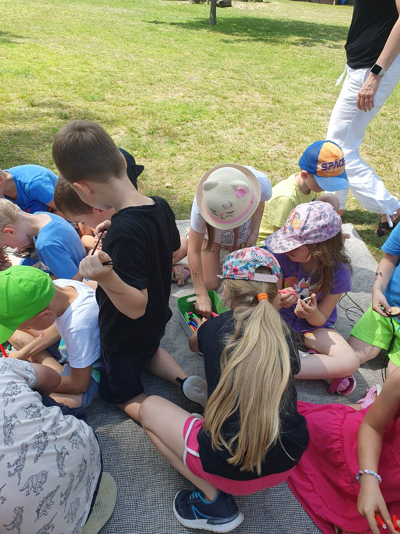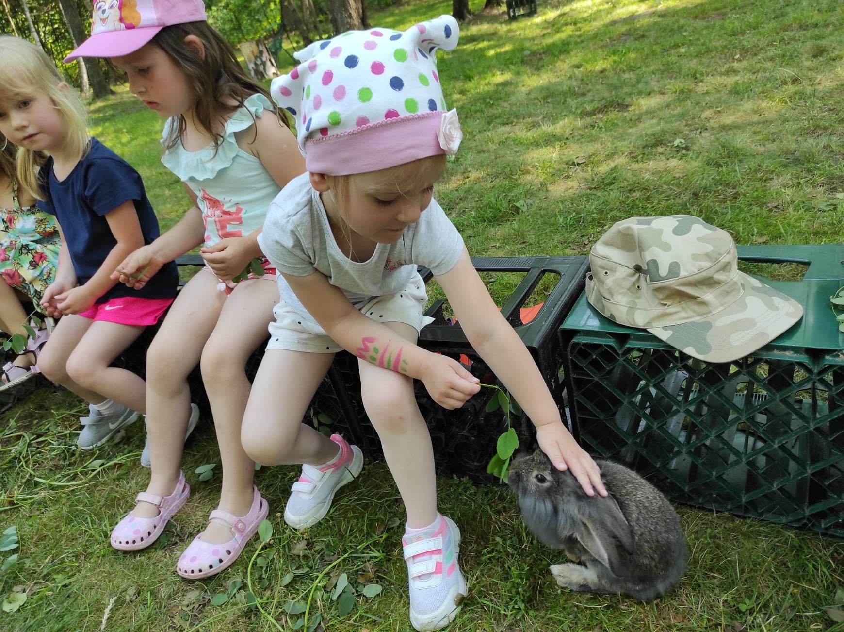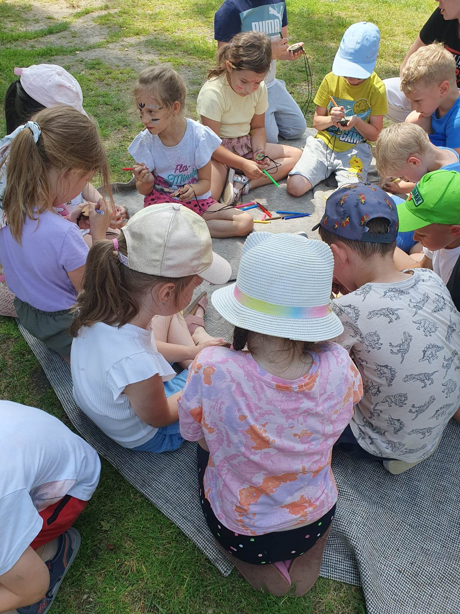 21.06.2023 r. przedszkolaki z Przedszkola nr 15 w Stalowej Woli, w ramach kontynuacji obchodów Dnia Dziecka, pojechały na wycieczkę autokarową do Osady Marianów w Zarzeczu koło Niska. Jako pierwsze, po śniadaniu, pojechały dzieci z grup młodszych; 3-latki grupa „Krasnale”, 4- latki grupa „Misie” oraz dzieci z grupy mieszanej wiekowo 3,4,5-latki,tj. grupa „Biedronki”. Drugą turą, po obiedzie, pojechały dzieci z grup starszych; 5-latki grupa „ Motylki” oraz 6-latki grupa „Zajączki”. Celem wyjazdu było przybliżenie dzieciom zdrowego stylu życia, a także rozbudzanie zainteresowania przyrodą i jej darami. Nauka sposobów spędzania wolnego czasu w poszanowaniu środowiska oraz umiejętne korzystanie z jego elementów z taktem, szacunkiem oraz z kulturą. W sposób praktyczny poznały znaczenie słowa „ekologia” ze wszystkimi jej elementami. Organizowane zabawy, zajęcia oraz sam pobyt na świeżym powietrzu z dala od miasta w otoczeniu przyrody, będącej naturalnym źródłem bodźców z bardzo małą ingerencją człowieka, miało pozytywny wpływ na zdrowie psychiczne i fizyczne dzieci, a także przyczyniło się do kształtowania u dzieci postawy zainteresowania, dbałości o przyrodę w jej niezmienionej formie już od najmłodszych lat. Rozbudziła się świadomość przestrzegania zasad ochrony przyrody w codziennym życiu. Na miejscu zostaliśmy przywitani przez gospodarza Osady Marianów. Zwiedzanie rozpoczęliśmy od wyjaśnienia pojęcia ekologia, a przedszkolaki miały możliwość obserwacji przyrody z naturalną jej ekspozycją, minimalistyczną ingerencją w jej urok ze strony człowieka. Otoczenie bezpośrednio wtapiało się w las ze starodrzewiem. Pierwszym elementem pobytu było przejście przez zawieszoną na wysokości kładkę i zjazd na rolce . Dzieci bez oporów skorzystały z atrakcji, radość nie miała granic. Kolejnym elementem wycieczki była wizyta u królików. Wypuszczone z „Domku dla królikow” w prowizorycznej zagródce skubały świeżą trawę. Dzieci miały możliwość wielozmysłowego poznania zwierząt. Przedszkolaki mogły pogłaskać królika, umiejętnie wziąć na ręce, aby ich nie podrapały i przytulić. W dalszej części wycieczki dzieci wzięły udział w warsztatach malowania na folii rozwieszonej pomiędzy drzewami. Po zakończonych warsztatach dzieci zostały przygotowane do dalszej zabawy, tym razem w Indian, gospodyni wykonała na ich twarzach malunki w barwach wojennych i zaprosiła do Tipi, gdzie wspólnie z gospodarzem uczyły się różnych zawołań plemiennych. Kolejnym etapem była chwila odpoczynku. Dzieci z apetytem zjadły bułeczki, napiły się wody z limonką i miętą z ogrodu gospodarzy. Przedszkolaki miały możliwość poznania roślinności otaczającej place zabaw oraz nauczyły się jak nazywają się piętra lasu. Byli chętni do odpoczynku w hamaku. Po chwili odpoczynku, rozmów z kolegami lub wsłuchiwaniu się w ciszę lasu, śpiew ptaków ,gotowe były do dalszych zabaw na łonie natury, to był czas wolny. Możliwości zabaw nie było końca. Atrakcją był konik na biegunach, jazda na rowerze, szaleństwa na trampolinach, jazda na gokartach, zabawy w domku na drzewie, zjeżdżalnie, huśtawki. Chłopcy, już tradycyjnie, grali w piłkę nożną. W trakcie zabaw gospodyni Osady zaprosiła dzieci do wykonania pamiątkowych zawieszek z kawałków drewnianych gałązek ozdabianych flamastrami i koralikami. Własnoręcznie wykonane zawieszki dekorowały szyję każdego uczestnika. Kolejnym etapem zabaw w Osadzie Marianów była zabawa z balonami. Dzieci otrzymały balonowe miecze i razem z gospodarzem Osady złożyły przysięgę przygotowującą do walki. Grupa podzielona została na zespoły, dziewczynki i chłopcy. Każda z drużyn wydała okrzyk zapraszający i dzieci przystąpiły do zabawy, każdy musiał dotknąć balonowym mieczem największą liczbę dzieci. Potem zachęcone przez gospodarza zaatakowały wychowawczynie. Grupa podzielona została na zespoły, dziewczynki i chłopcy. Każda z drużyn wydała okrzyk zapraszający i dzieci przystąpiły do zabawy, każdy musiał dotknąć balonowym mieczem największą liczbę dzieci. Potem zachęcone przez gospodarza zaatakowały wychowawczynie. Zamierzone cele wycieczki zostały zrealizowane. Przedszkolaki chętnie i z dużym zaangażowaniem uczestniczyły we wszystkich zorganizowanych zajęciach. Umorusane i uśmiechnięte buzie dzieci świadczyły o tym, że Dzień Dziecka w Osadzie Marianów przyniósł im dużo radości i będzie długo przez nie wspominany. Był to wspaniały prezent. Zdobyły wiedzę z zakresu ekologii i poznały sposoby spędzania wolnego czasu na łonie natury.