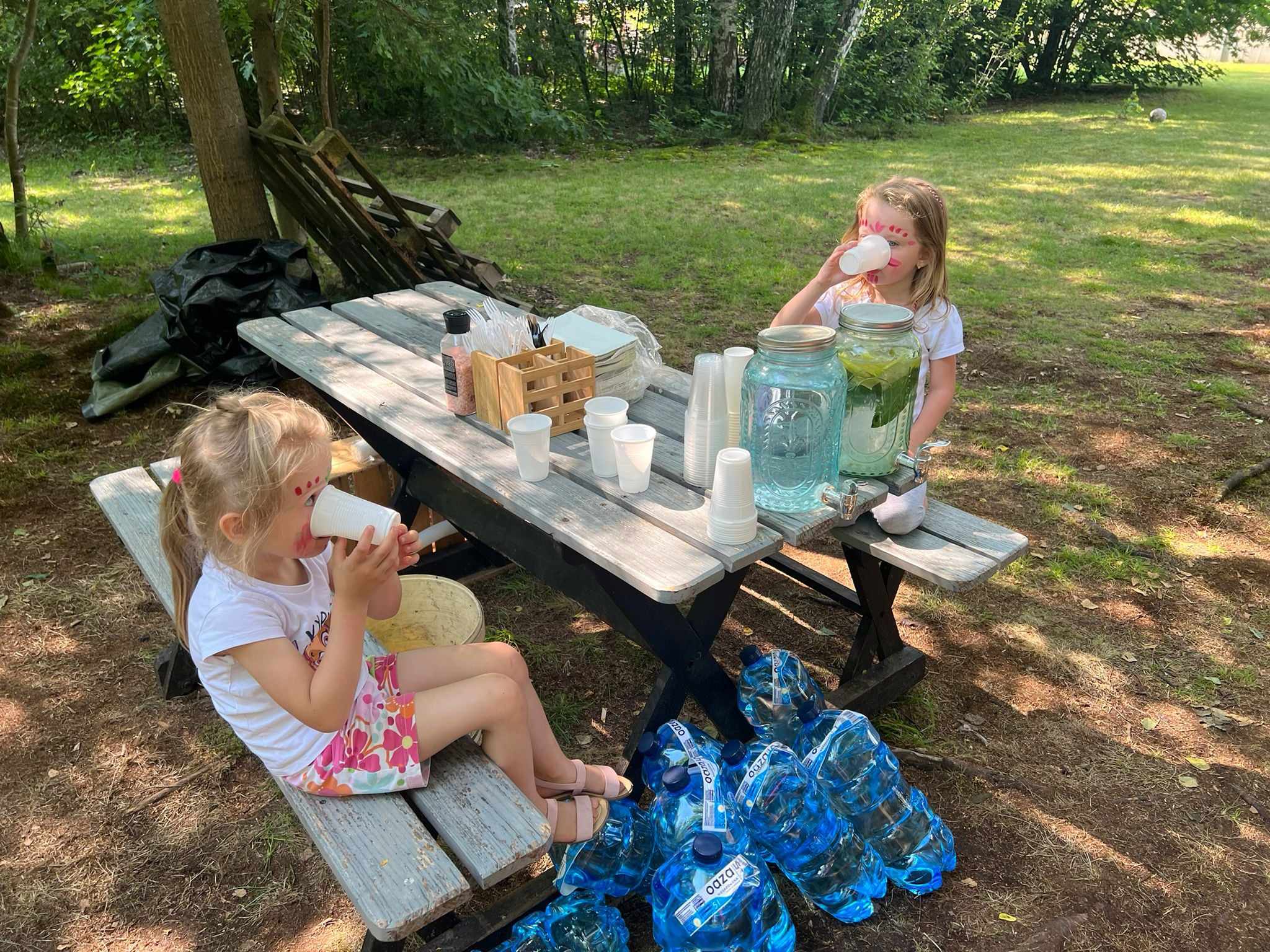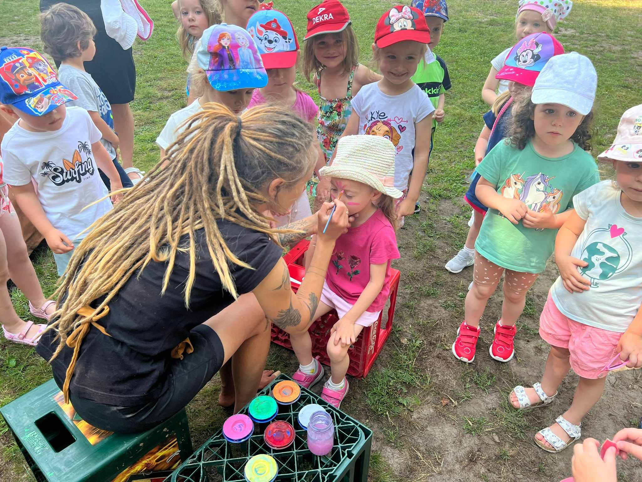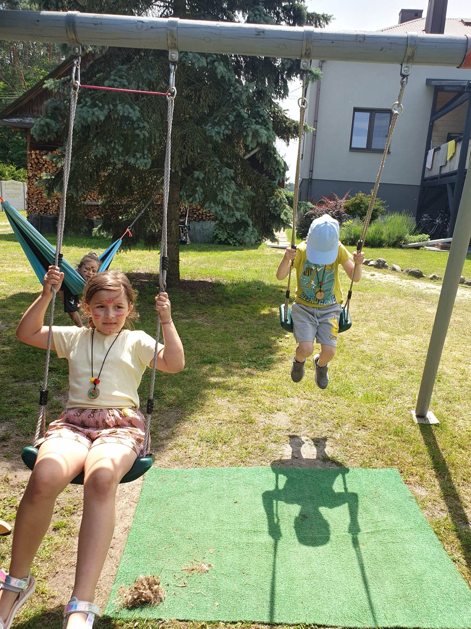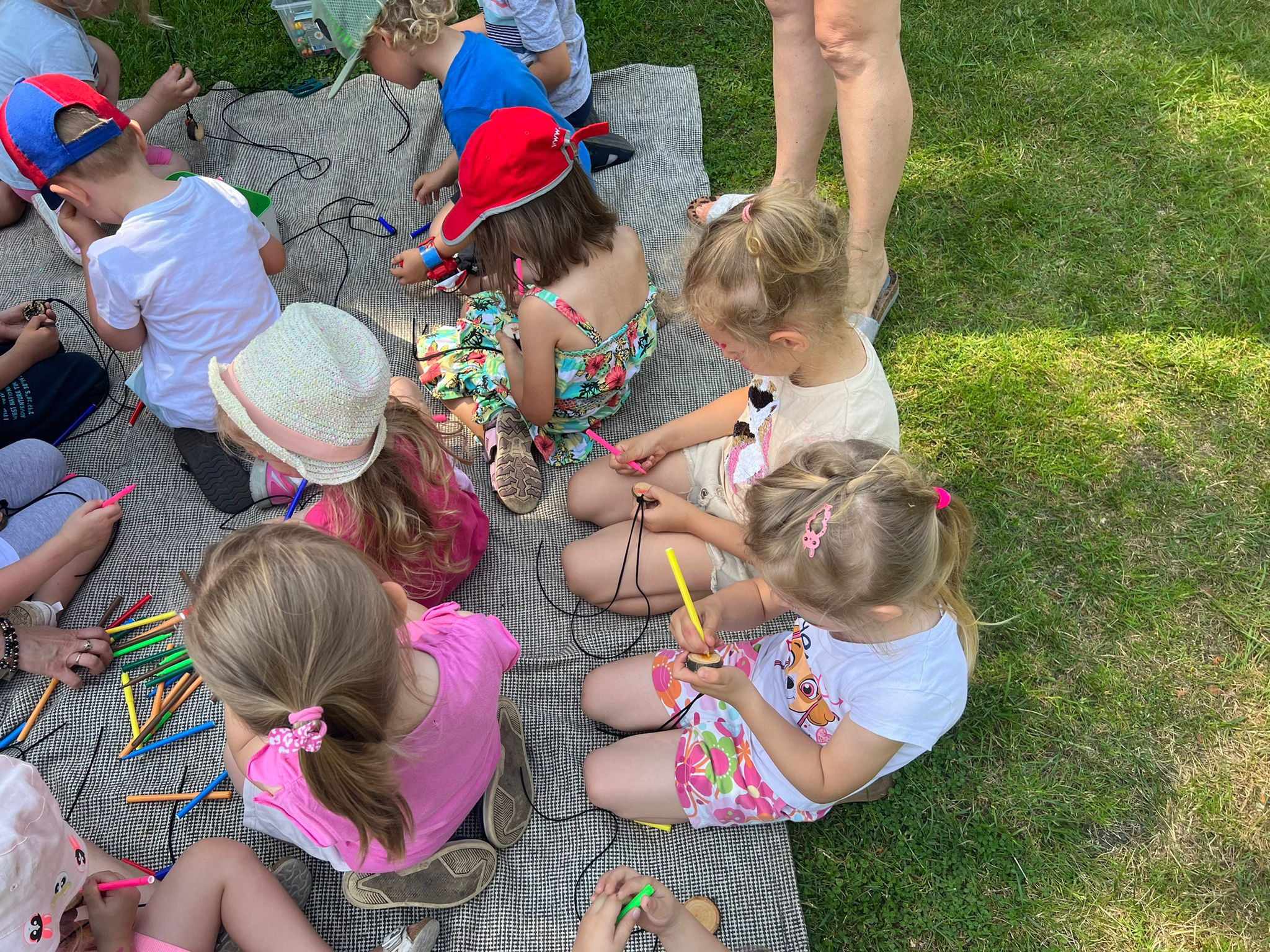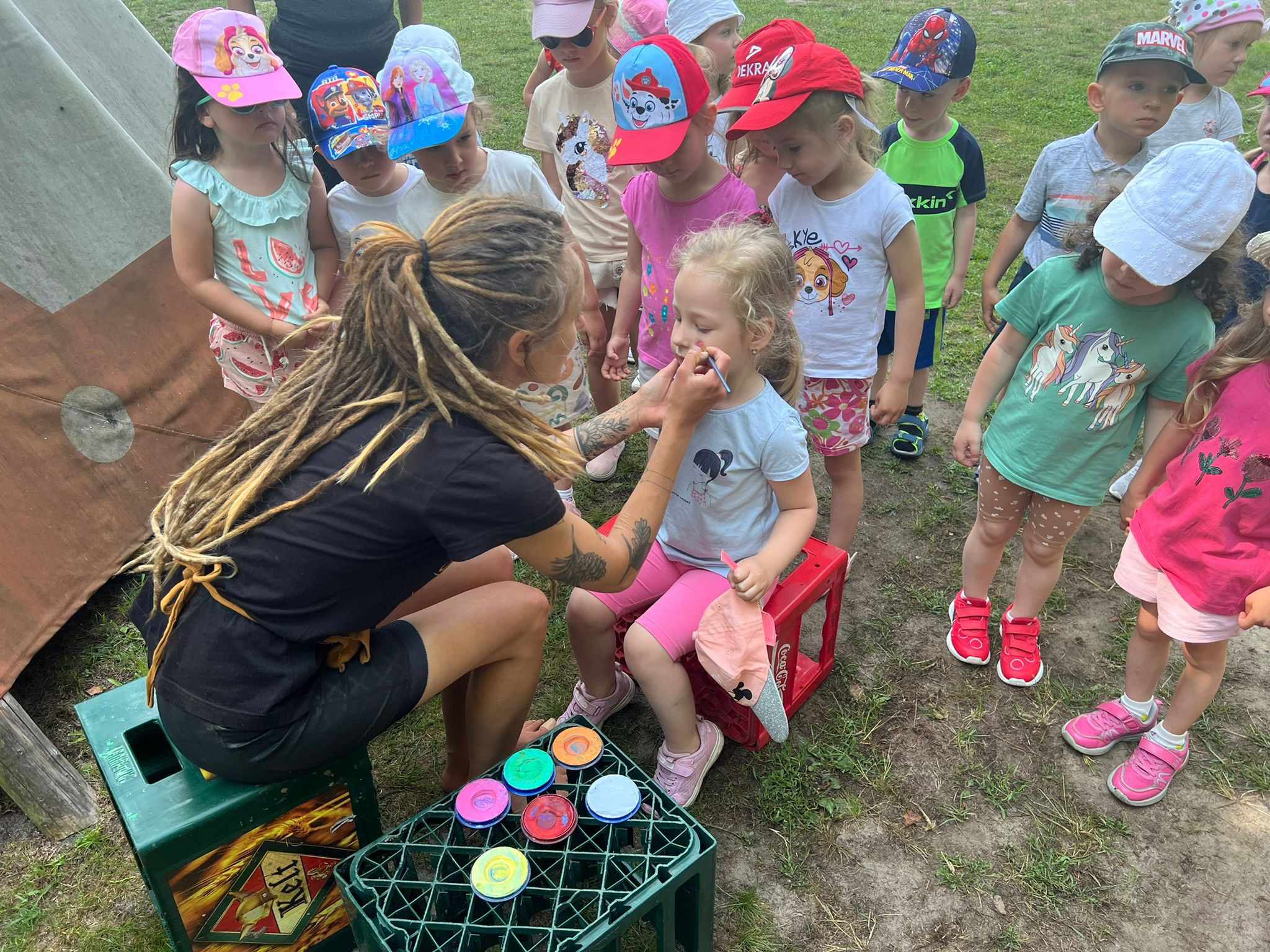 21.06.2023 r. przedszkolaki z Przedszkola nr 15 w Stalowej Woli, w ramach kontynuacji obchodów Dnia Dziecka, pojechały na wycieczkę autokarową do Osady Marianów w Zarzeczu koło Niska. Jako pierwsze, po śniadaniu, pojechały dzieci z grup młodszych; 3-latki grupa „Krasnale”, 4- latki grupa „Misie” oraz dzieci z grupy mieszanej wiekowo 3,4,5-latki,tj. grupa „Biedronki”. Drugą turą, po obiedzie, pojechały dzieci z grup starszych; 5-latki grupa „ Motylki” oraz 6-latki grupa „Zajączki”. Celem wyjazdu było przybliżenie dzieciom zdrowego stylu życia, a także rozbudzanie zainteresowania przyrodą i jej darami. Nauka sposobów spędzania wolnego czasu w poszanowaniu środowiska oraz umiejętne korzystanie z jego elementów z taktem, szacunkiem oraz z kulturą. W sposób praktyczny poznały znaczenie słowa „ekologia” ze wszystkimi jej elementami. Organizowane zabawy, zajęcia oraz sam pobyt na świeżym powietrzu z dala od miasta w otoczeniu przyrody, będącej naturalnym źródłem bodźców z bardzo małą ingerencją człowieka, miało pozytywny wpływ na zdrowie psychiczne i fizyczne dzieci, a także przyczyniło się do kształtowania u dzieci postawy zainteresowania, dbałości o przyrodę w jej niezmienionej formie już od najmłodszych lat. Rozbudziła się świadomość przestrzegania zasad ochrony przyrody w codziennym życiu. Na miejscu zostaliśmy przywitani przez gospodarza Osady Marianów. Zwiedzanie rozpoczęliśmy od wyjaśnienia pojęcia ekologia, a przedszkolaki miały możliwość obserwacji przyrody z naturalną jej ekspozycją, minimalistyczną ingerencją w jej urok ze strony człowieka. Otoczenie bezpośrednio wtapiało się w las ze starodrzewiem. Pierwszym elementem pobytu było przejście przez zawieszoną na wysokości kładkę i zjazd na rolce . Dzieci bez oporów skorzystały z atrakcji, radość nie miała granic. Kolejnym elementem wycieczki była wizyta u królików. Wypuszczone z „Domku dla królikow” w prowizorycznej zagródce skubały świeżą trawę. Dzieci miały możliwość wielozmysłowego poznania zwierząt. Przedszkolaki mogły pogłaskać królika, umiejętnie wziąć na ręce, aby ich nie podrapały i przytulić. W dalszej części wycieczki dzieci wzięły udział w warsztatach malowania na folii rozwieszonej pomiędzy drzewami. Po zakończonych warsztatach dzieci zostały przygotowane do dalszej zabawy, tym razem w Indian, gospodyni wykonała na ich twarzach malunki w barwach wojennych i zaprosiła do Tipi, gdzie wspólnie z gospodarzem uczyły się różnych zawołań plemiennych. Kolejnym etapem była chwila odpoczynku. Dzieci z apetytem zjadły bułeczki, napiły się wody z limonką i miętą z ogrodu gospodarzy. Przedszkolaki miały możliwość poznania roślinności otaczającej place zabaw oraz nauczyły się jak nazywają się piętra lasu. Byli chętni do odpoczynku w hamaku. Po chwili odpoczynku, rozmów z kolegami lub wsłuchiwaniu się w ciszę lasu, śpiew ptaków ,gotowe były do dalszych zabaw na łonie natury, to był czas wolny. Możliwości zabaw nie było końca. Atrakcją był konik na biegunach, jazda na rowerze, szaleństwa na trampolinach, jazda na gokartach, zabawy w domku na drzewie, zjeżdżalnie, huśtawki. Chłopcy, już tradycyjnie, grali w piłkę nożną. W trakcie zabaw gospodyni Osady zaprosiła dzieci do wykonania pamiątkowych zawieszek z kawałków drewnianych gałązek ozdabianych flamastrami i koralikami. Własnoręcznie wykonane zawieszki dekorowały szyję każdego uczestnika. Kolejnym etapem zabaw w Osadzie Marianów była zabawa z balonami. Dzieci otrzymały balonowe miecze i razem z gospodarzem Osady złożyły przysięgę przygotowującą do walki. Grupa podzielona została na zespoły, dziewczynki i chłopcy. Każda z drużyn wydała okrzyk zapraszający i dzieci przystąpiły do zabawy, każdy musiał dotknąć balonowym mieczem największą liczbę dzieci. Potem zachęcone przez gospodarza zaatakowały wychowawczynie. Grupa podzielona została na zespoły, dziewczynki i chłopcy. Każda z drużyn wydała okrzyk zapraszający i dzieci przystąpiły do zabawy, każdy musiał dotknąć balonowym mieczem największą liczbę dzieci. Potem zachęcone przez gospodarza zaatakowały wychowawczynie. Zamierzone cele wycieczki zostały zrealizowane. Przedszkolaki chętnie i z dużym zaangażowaniem uczestniczyły we wszystkich zorganizowanych zajęciach. Umorusane i uśmiechnięte buzie dzieci świadczyły o tym, że Dzień Dziecka w Osadzie Marianów przyniósł im dużo radości i będzie długo przez nie wspominany. Był to wspaniały prezent. Zdobyły wiedzę z zakresu ekologii i poznały sposoby spędzania wolnego czasu na łonie natury.