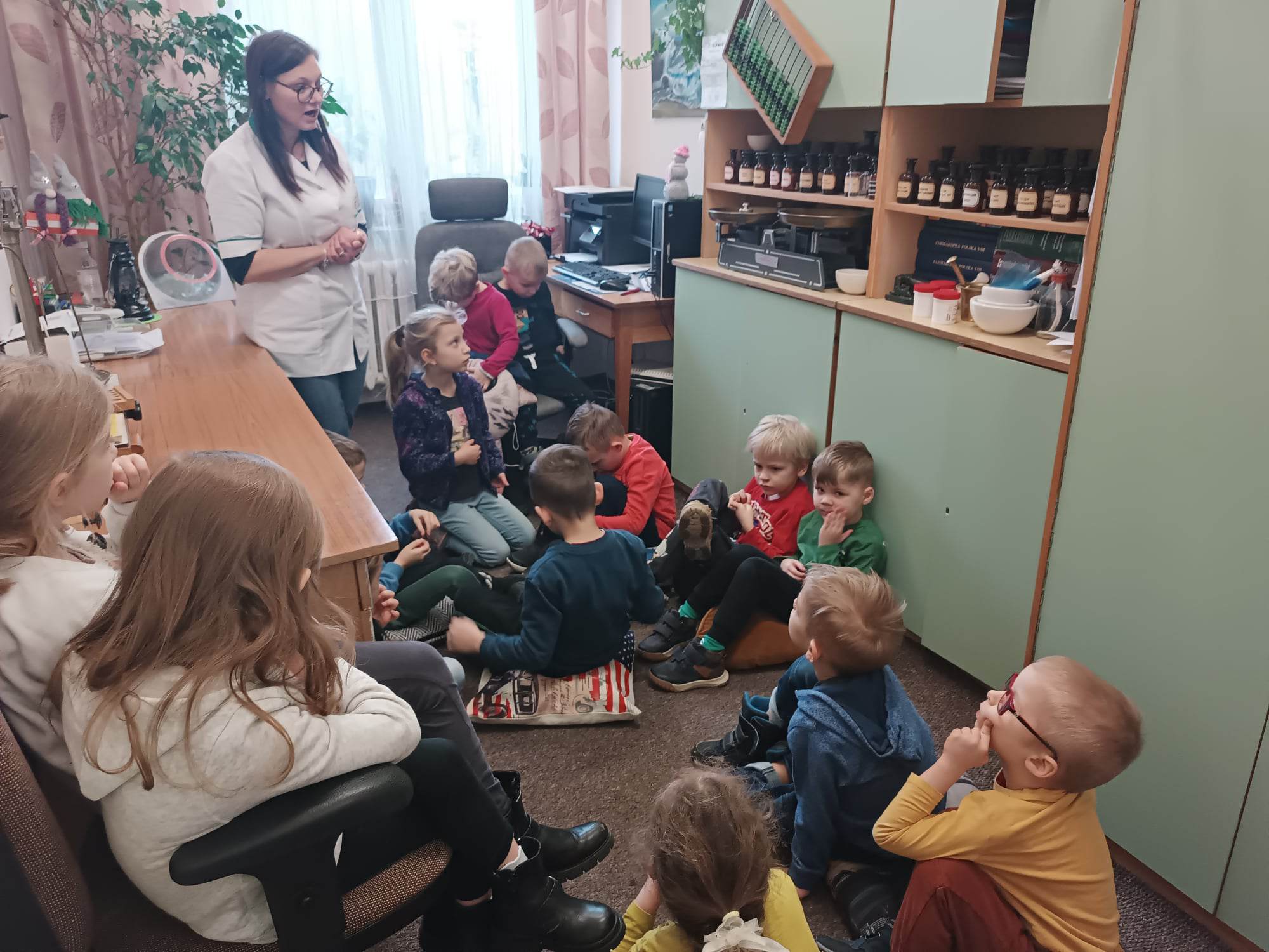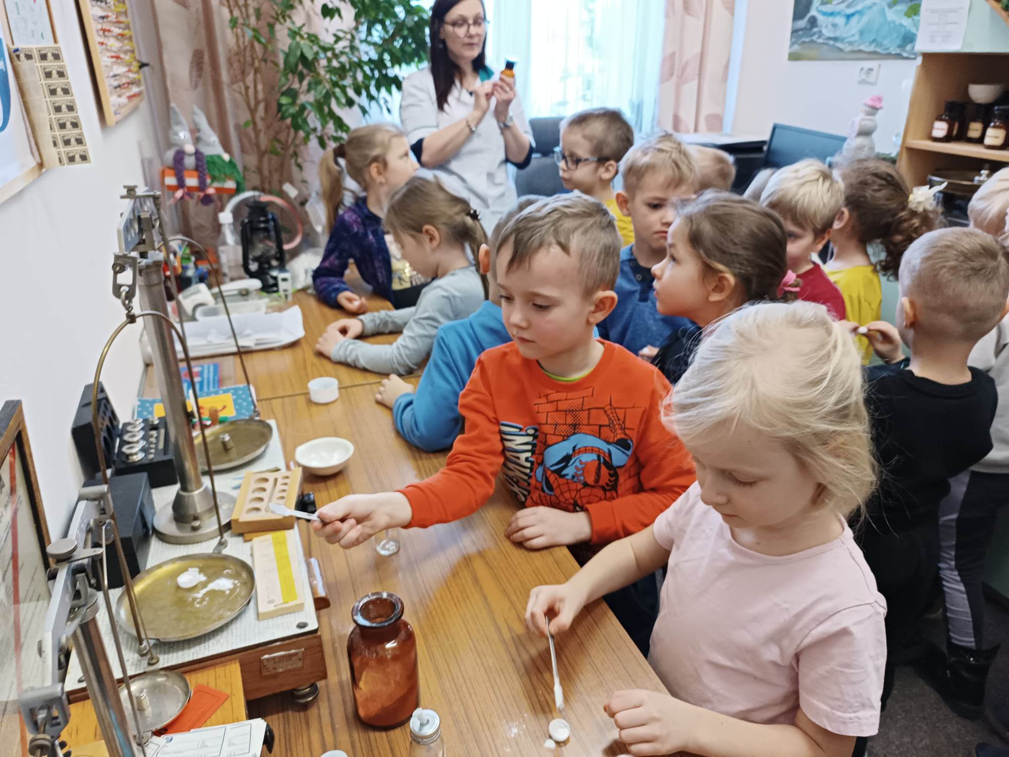 13.02.2023 r. przedszkolaki z grupy „Motylki“ uczestniczyły w wycieczce do pobliskiej apteki. Pani farmaceutka opowiedziała im o postaci Ignacego Łukasiewicza, pokazała lampę naftową i zapoznała z zasadą działania. „Motylki“ dowiedziały się też sporo o specyfice pracy aptekarzy, zarówno kiedyś, jak i teraz. Zostały też uczulone na to, że lekarstwa zażywa się tylko w przypadku choroby, i oczywiście, pod opieką rodziców. Dzieci z grupy „Motylki“ mogły też samodzielnie przygotować małe lampy naftowe oraz tabletki z glukozą. Dostały też „zadanie domowe“ – dowiedzieć się, jak działa glukoza. Niektórzy nawet ucierali maści. Na koniec „Motylki“ obejrzały magazyn z lekami i miejsce, gdzie przygotowuje się leki recepturowe. Z pewnością była to bardzo ciekawa wycieczka, która na długo zostanie w pamięci naszych przedszkolaków.