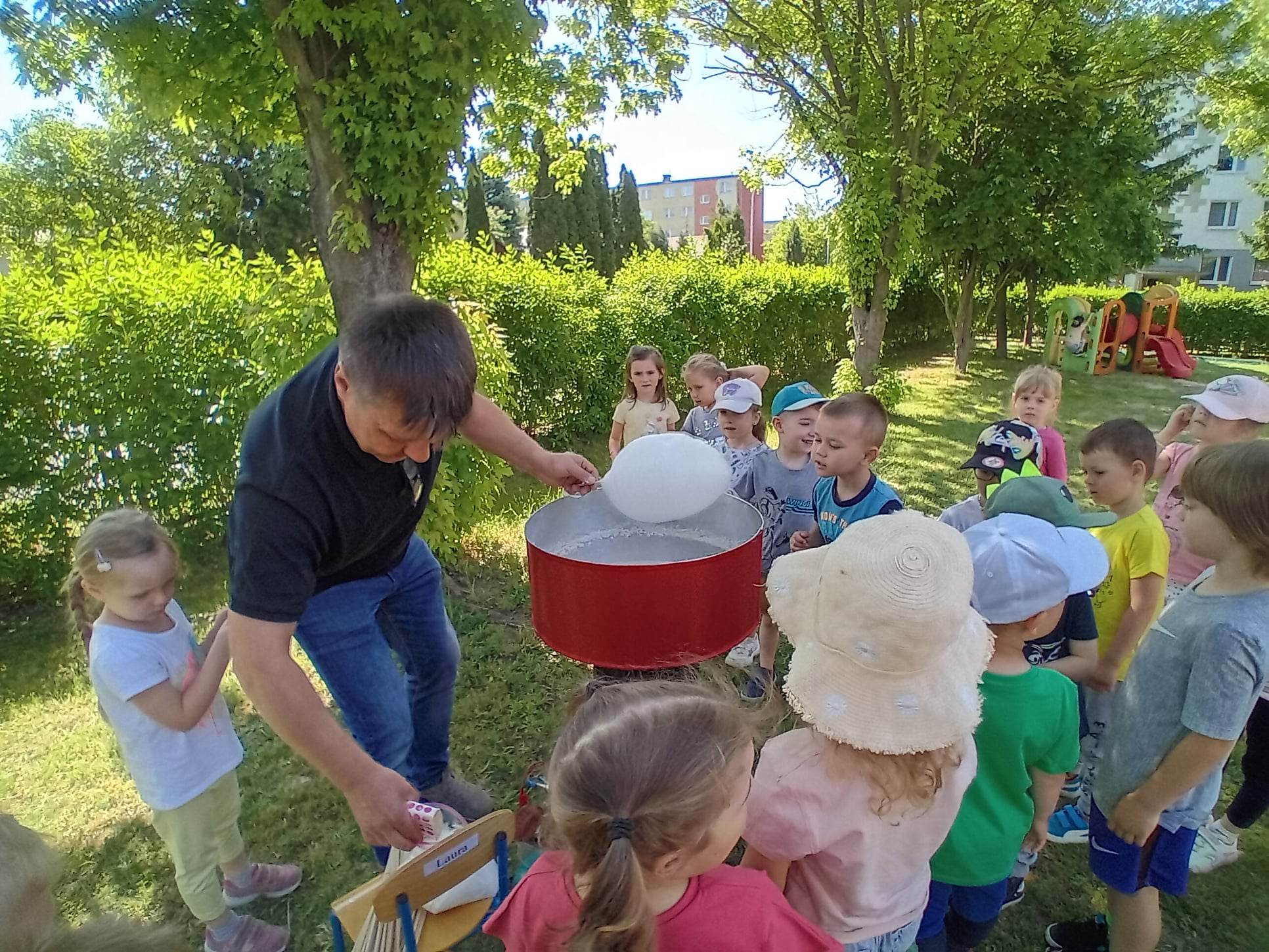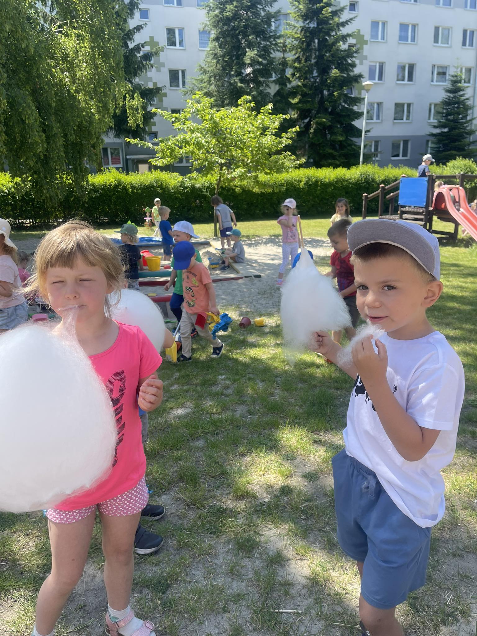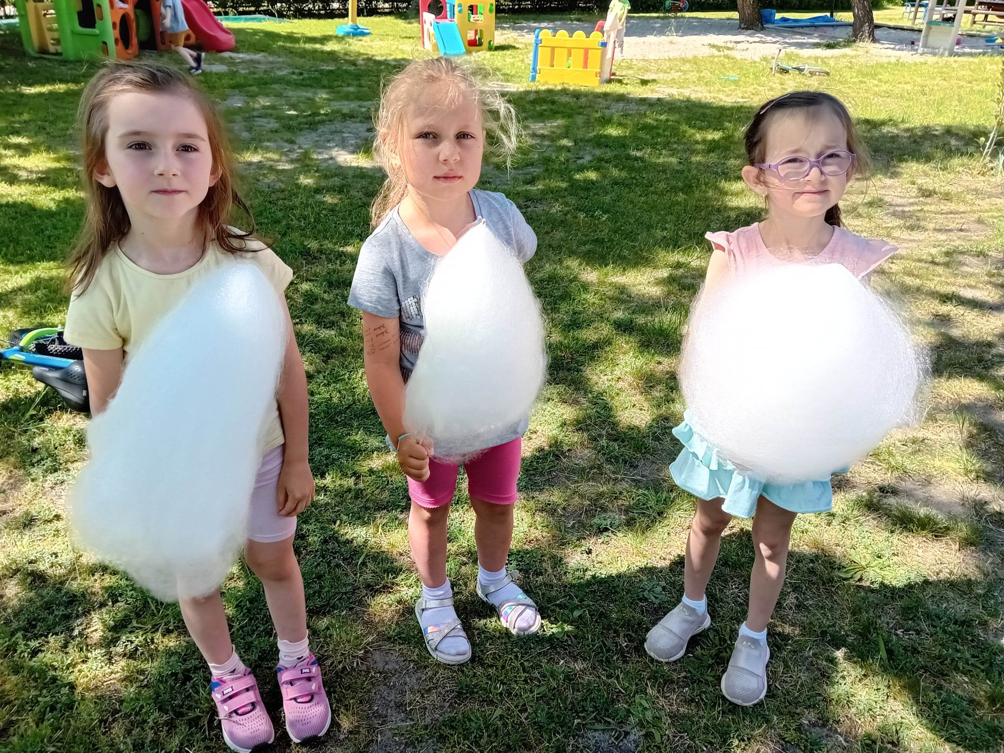 1.06.2023 r. był dla dzieci dniem pełnym wesołych zabaw. Tego dnia, oprócz udziału w zajęciach Lego, czekało na nich wiele niespodzianek. Wszystkie grupy brały udział w radosnych zabawach w ogrodzie przedszkolnym, były tańce, malowanie buziek, zabawy ruchowe, kolorowe balony. Tata Hani z grupy „Misie“ przygotował dla wszystkich przepyszną watę cukrową, za co Mu serdecznie dziękujemy! To z pewnością był dla wszystkich bardzo udany dzień.