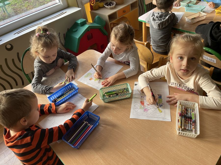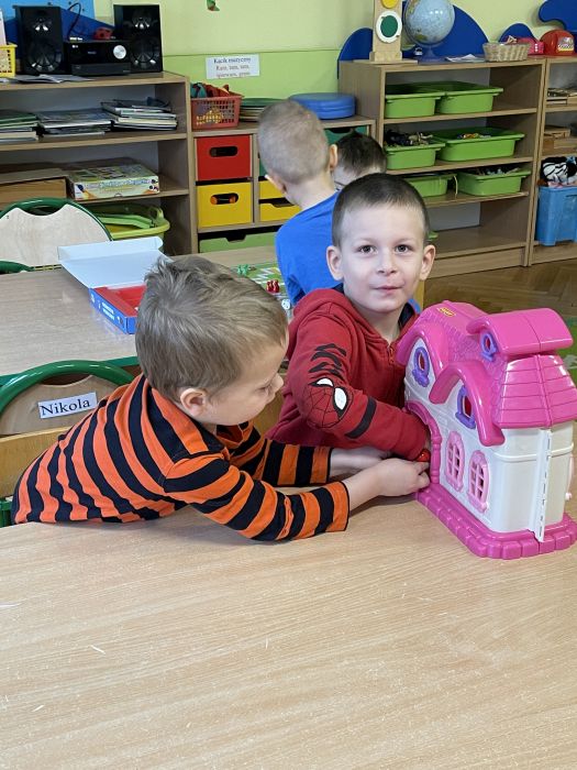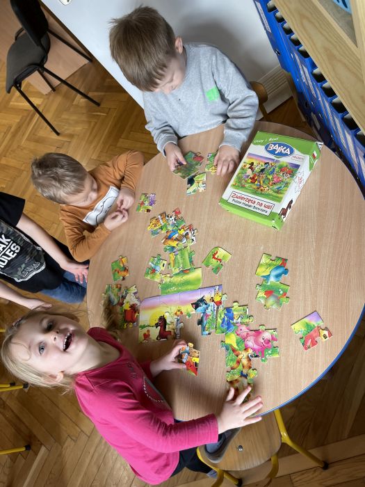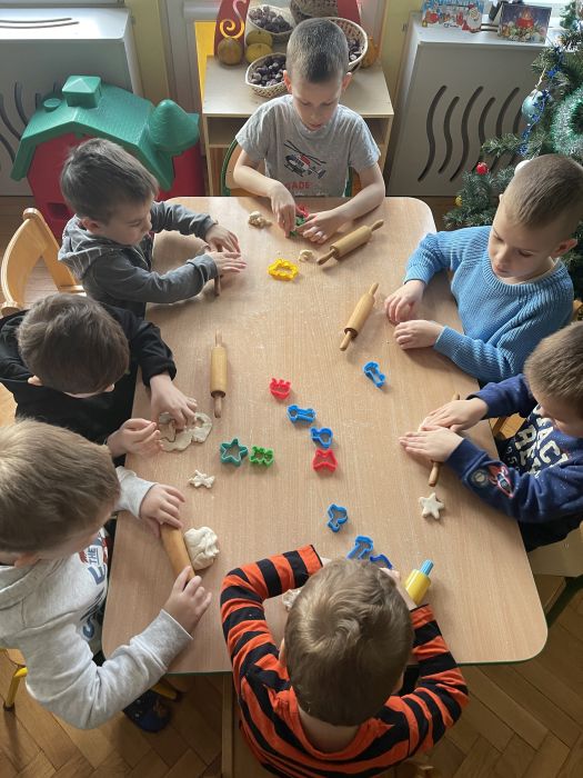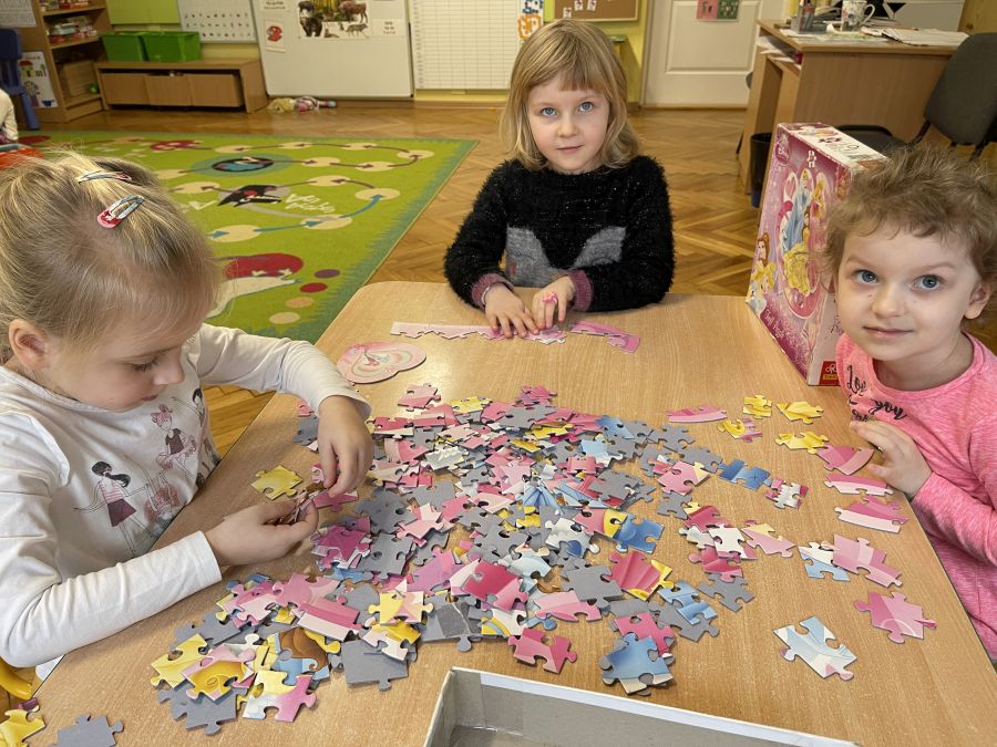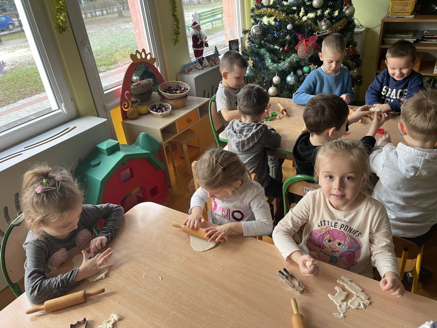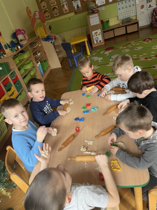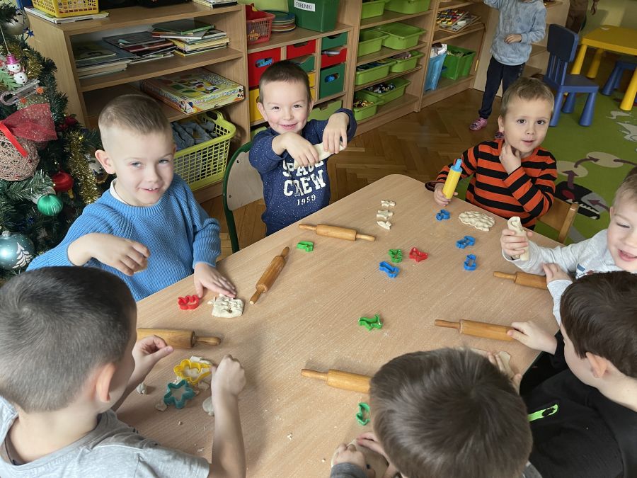 Dzieci z grupy Biedronki bardzo aktywnie spędzają początek roku w przedszkolu. Ćwiczą sprawność swoich rąk wyrabiając masę solną i wycinając z niej różne kształty. Bawią się na sali integrując się i rozwijając umiejętności społeczne. Rozwijają pamięć, orientację w przestrzeni i logiczne myślenie poprzez grę w gry planszowe, układanie puzzli i klocków.