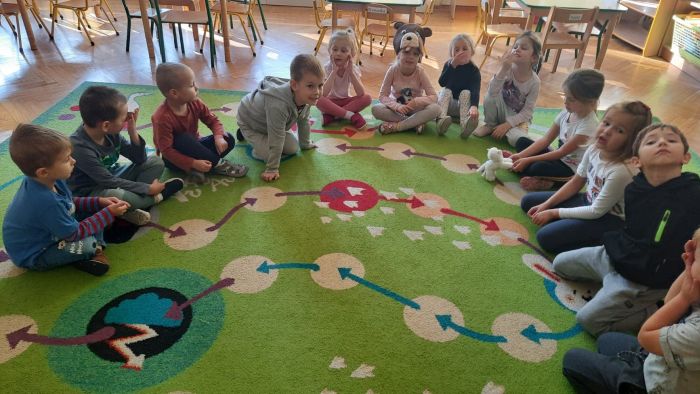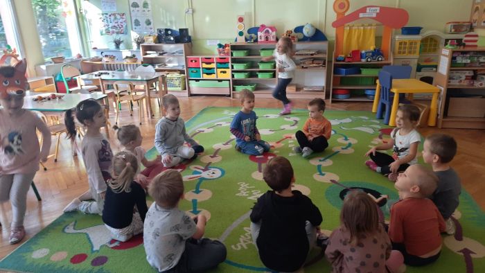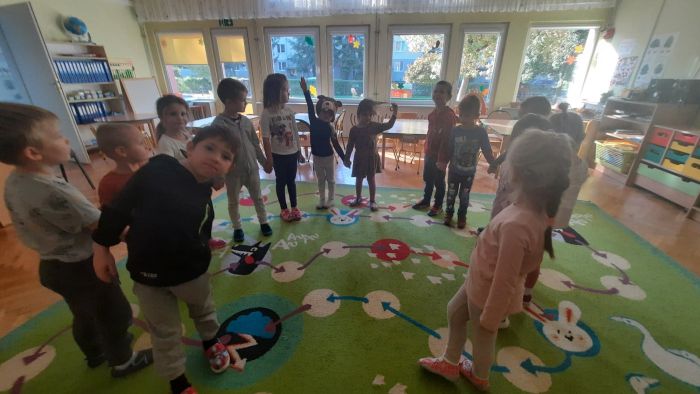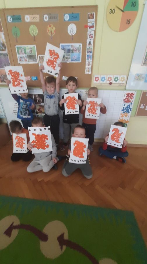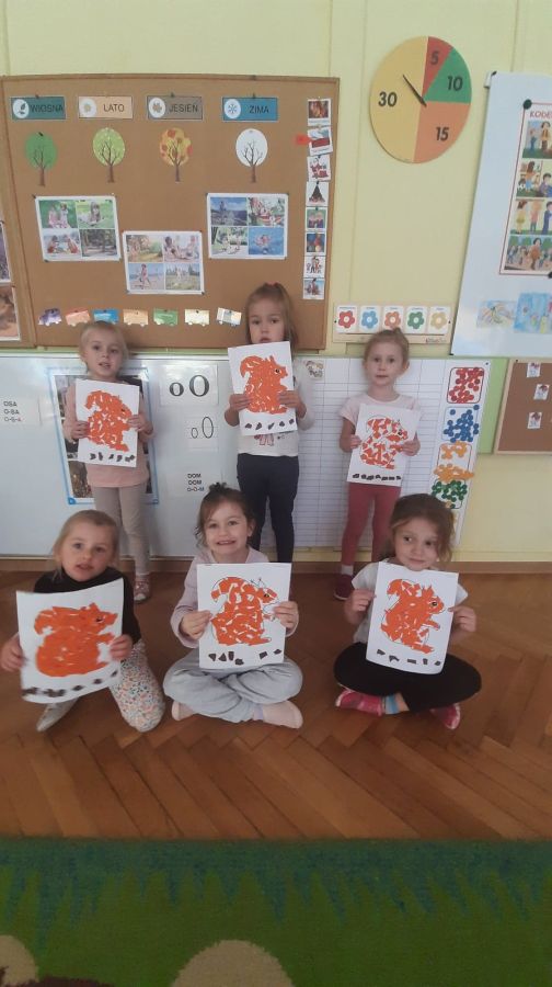 Dzieci z grupy ,,Biedronki‘’ w październiku uczestniczyły w zajęciach na temat zwierząt leśnych. Zajęcia rozpoczęły się od rozwiązywania zagadek słownych. Następnie dzieci wysłuchały opowiadania M.Strękowskiej-Zaremby pt.: ,,Beztroska Wiewióreczka’’, rozmawiały na temat treści utworu oraz zostało im wyjaśnione: co to znaczy być beztroskim. Następnie utrwalone zostały nazwy zwierząt leśnych: wiewiórka, lis, niedźwiedź, jeż, sowa oraz poznały ich wygląd. Dzieci wspólnie zastanawiały się jak zwierzęta leśne odżywiają się i poruszają. Sala przedszkolna zamieniła się w ekscytujące leśne miejsca, w których dzieci rozpoznawały poszczególne nazwy zwierząt słuchając nagrań i wydawanych dźwięków. Uczestniczyły również w zabawach ze śpiewem tj.: ,,Stary Niedźwiedź’’, ,,Skacze jak wiewiórka’’, ,,Chodzi lisek’’, rozwijając umiejętności zgodnej współpracy w grupie. Miały okazję zamienić się w zwierzątka podczas zabaw, co sprawiło im wiele radości. Przedszkolaki rozwijały również umiejętności matematyczne podczas zajęć przy stolikach przeliczając dary jesieni. Dzieci starannie wykonały pracę plastyczną ,,Wiewiórka’’, wykazując się dużą pomysłowością, rozwijały umiejętności plastyczne. Na koniec przypomniały sobie zasady odpowiedniego zachowania w lesie z myślą o leśnych zwierzętach. Dzieci z dużym zainteresowaniem i zaangażowaniem uczestniczyły w tych zajęciach.