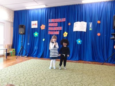 1. Zorganizowanie w przedszkolu konkursu recytatorskiego lub konkursu piosenki prezentującego wiersze lub utwory w języku polskim lub obcym – kształtowanie kompetencji porozumiewania się w języku ojczystym lub w językach obcych.