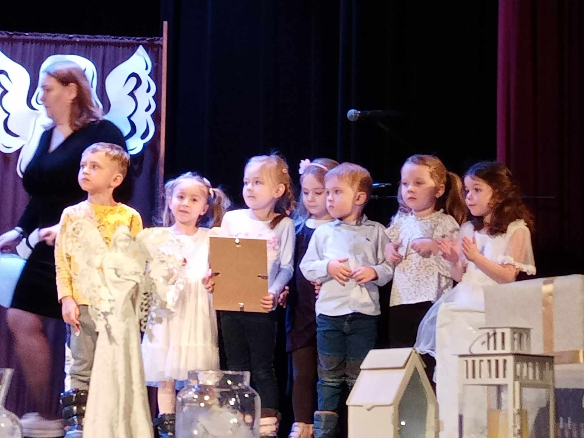 W piątek 12.01.2024r. w Spółdzielczym Domu Kultury odbył się finał akcji charytatywnej „Aniołkowe granie“. Z tej okazji odbył się koncert podczas którego zebrane dary zostały przekazane do placówki opiekuńczo-wychowawczej „Podleśna Przystań“. Podczas koncertu dzieci z grupy Misie zaprezentowały piosenkę „Świąteczne pierniczki“. Za udział w tej pięknej akcji dzieciom i Państwu serdecznie dziękujemy!