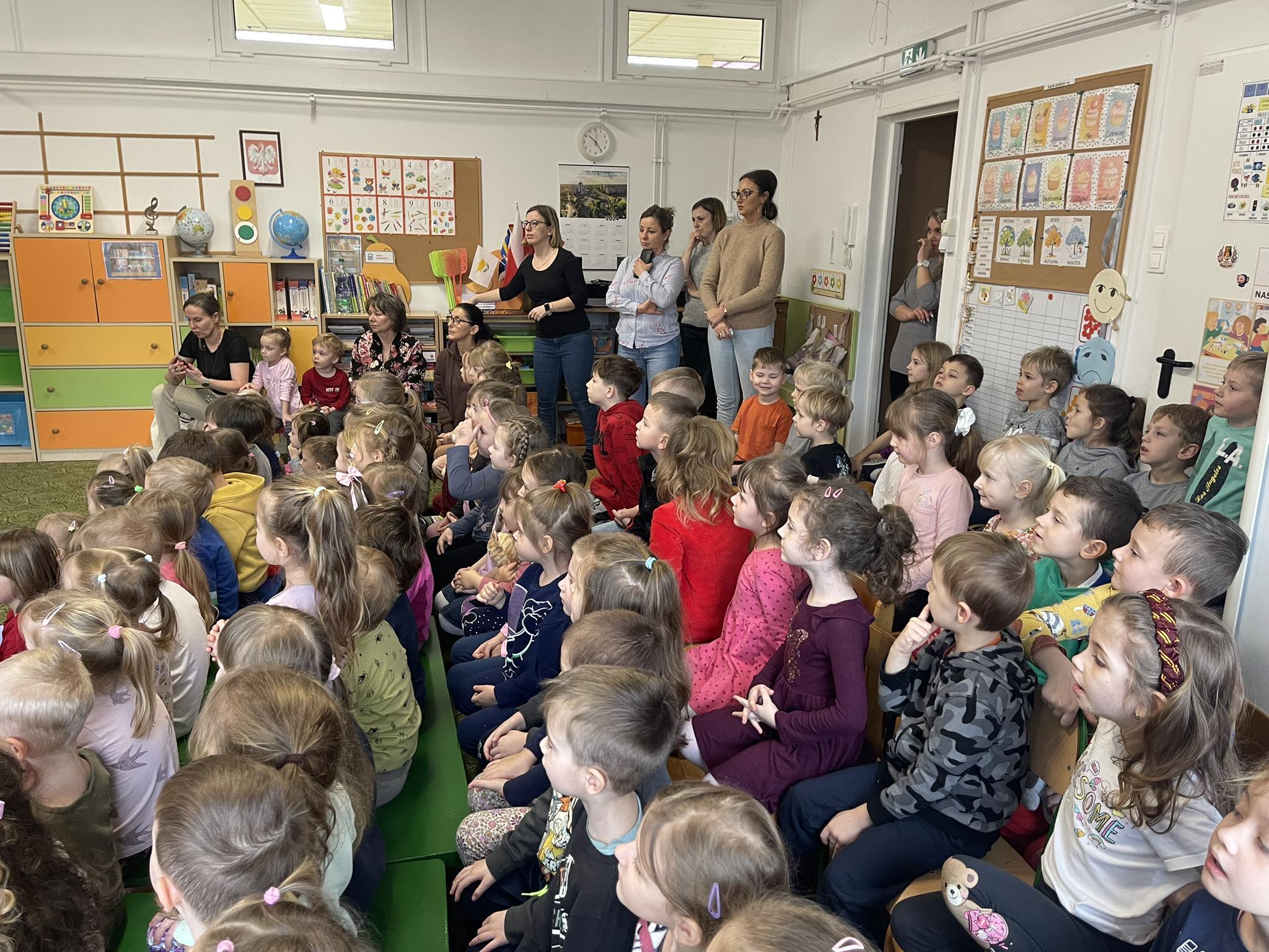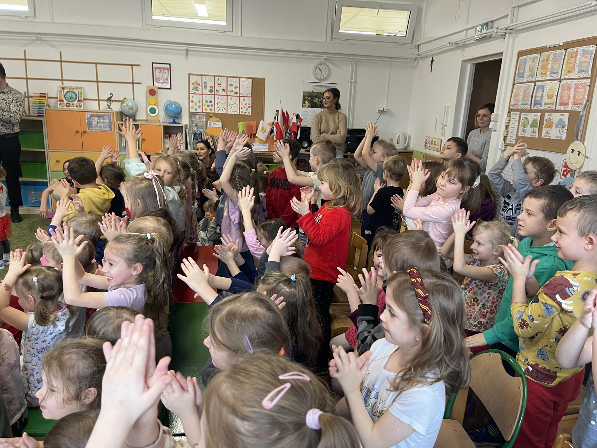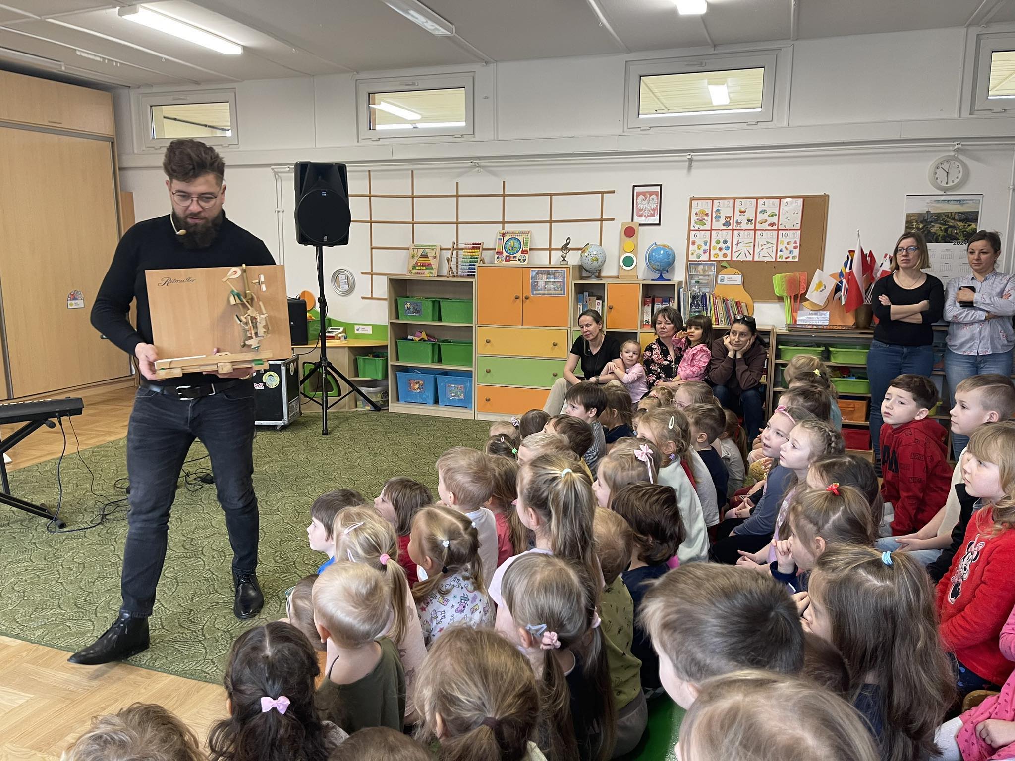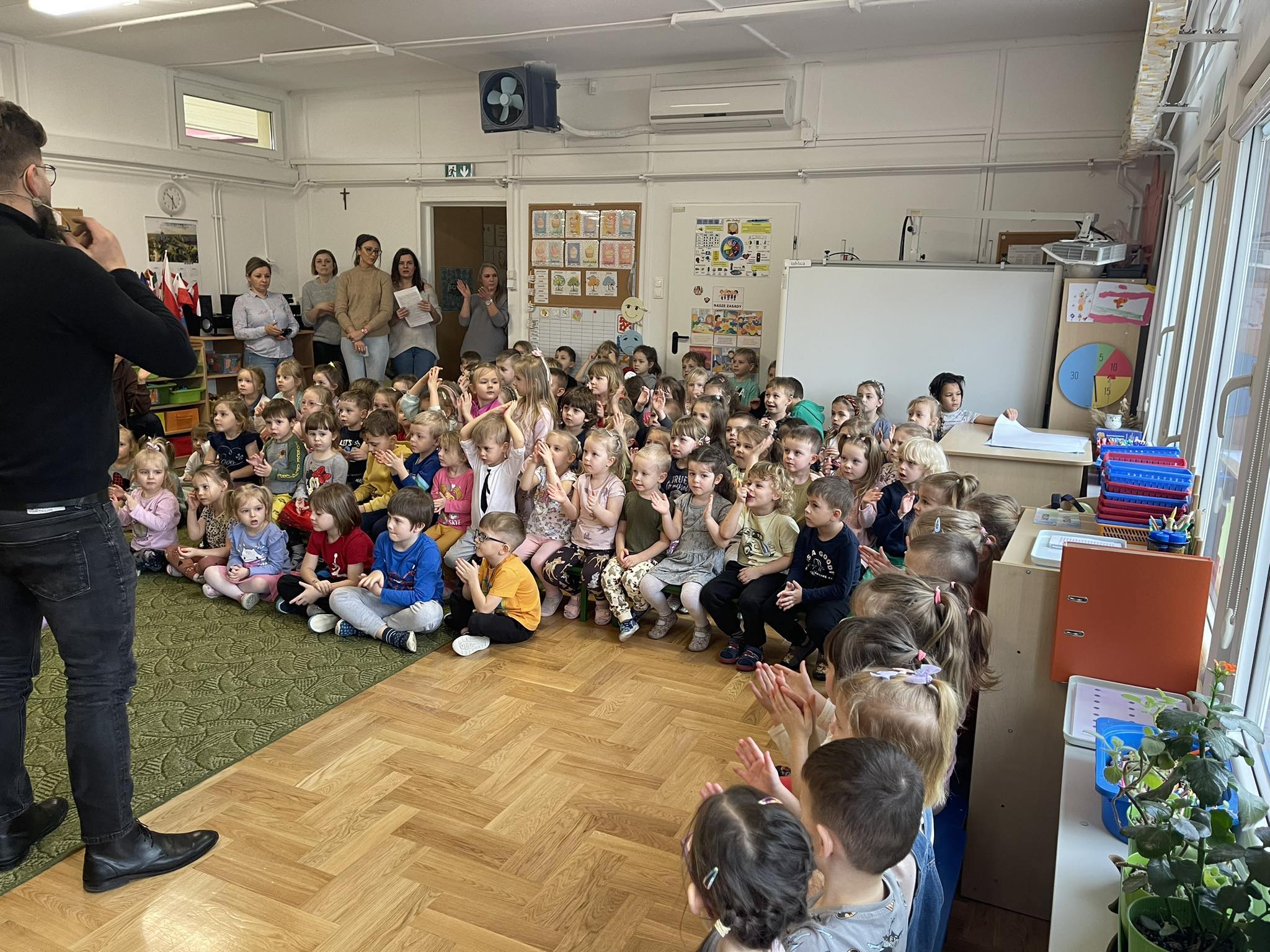 W naszym przedszkolu po raz kolejny gościliśmy muzyków z audycji muzycznej „Jaszczur i Przyjaciele“. Podczas występu dzieci zapoznały się z instrumentami takimi jak syntezator, melodyka, fortepian i pianino. Muzycy podczas występu opowiadali również ciekawostki i zagadki muzyczne, które dzieciom bardzo się podobały.
