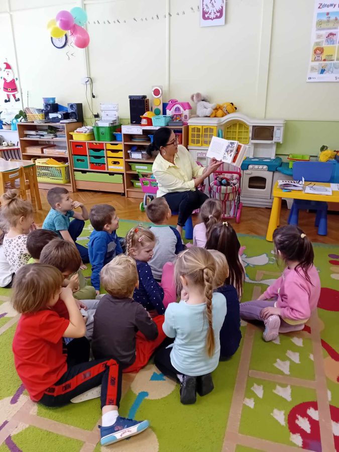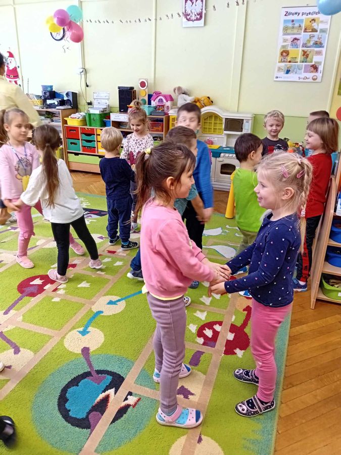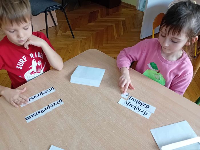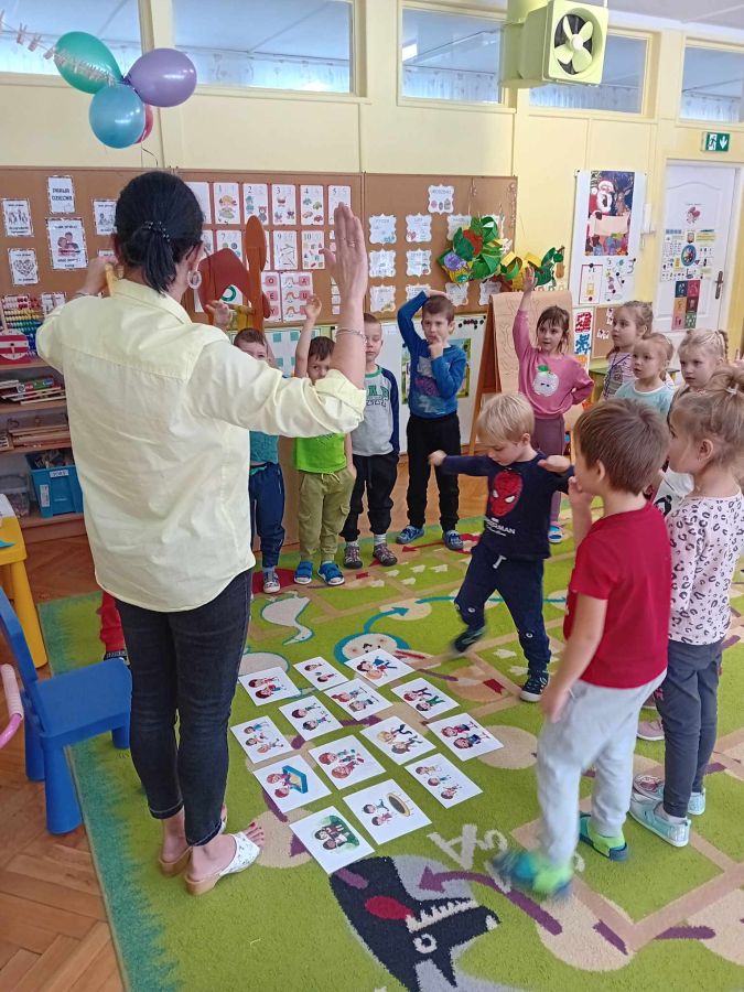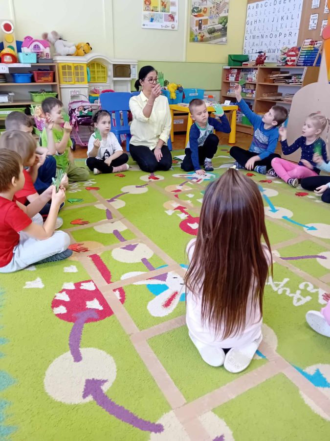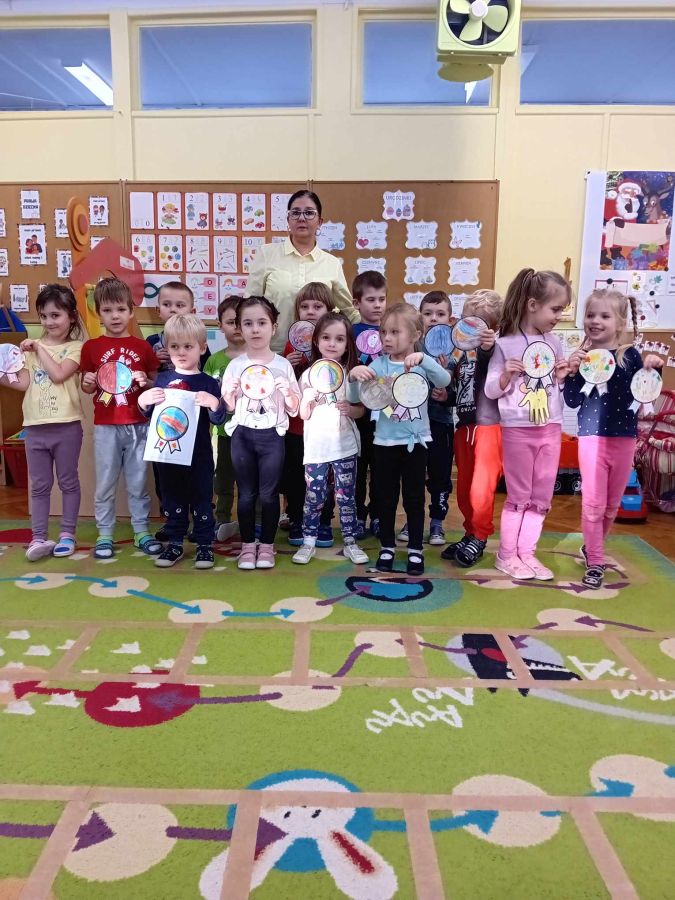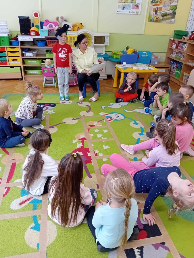 ,,Jak być prawdziwym przyjacielem” na podstawie opowiadania Danuty Wawiłow ,,Chcę mieć przyjaciela”. Dzieci z grupy ,,Biedronki” poznały znaczenia słowa prawdziwy przyjaciel. Dowiedziały się jakie cechy powinien posiadać przyjaciel, jak dbać o przyjaciela i o przyjaźń. Wspólnie stworzyły Dekalog Przyjaźni. Wykonały medal dla przyjaciela oraz Drzewko Przyjaźni ozdobione serduszkami z imionami dzieci. Wzięły udział w zabawie Prawda czy Fałsz wykorzystując zieloną lub czerwoną łapkę. Dzieci rozróżniały zachowania pozytywne i negatywne.