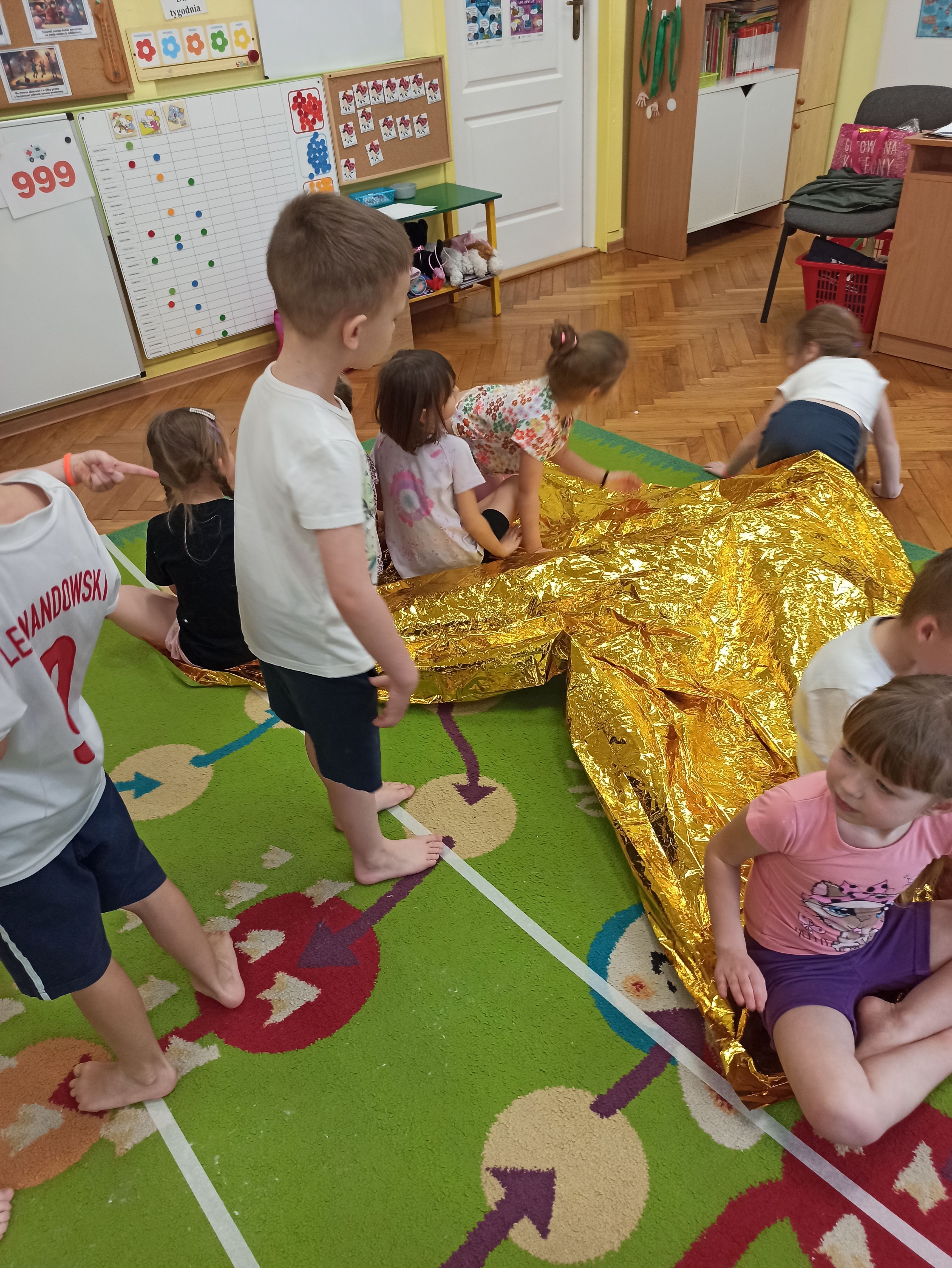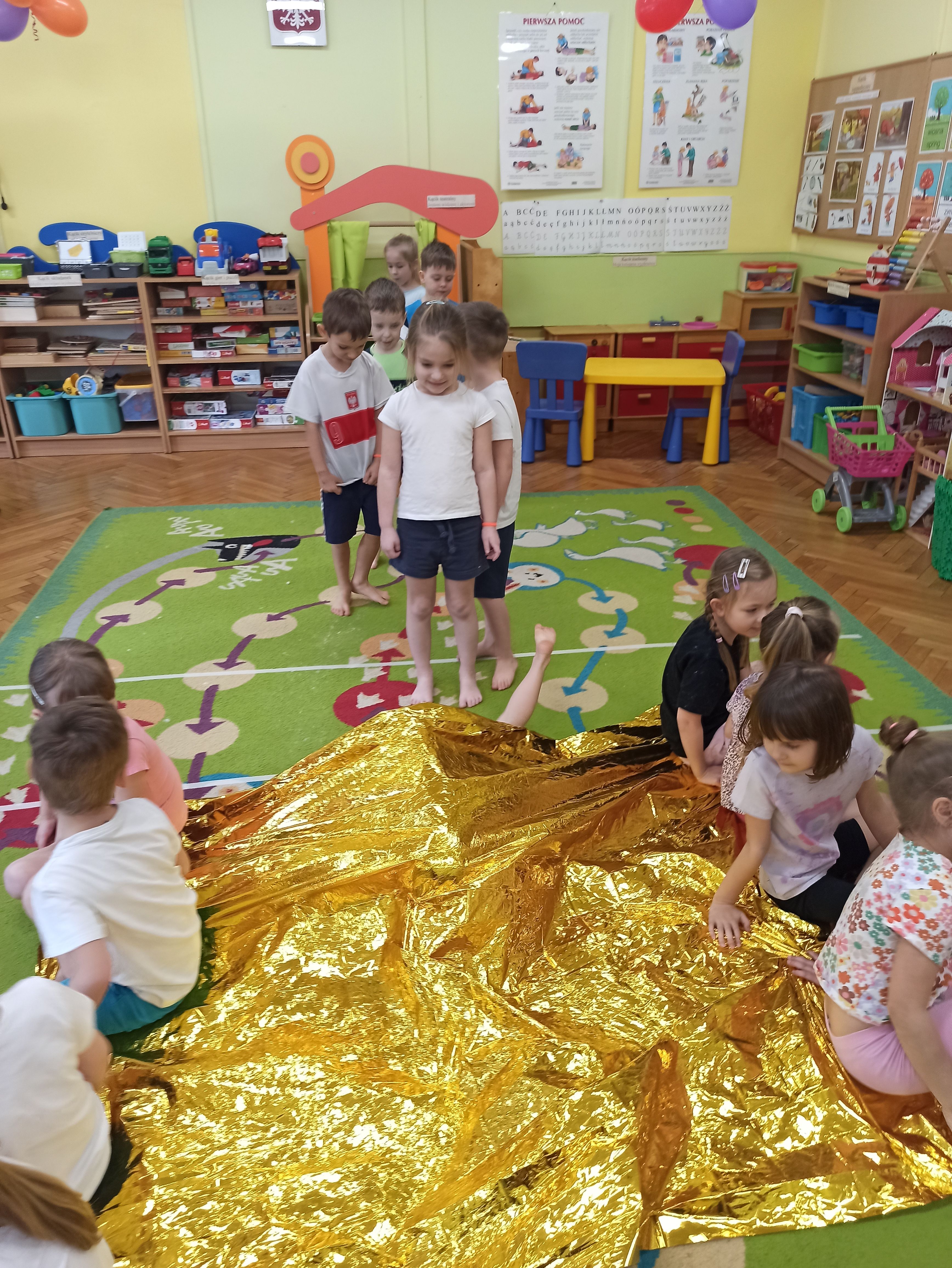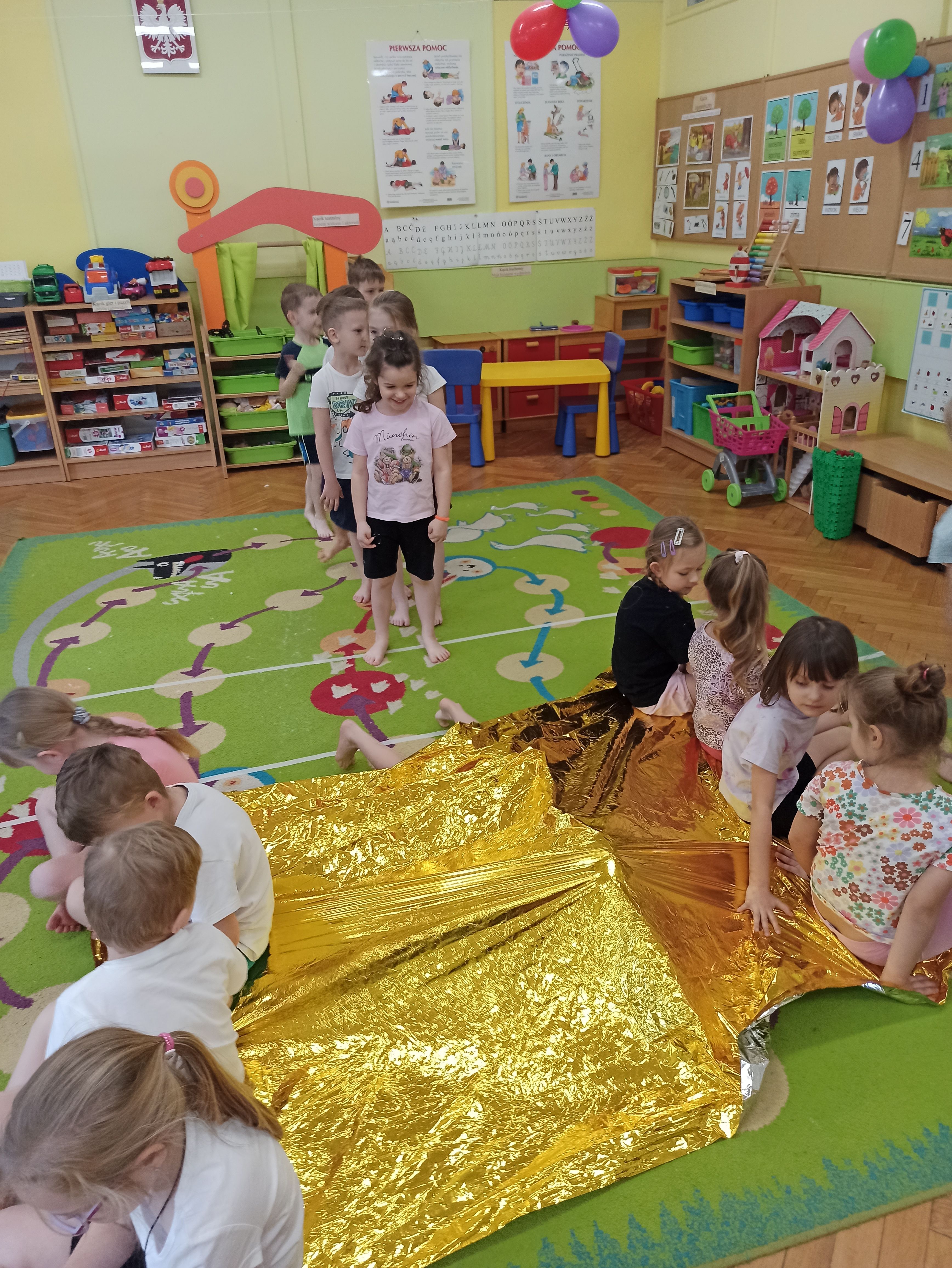 W Przedszkolu nr.15 bardzo dbamy o bezpieczeństwo naszych przedszkolaków, a także uczymy ich zasad bezpieczeństwa i sposobów udzielania pierwszej pomocy. Tym razem dzieci z grupy „Biedronki“ mogły poczuć jak to jest być Ratownikiem Medycznym. Dzieci oprócz przypomnienia sobie numerów alarmowych, poznały także kolejne bardzo ważne narzędzie, którego już one mogą użyć przy udzielaniu pomocy, a mowa tutaj o kocu ratunkowym ( folia życia). Podczas zajęć dzieci były bardzo aktywne, zabawa z kocem ratunkowym sprawiła im wiele radości. Teraz dzieci z grupy Biedronki wiedzą, że nie tylko mogą zadzwonić pod nr. alarmowy, ale także w razie konieczności mogą pomóc używając koca ratunkowego lub innych dostępnych materiałów.