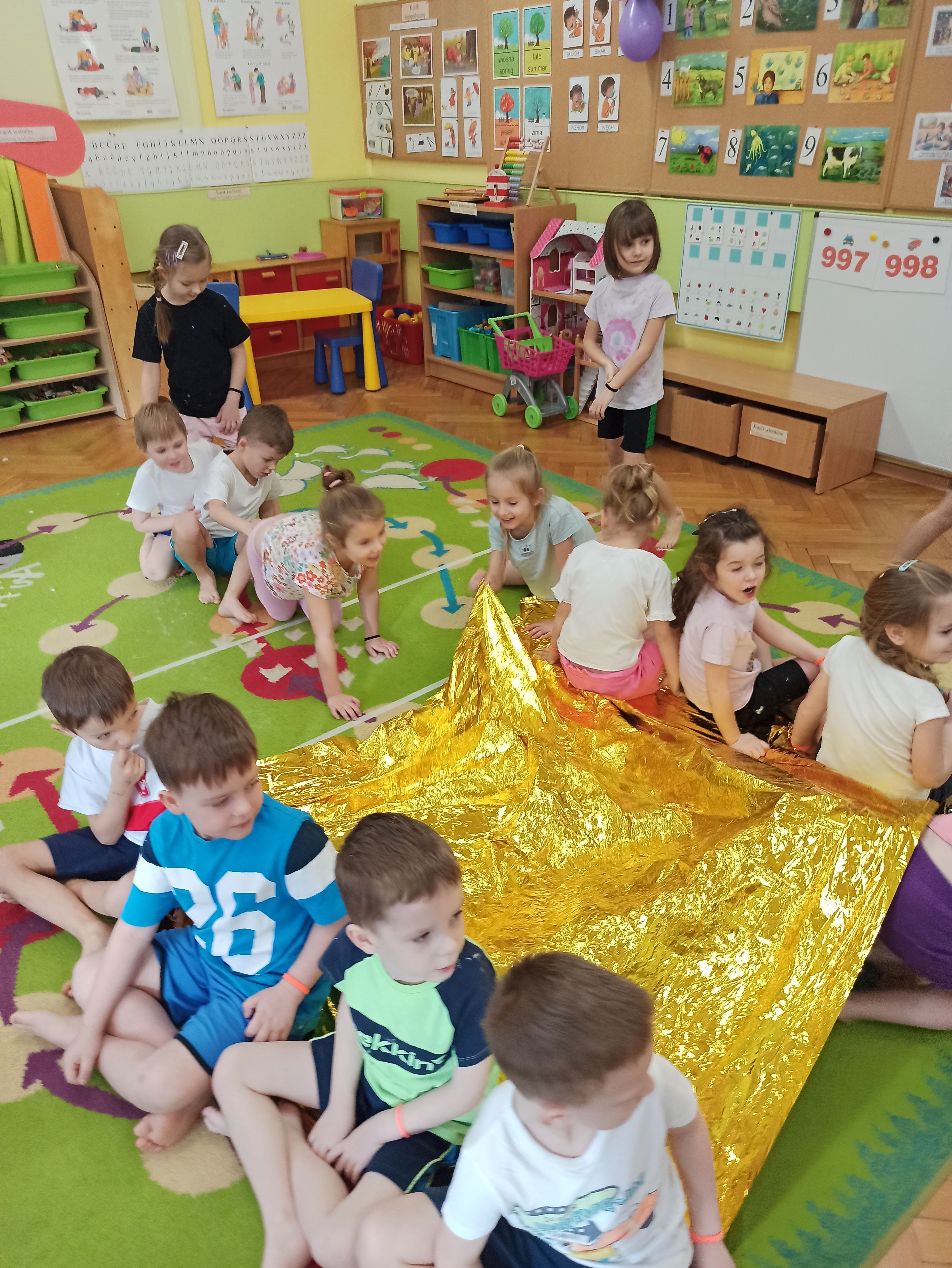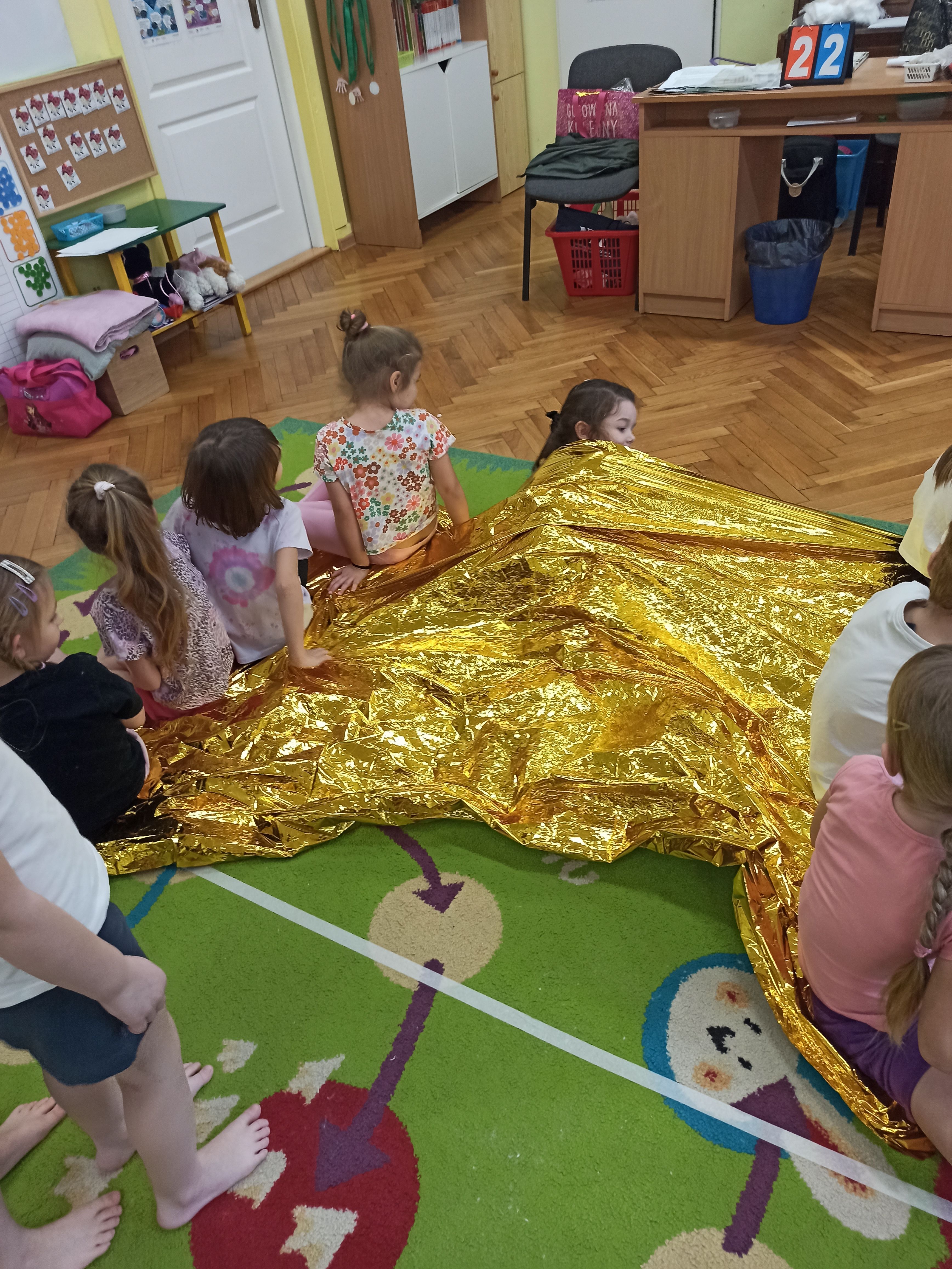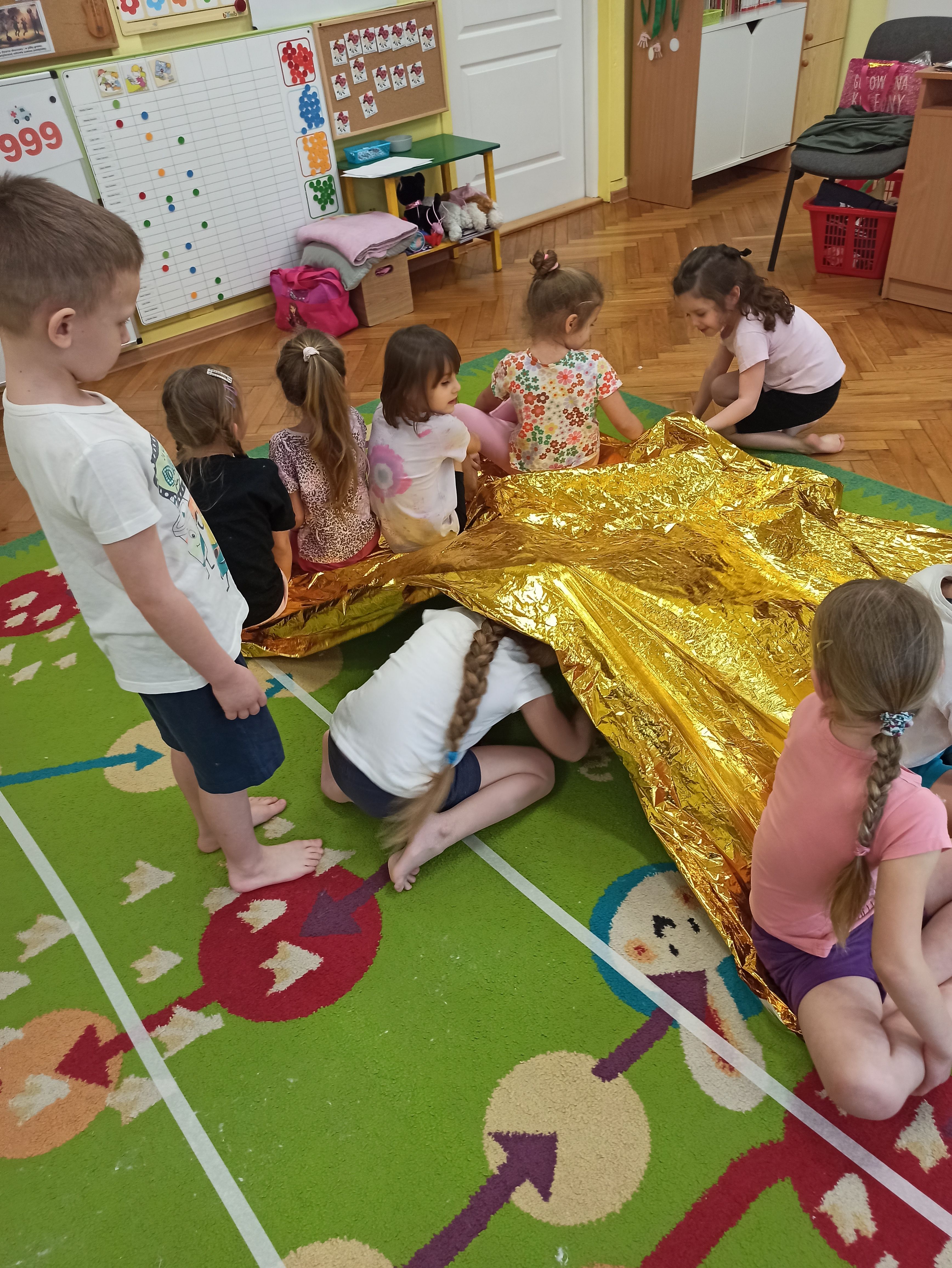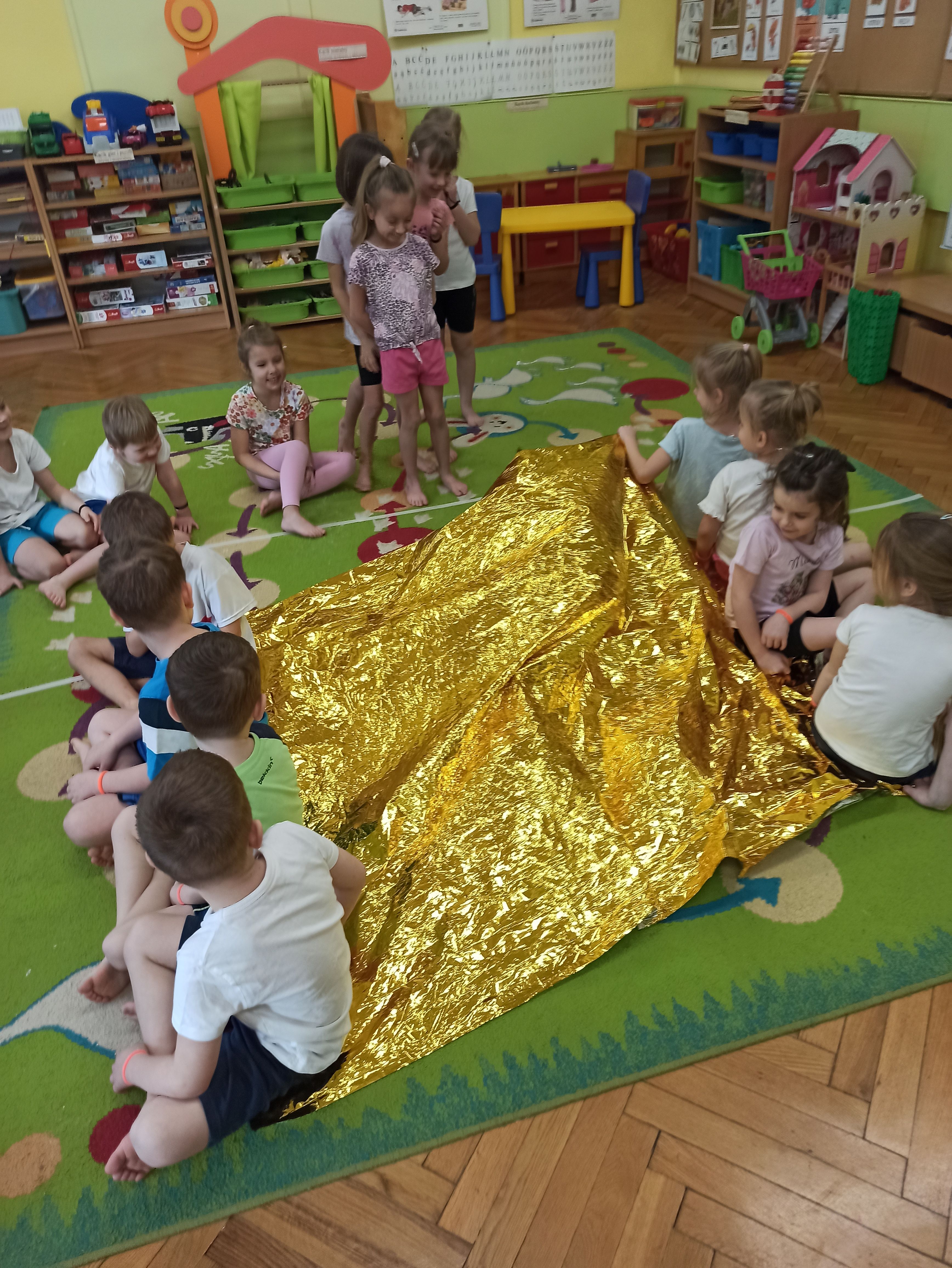 W Przedszkolu nr.15 bardzo dbamy o bezpieczeństwo naszych przedszkolaków, a także uczymy ich zasad bezpieczeństwa i sposobów udzielania pierwszej pomocy. Tym razem dzieci z grupy „Biedronki“ mogły poczuć jak to jest być Ratownikiem Medycznym. Dzieci oprócz przypomnienia sobie numerów alarmowych, poznały także kolejne bardzo ważne narzędzie, którego już one mogą użyć przy udzielaniu pomocy, a mowa tutaj o kocu ratunkowym ( folia życia). Podczas zajęć dzieci były bardzo aktywne, zabawa z kocem ratunkowym sprawiła im wiele radości. Teraz dzieci z grupy Biedronki wiedzą, że nie tylko mogą zadzwonić pod nr. alarmowy, ale także w razie konieczności mogą pomóc używając koca ratunkowego lub innych dostępnych materiałów.