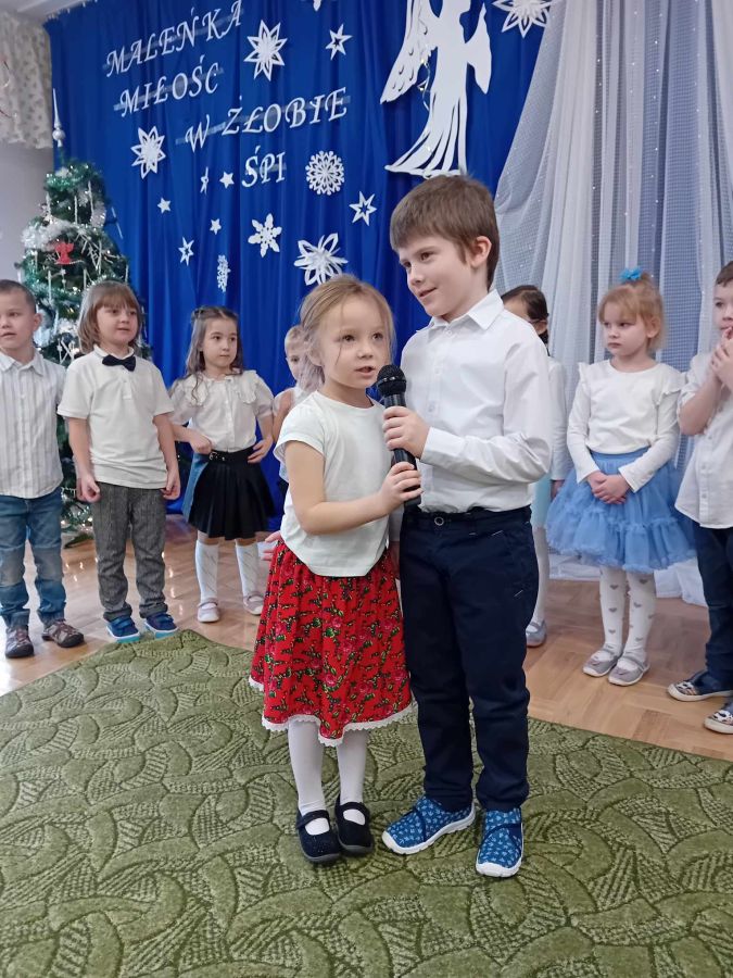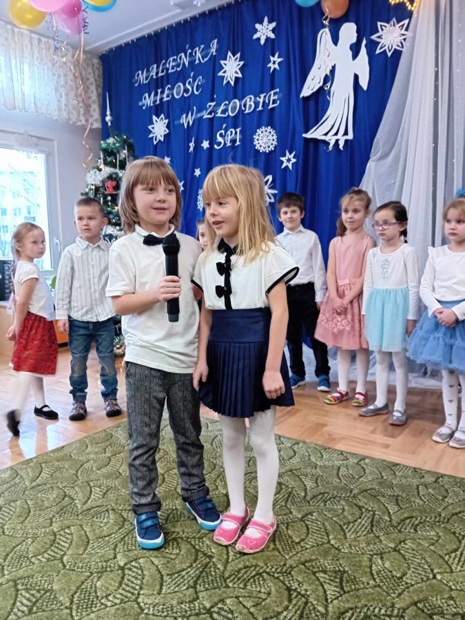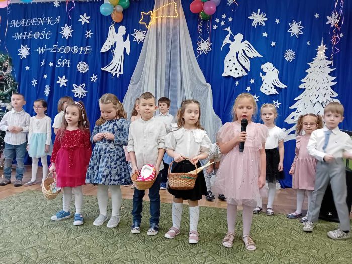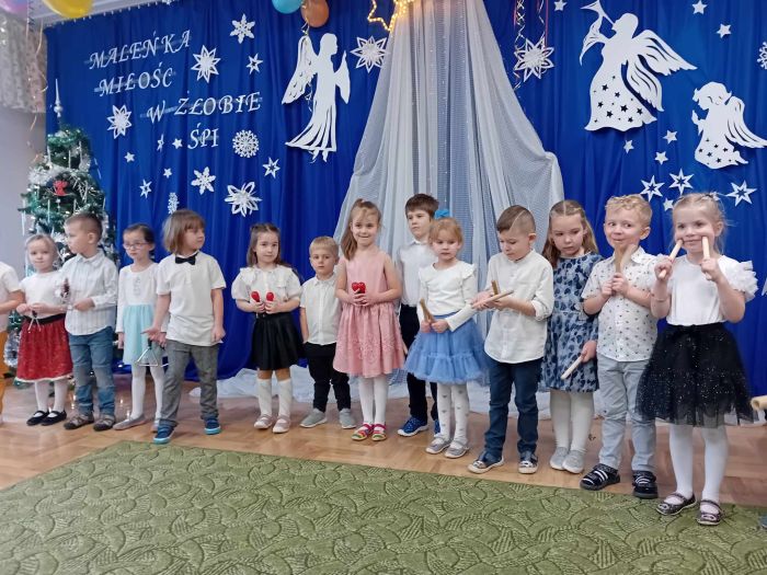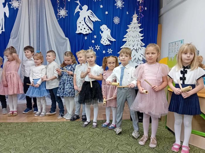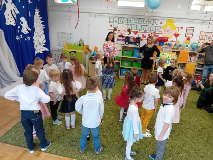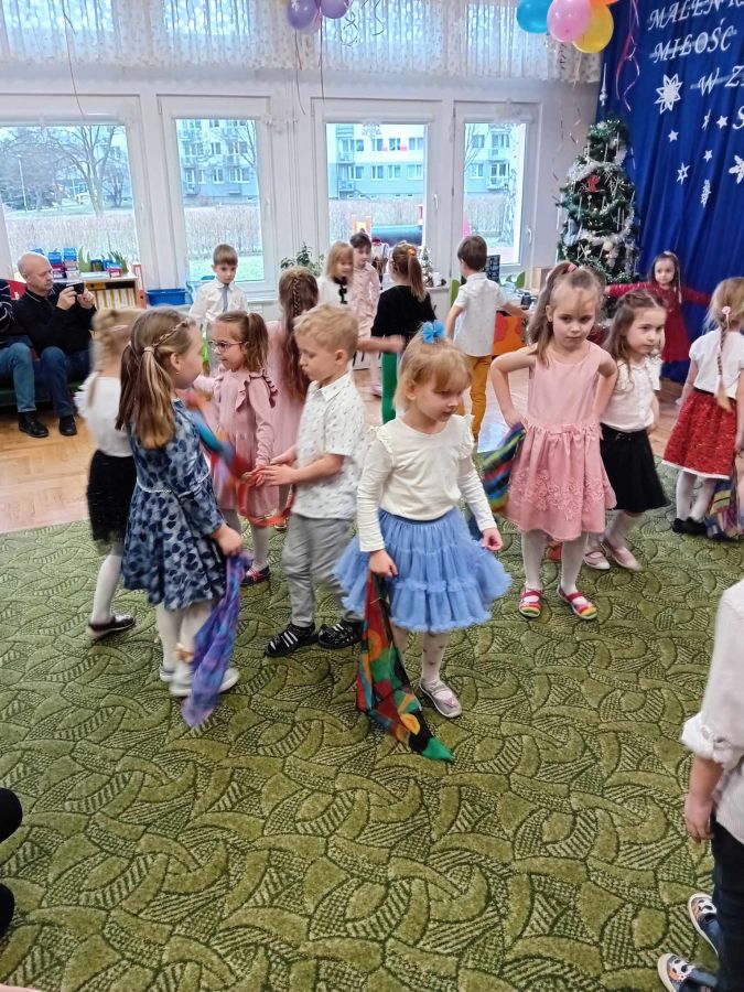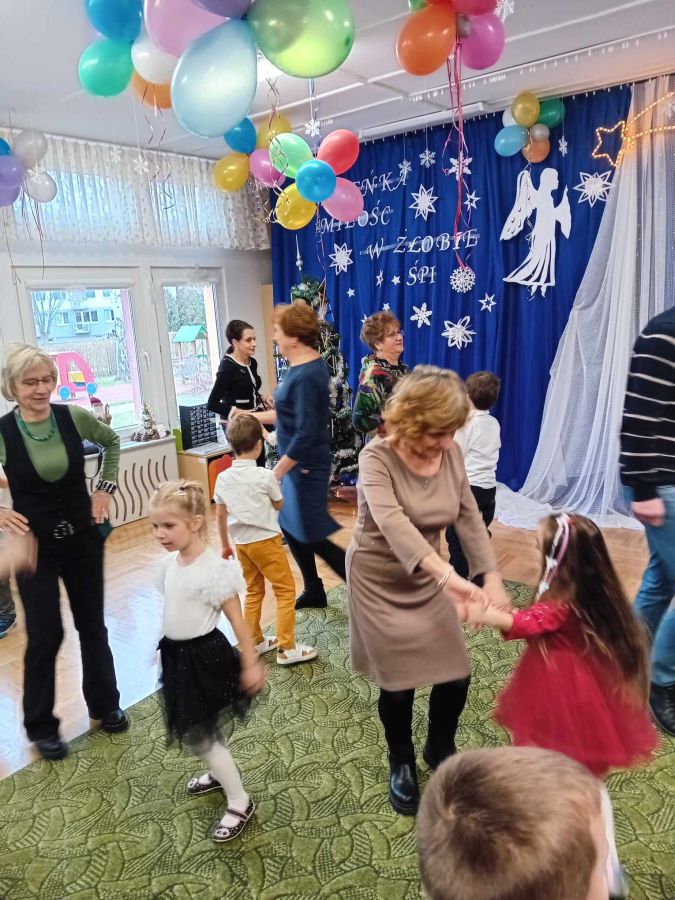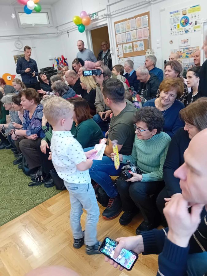 26.01.2024 r. dzieci z grupy ,,Biedronki” zaprosiły do przedszkola swoje babcie i dziadziów dla których przygotowały program artystyczny. Były to wzruszające wiersze i piosenki okolicznościowe, związane ze Świętem Babci i Dziadzia. Oprócz montażu słowno – muzycznego, goście obejrzeli także grę na instrumentach muzycznych i pokazy taneczne w wykonaniu ,,Biedronek”. Mali artyści z przejęciem odtwarzali swoje role, aby okazać swoim bliskim szacunek, pamięć i podziękować za miłość. Na zakończenie uroczystości przedszkolaki zaśpiewały tradycyjne „sto lat”, wręczyły własnoręcznie wykonane upominki i zaprosiły babcie i dziadziów do wspólnej zabawy.