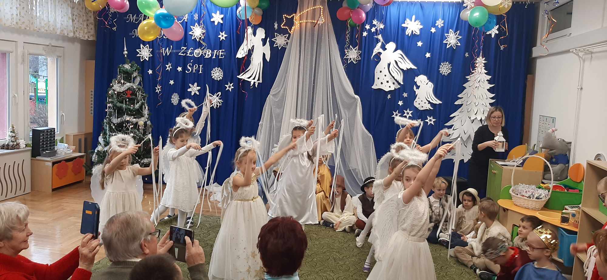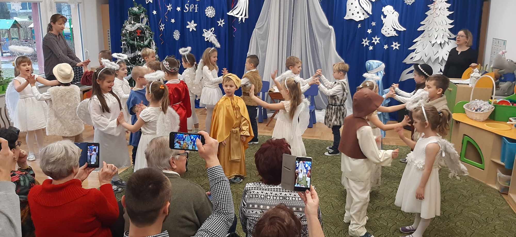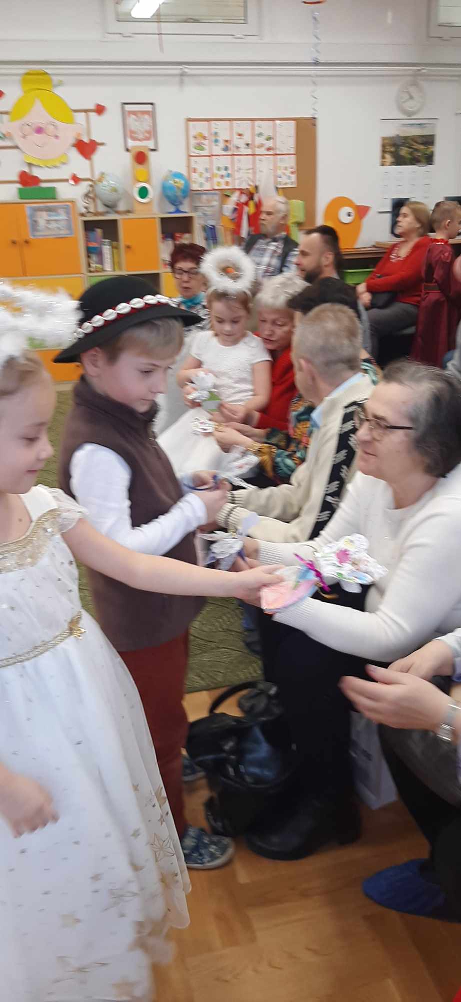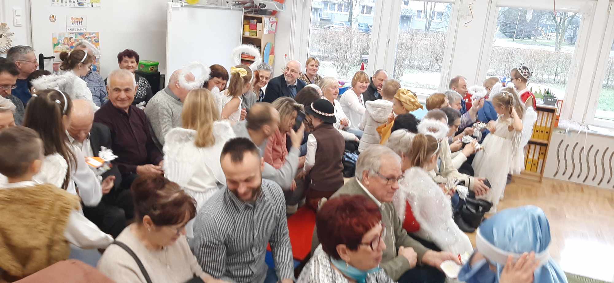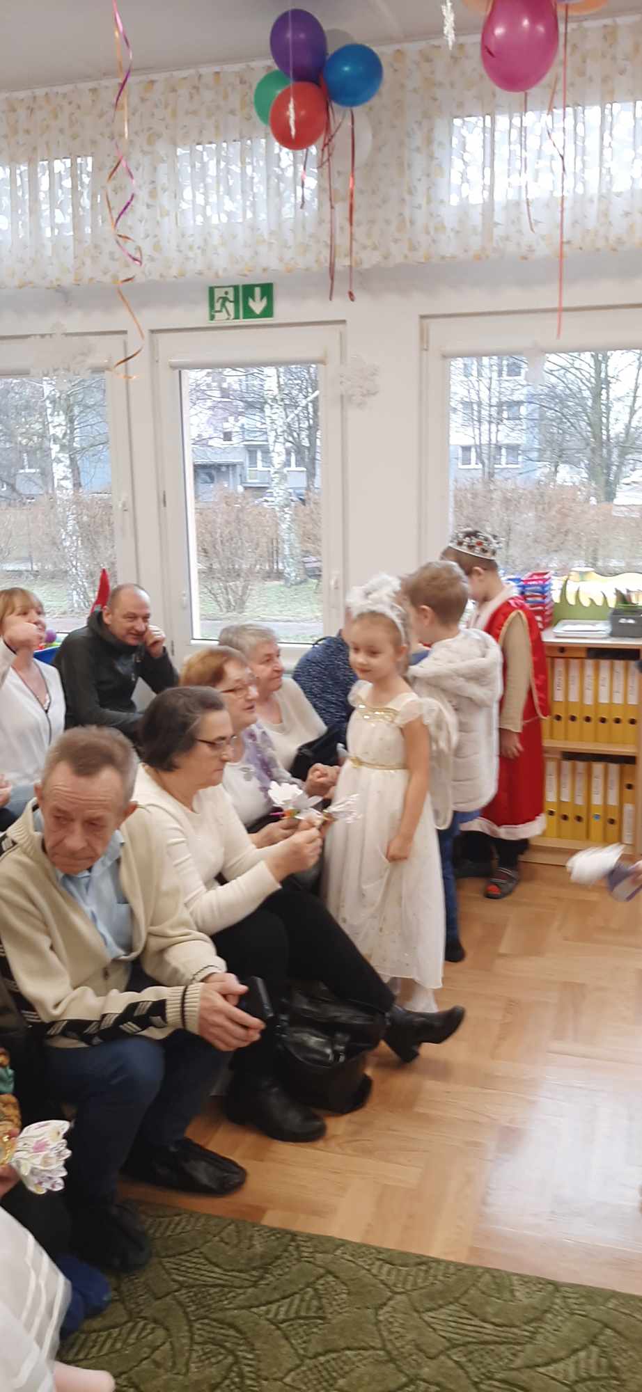 25.01.2024 r. w murach naszego przedszkola gościliśmy wspaniałych gości, Babcie i Dziadziów przedszkolaków z grupy „Zajączki“. Podekscytowane przedszkolaki już od rana wypatrywały szanownych gości. Licznie przybyli: Babcie i Dziadziowie, mieli okazję podziwiać swoje wnuczęta w specjalnie dla nich przygotowanym programie artystycznym, „Zajączki“ zaprezentowały Jasełka, a następnie wiersze i piosenki o Babci i Dziadziu. Następnie wręczyły własnoręcznie przygotowane prezenty. W ten uroczy, dziecięcy sposób chciały podziękować Babciom i Dziadziom za miłość, cierpliwość i zrozumienie. To była wyjątkowa uroczystość, pełna uśmiechu, radości i dumy. Szczęśliwe i rozpromienione twarze Babć i Dziadziów dały wyraz tego, jak ważne są takie spotkania i chwile spędzone wspólnie z wnukami. Dziękujemy wszystkim Babciom i Dziadziom za obecność, a Rodzicom „Zajączków“ za pomoc w przygotowaniu strojów jasełkowych.