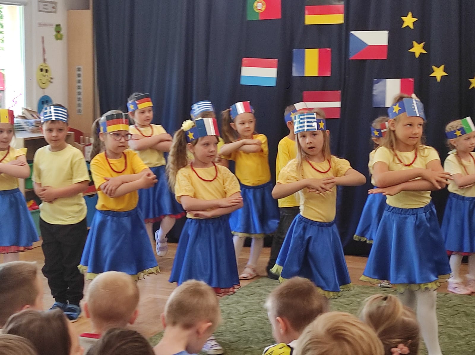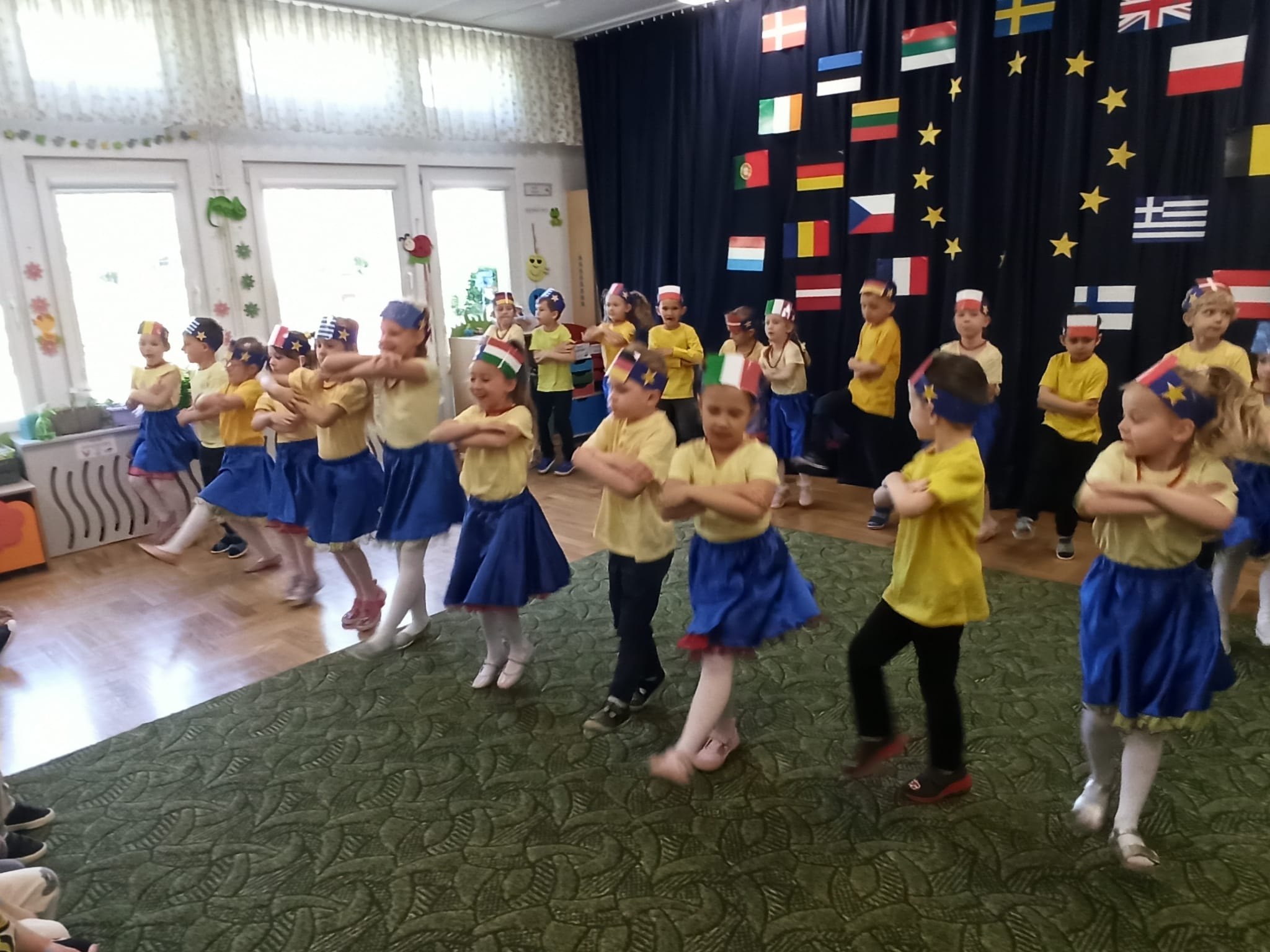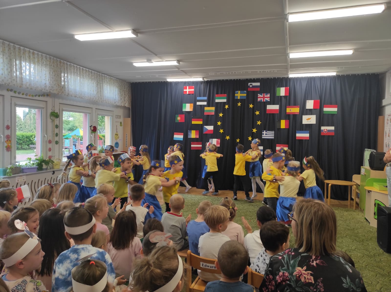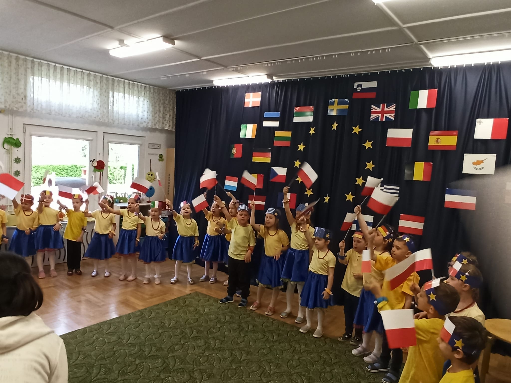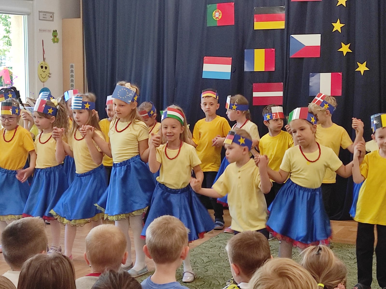 Podczas obchodów Dnia Europy „Biedronki” opowiedziały dzieciom o kulturze i obyczajach wybranych państw europejskich. Zaśpiewały hymn Unii Europejskiej, zatańczyły taniec grecki „Zorbę” oraz taniec węgierski, polski taniec ludowy „Krakowiak”, policzyły po włosku do 10, zaśpiewały piosenkę w języku niemieckim. Na koniec wspólnie zaśpiewaliśmy piosenkę „Jesteśmy Polką i Polakiem” kształtując poczucie przynależności narodowej.