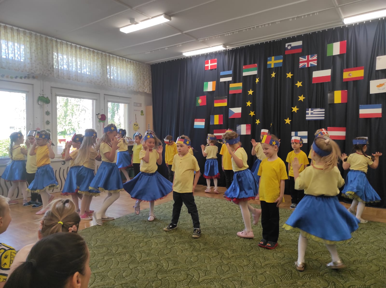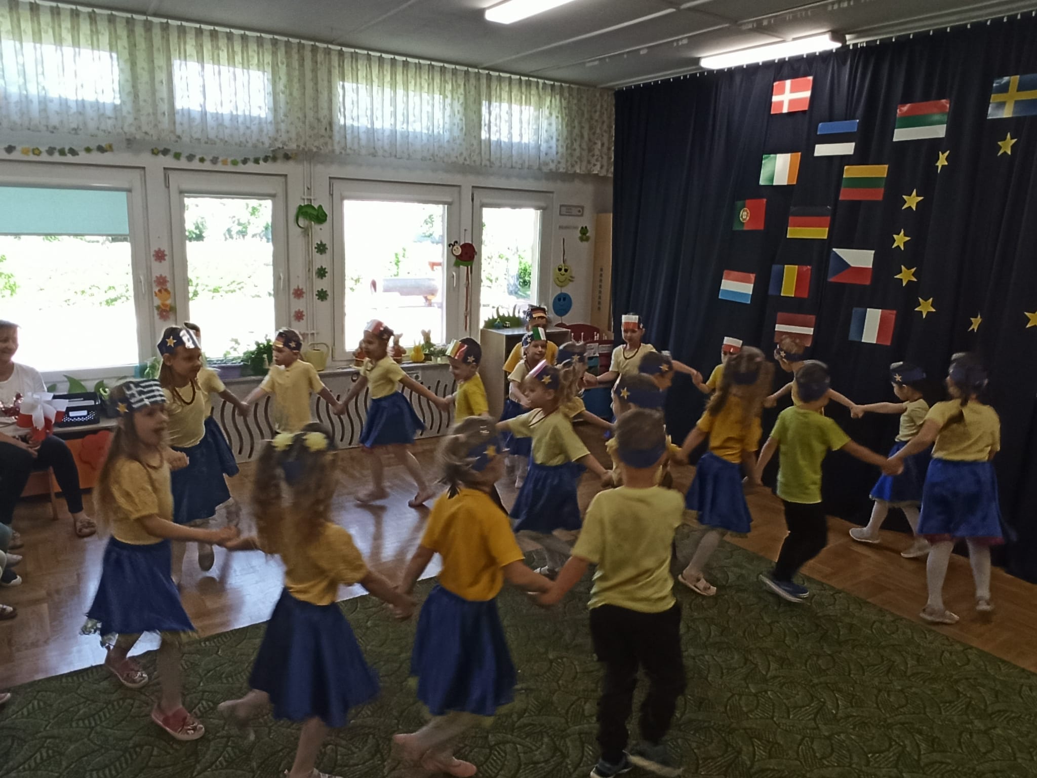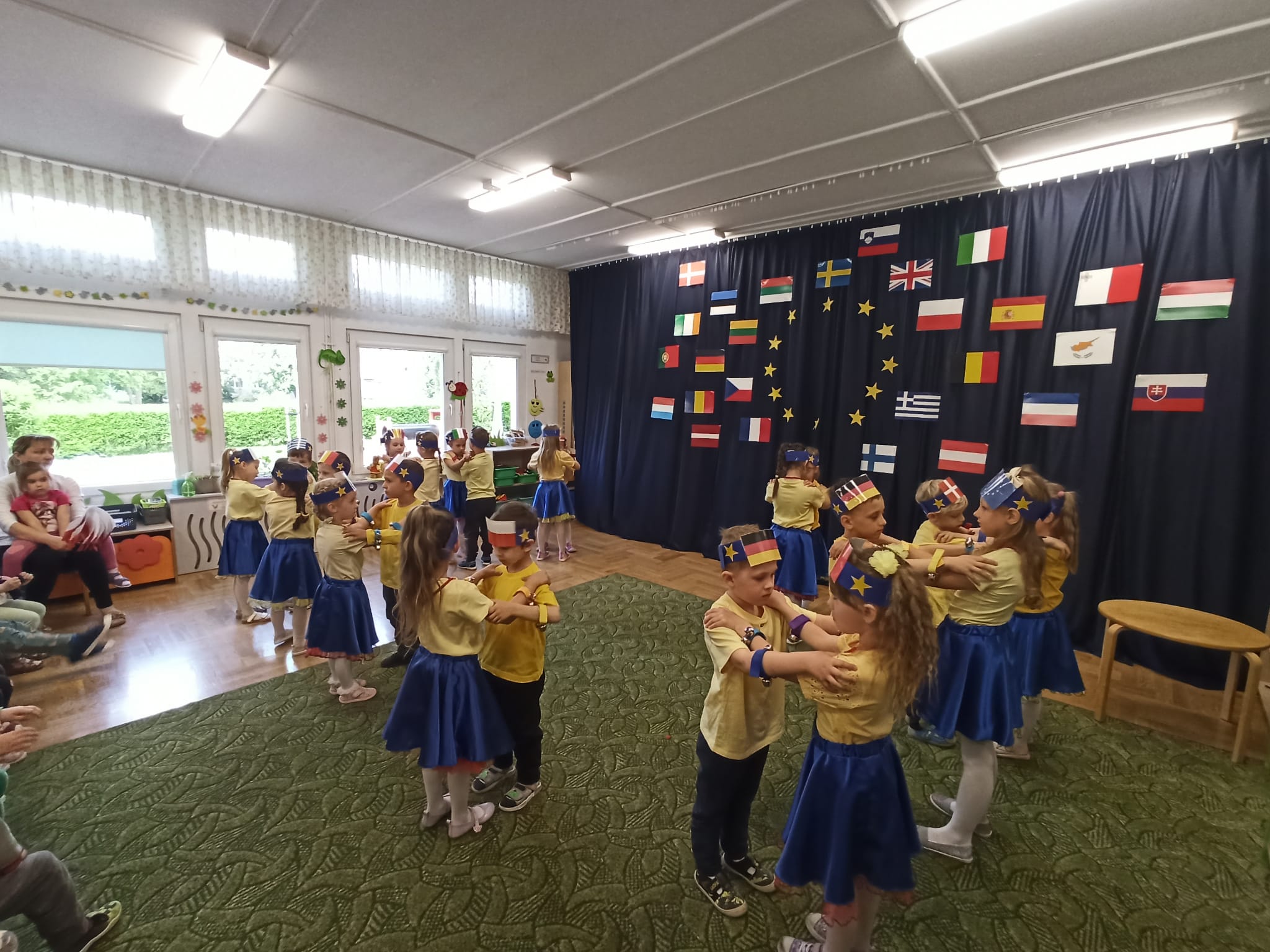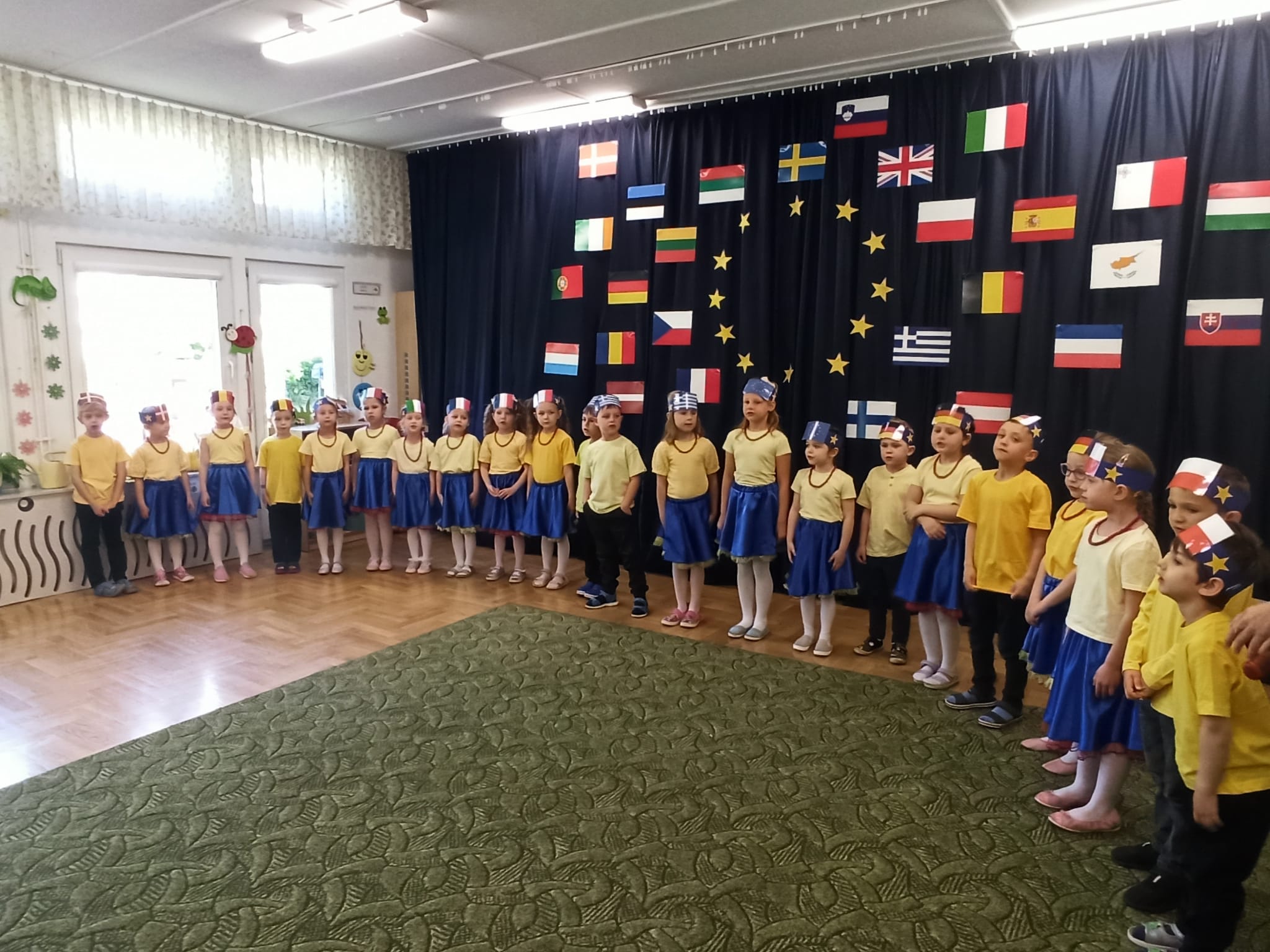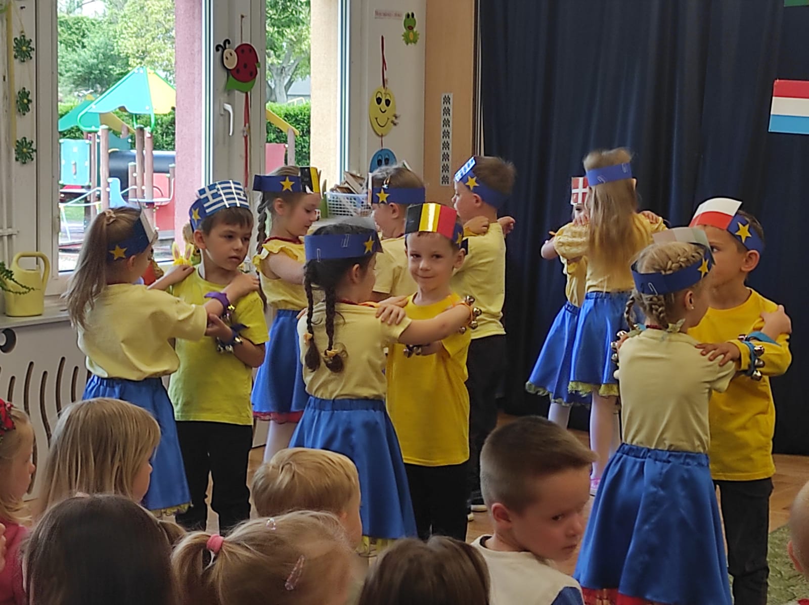 Podczas obchodów Dnia Europy „Biedronki” opowiedziały dzieciom o kulturze i obyczajach wybranych państw europejskich. Zaśpiewały hymn Unii Europejskiej, zatańczyły taniec grecki „Zorbę” oraz taniec węgierski, polski taniec ludowy „Krakowiak”, policzyły po włosku do 10, zaśpiewały piosenkę w języku niemieckim. Na koniec wspólnie zaśpiewaliśmy piosenkę „Jesteśmy Polką i Polakiem” kształtując poczucie przynależności narodowej.