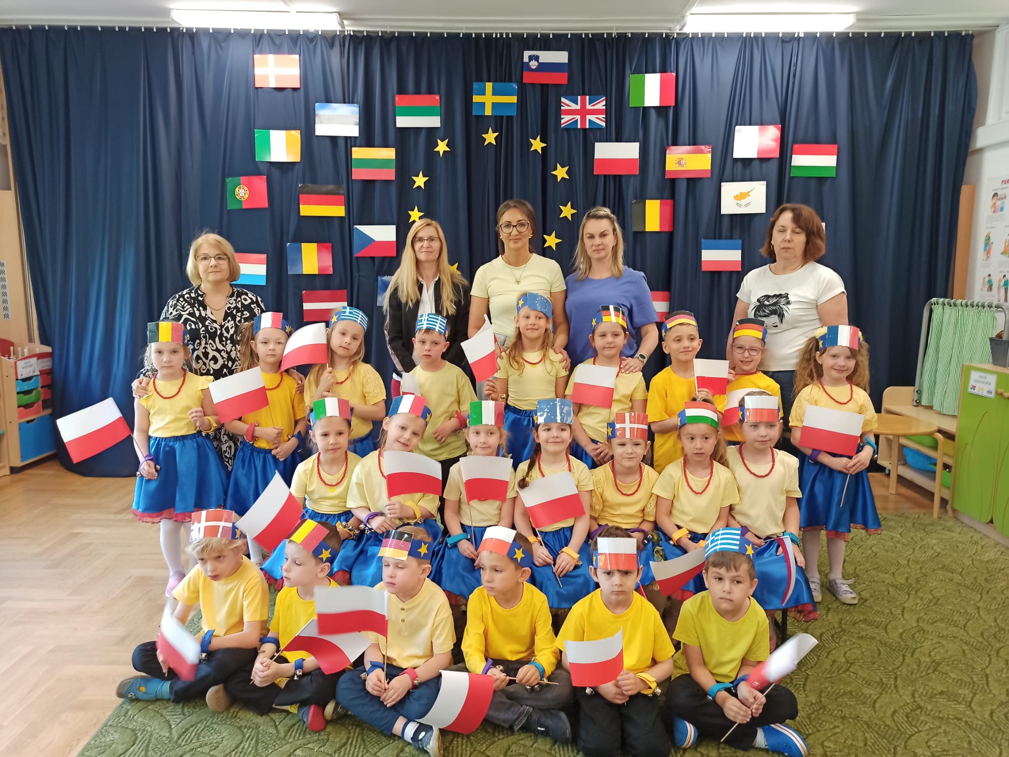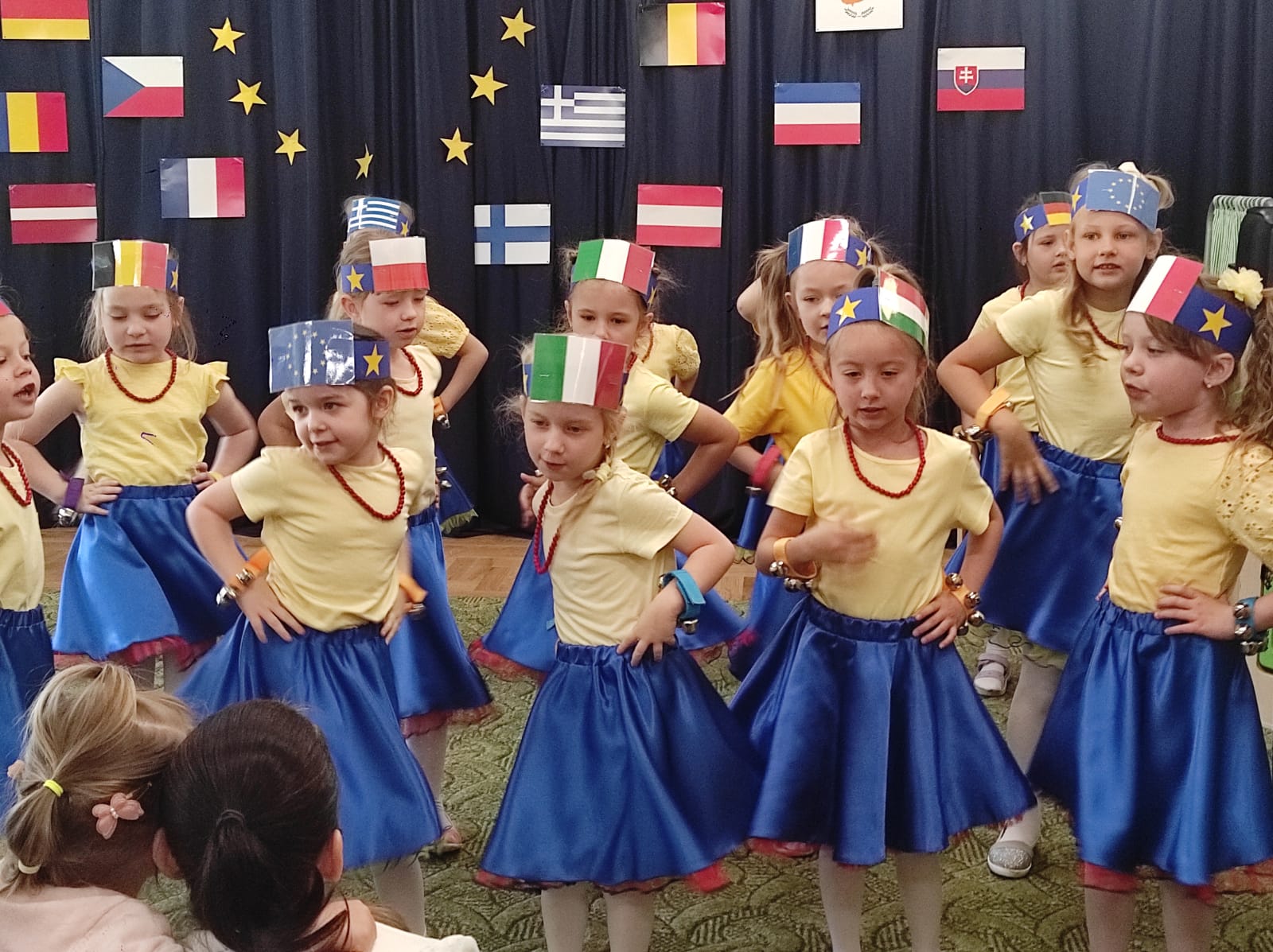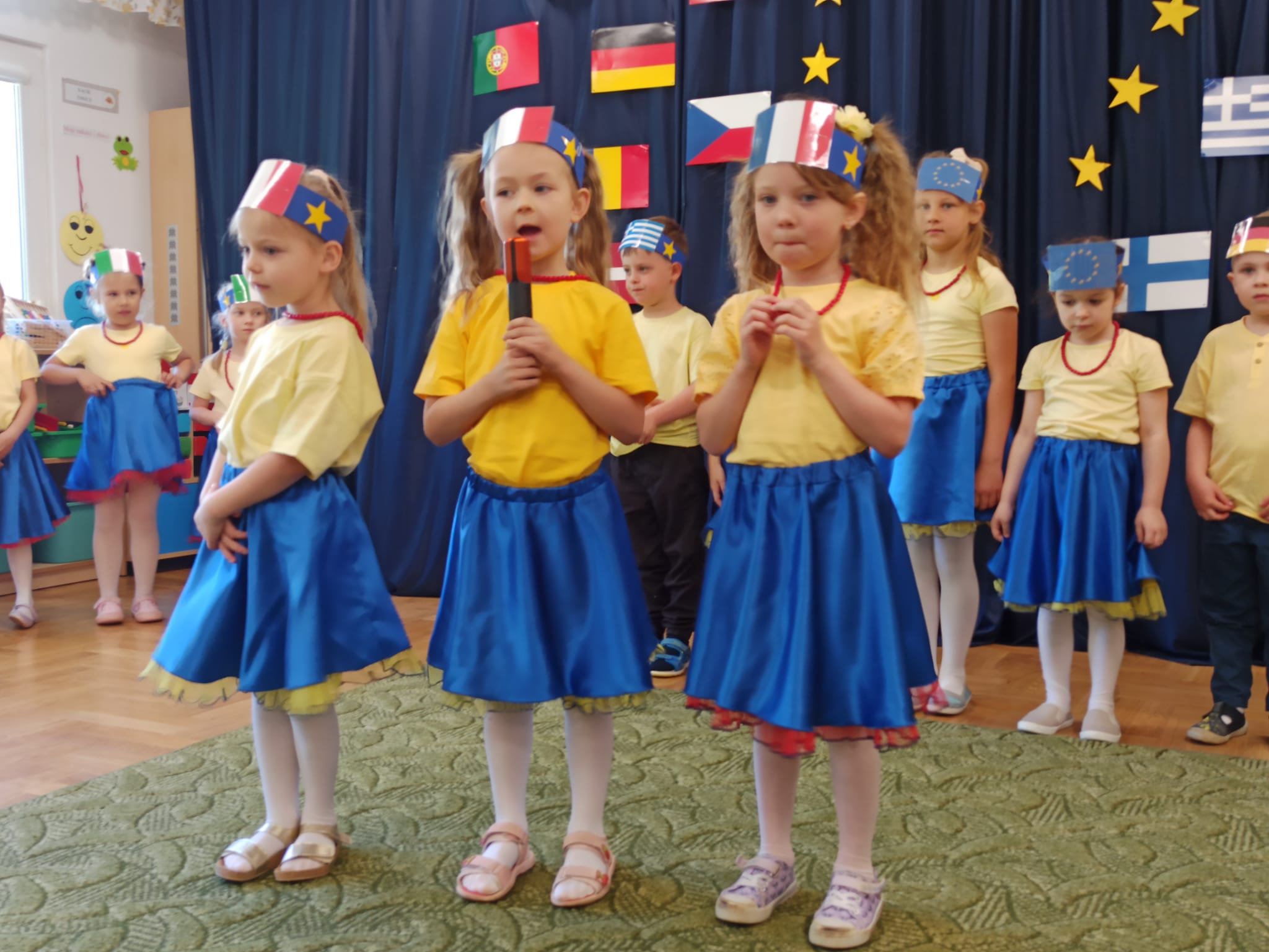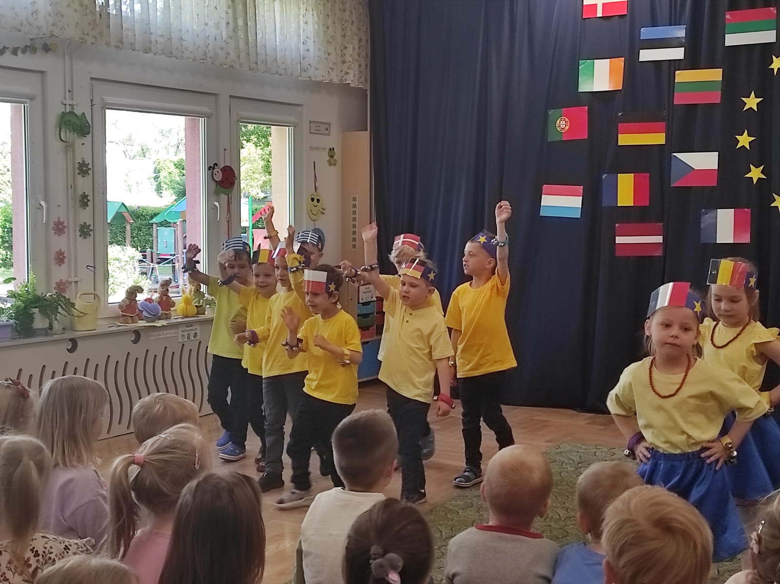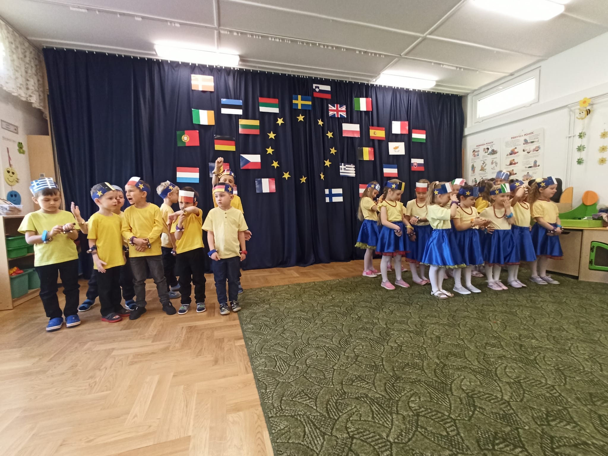 Podczas obchodów Dnia Europy „Biedronki” opowiedziały dzieciom o kulturze i obyczajach wybranych państw europejskich. Zaśpiewały hymn Unii Europejskiej, zatańczyły taniec grecki „Zorbę” oraz taniec węgierski, polski taniec ludowy „Krakowiak”, policzyły po włosku do 10, zaśpiewały piosenkę w języku niemieckim. Na koniec wspólnie zaśpiewaliśmy piosenkę „Jesteśmy Polką i Polakiem” kształtując poczucie przynależności narodowej.