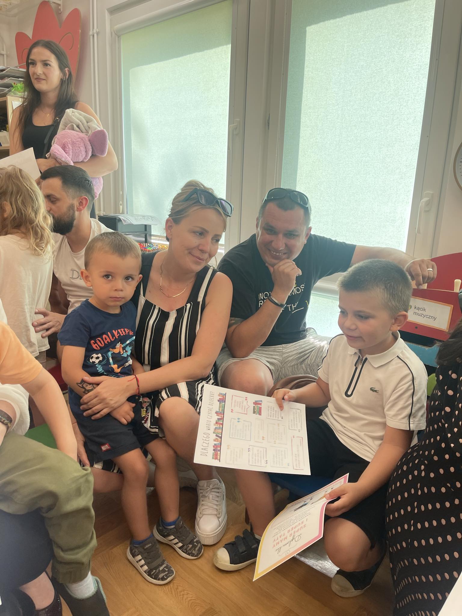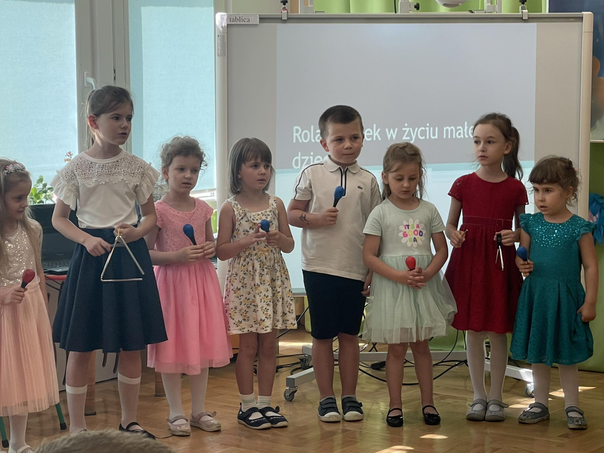 Dnia 24.05.2024r. w grupie Motylki odbyła się niezwykle ważna uroczystość – Dzień Mamy i Taty. Dzieci zaprezentowały swoim Rodzicom przygotowany program artystyczny. Recytowały wiersze, śpiewały piosenki oraz grały na instrumentach wyrażając w ten sposób swoje przywiązanie, miłość i wdzięczność. W trakcie uroczystości na twarzach Mam i Tatusiów gościł uśmiech, duma a także wzruszenie. Przedszkolaki podarowały ukochanym Rodzicom wcześniej przygotowane upominki. Na zakończenie Rodzice mieli okazję zobaczyć i wysłuchać prezentację na temat wpływu czytelnictwa na rozwój młodego człowieka w ramach Narodowego Programu Rozwoju Czytelnictwa i projektu „Szkoła dostępna dla wszystkich“. Dziękujemy Rodzicom za przybycie i wspólnie spędzony czas.