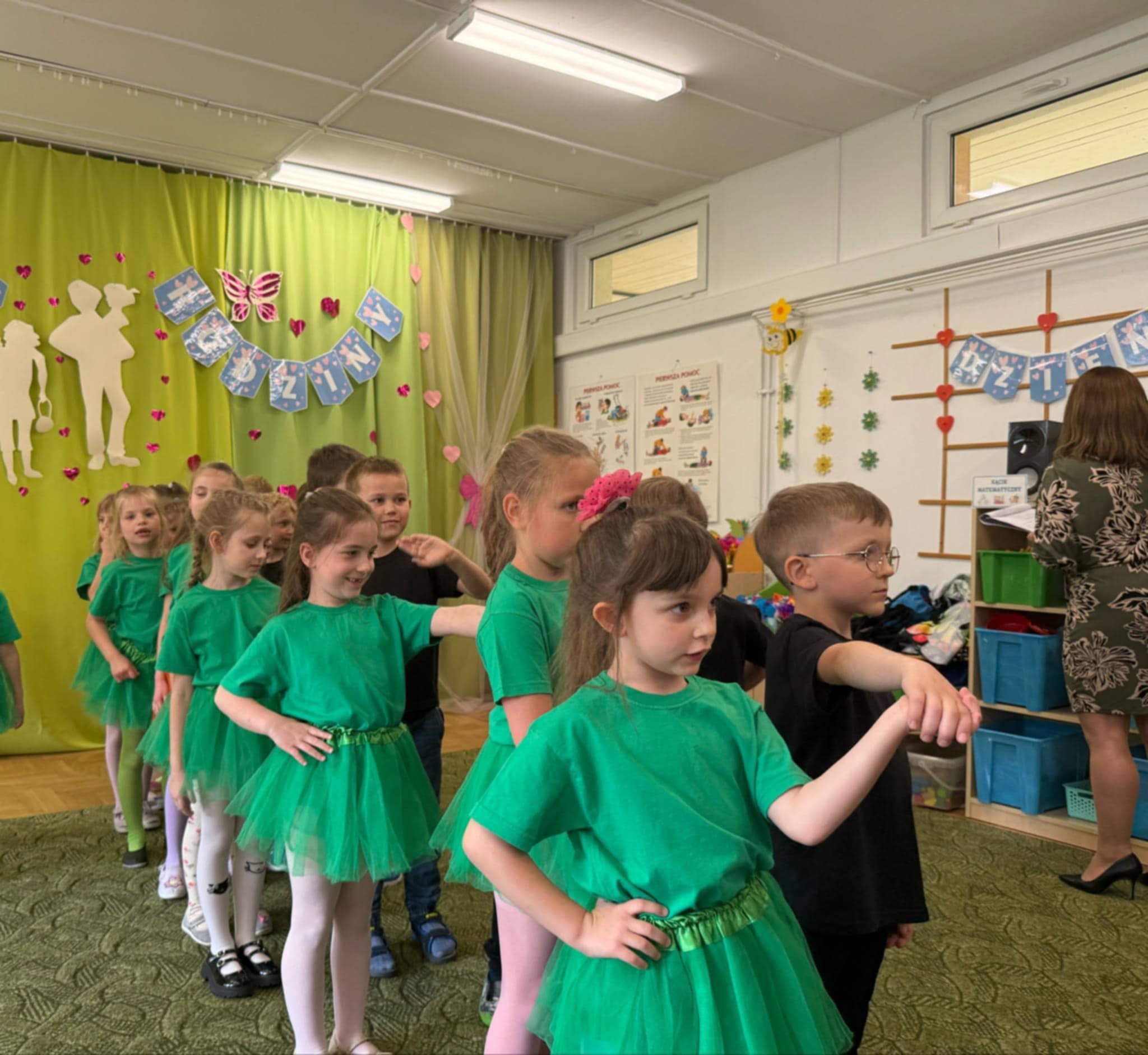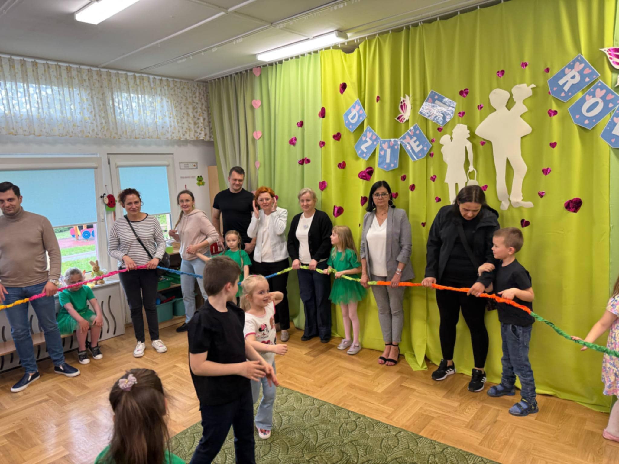 19.05.2025 r. w grupie ,,Zajączki” odbyła się uroczystość ,,Dzień Rodziny”, podczas której przedszkolaki zaprezentowały dla swoich Rodziców występ artystyczny. Dzieci poprzez śpiewane piosenkI, recytowane wiersze, tańce i czułe słowa przekazały jak bardzo kochają swoich Rodziców. Przybyli Goście z dumą i ze wzruszeniem słuchali swoich pociech. Po zakończonej części artystycznej Rodzice otrzymali własnoręcznie wykonane upominki, słodkie buziaki i zatańczyli ze swoimi Rodzicami w rytmach piosenki ,,Bella Ciao” z gumą sensoryczną.
