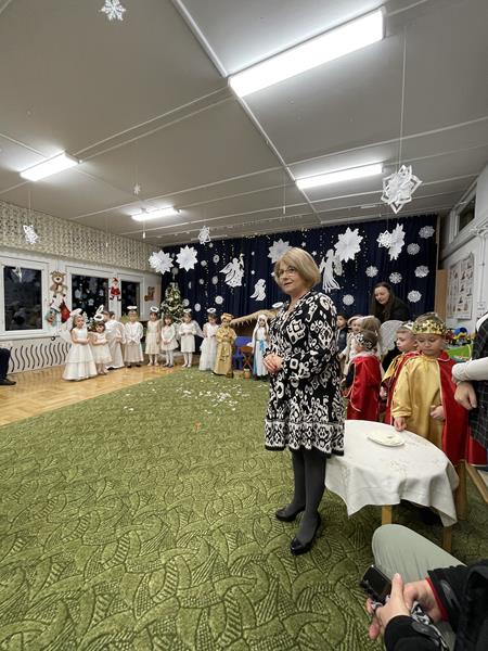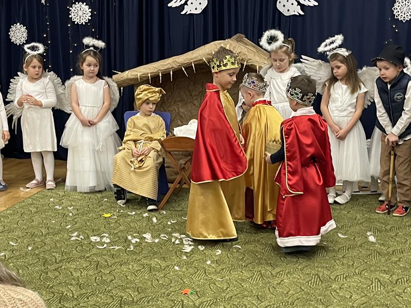 Dnia 09.01.2025r. odbyły się Jasełka bożonarodzeniowe w grupie „Motylki“. To piękne wydarzenie zgromadziło rodziców oraz bliskich, którzy przyszli wspólnie z dziećmi celebrować magię świąt. Przedszkolaki zaprezentowały program artystyczny, śpiewały kolędy i pastorałki, tańczyły oraz recytowały wiersze wprowadzając wszystkich w radosny nastrój. Na zakończenie Jasełek Pani Dyrektor złożyła wszystkim serdeczne życzenia noworoczne. Tradycyjnie dzieci podzieliły się opłatkiem z Rodzicami, co dodało uroku całemu wydarzeniu.