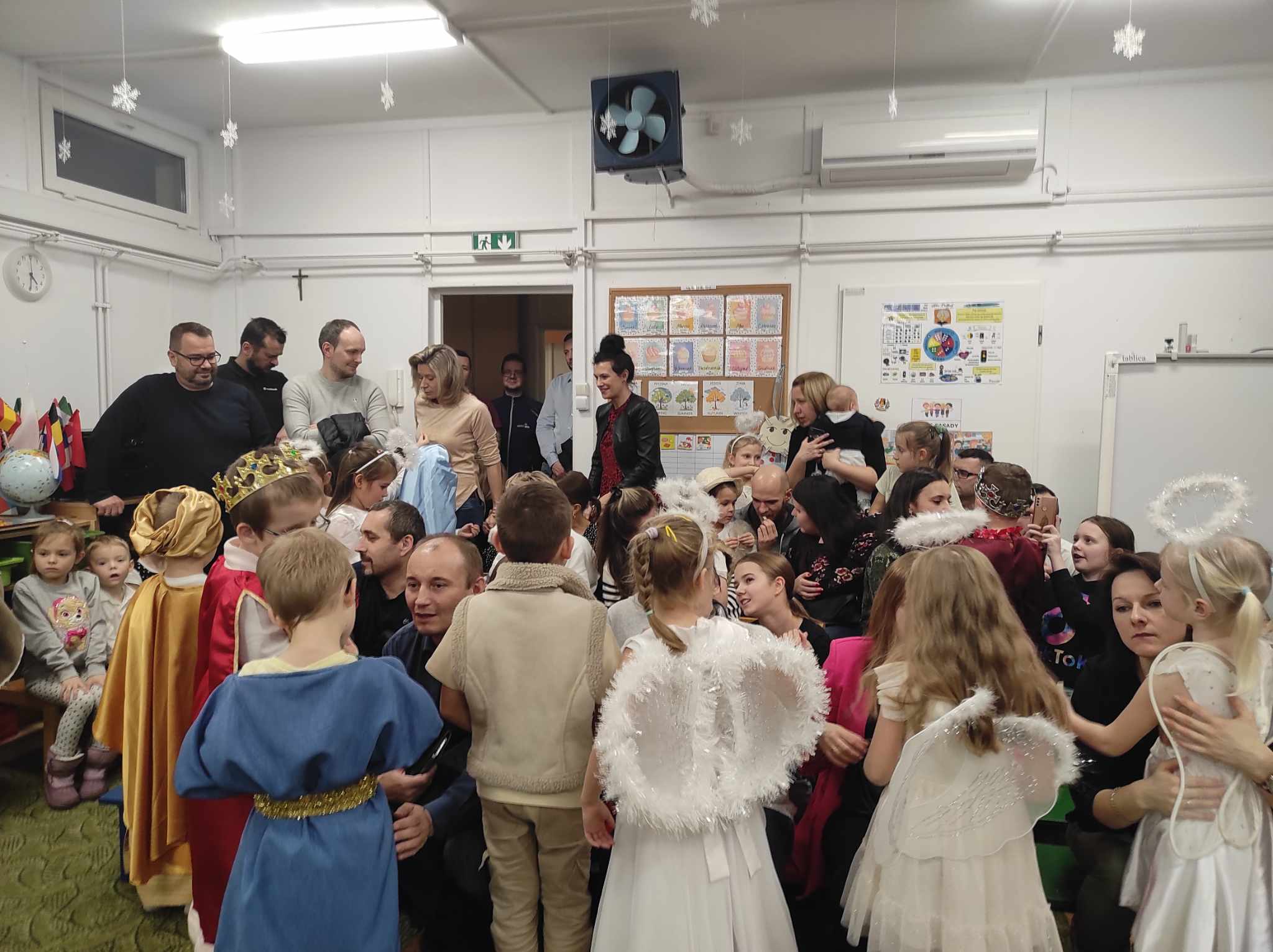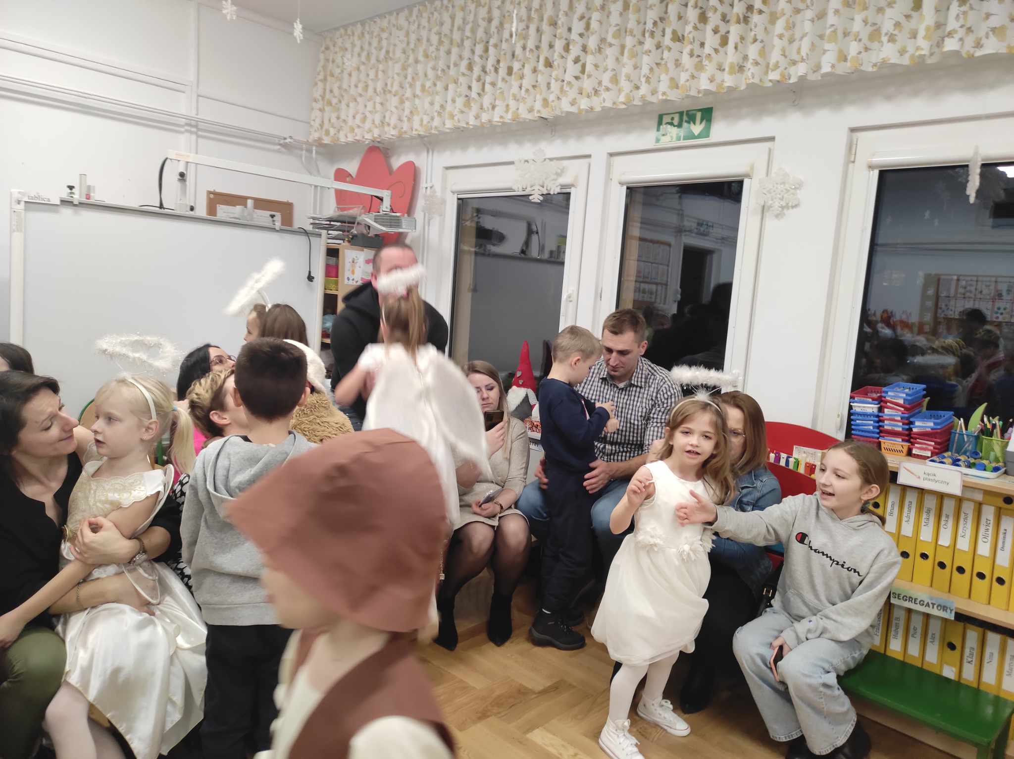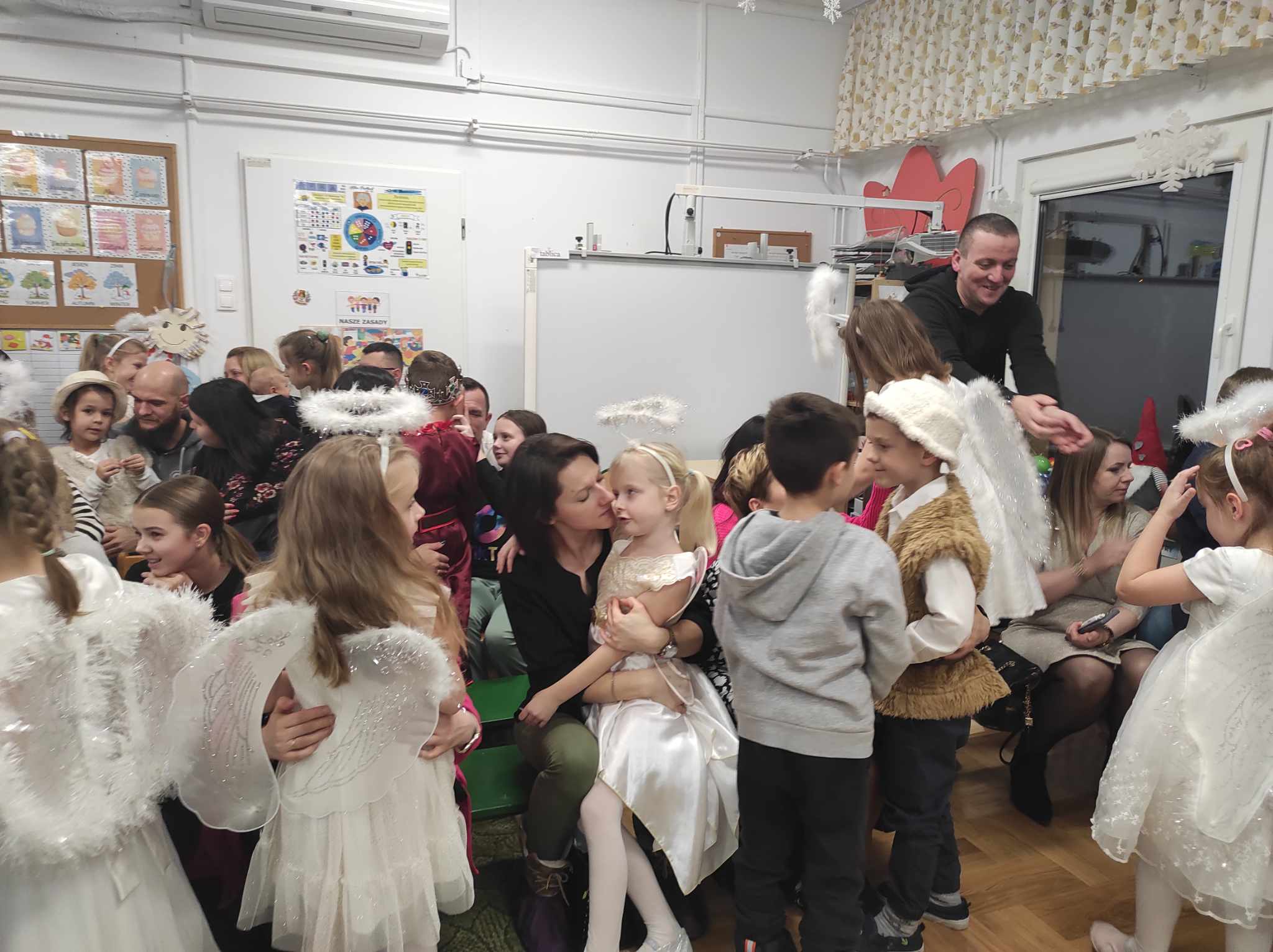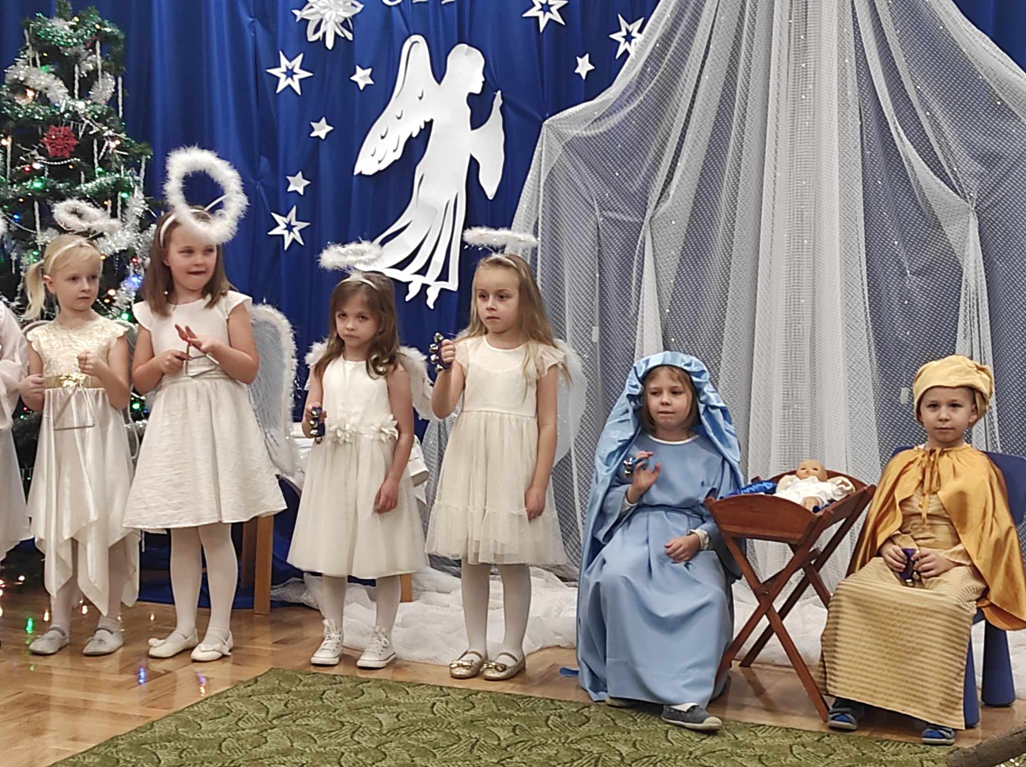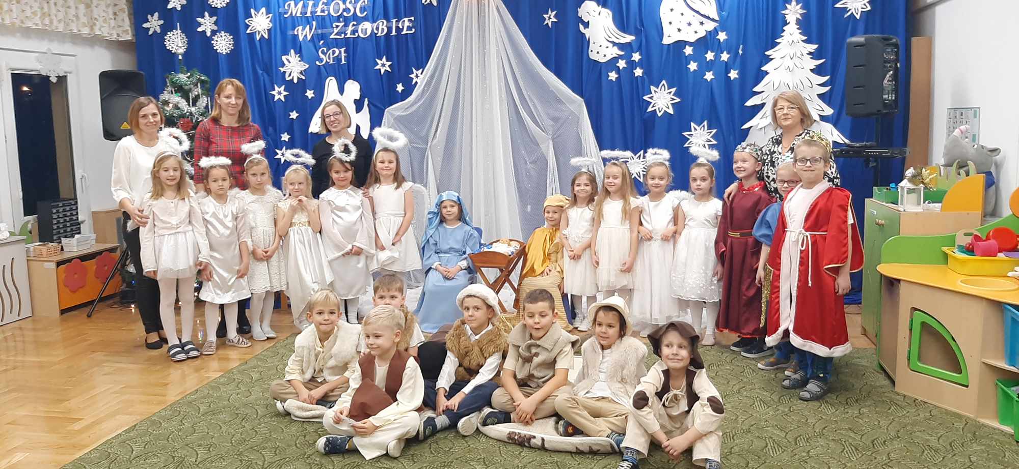 19.12.2023 r. przedszkolaki z grupy „Zajączki“ zaprezentowały swoim najbliższym przedstawienie jasełkowe. Okres Bożego Narodzenia to czas wyjątkowy, pełen radości, refleksji, nadziei i serdecznych spotkań w gronie najbliższych. W dobrym przeżyciu Bożego Narodzenia pomaga świadome pielęgnowanie tradycyjnych zwyczajów świątecznych. Jednym z nich są Jasełka, czyli widowisko o Bożym Narodzeniu, którego treścią jest historia narodzenia Pana Jezusa. Przygotowania do Jasełek w naszym przedszkolu trwały wiele dni, dzieci uczyły się kolęd, pastorałek, recytowały przypisane im role. Dały możliwość prezentowania swoich umiejętności wokalnych, aktorskich, recytatorskich, tanecznych. Jasełka wprowadziły wszystkich zgromadzonych w świąteczny nastrój. Serdeczne życzenia świąteczne złożyły nie tylko dzieci, ale i Pani Dyrektor Bożena Dąbrowska, która życzyła wszystkim obecnym m.in. zdrowia i radosnych spotkań świątecznych.