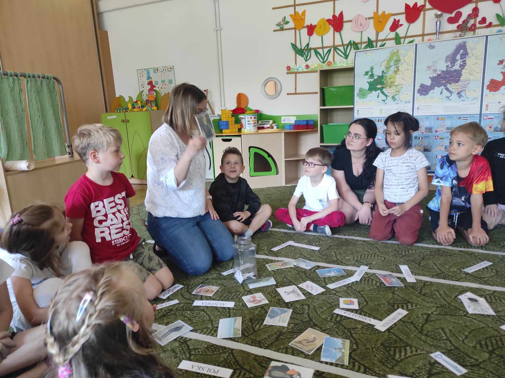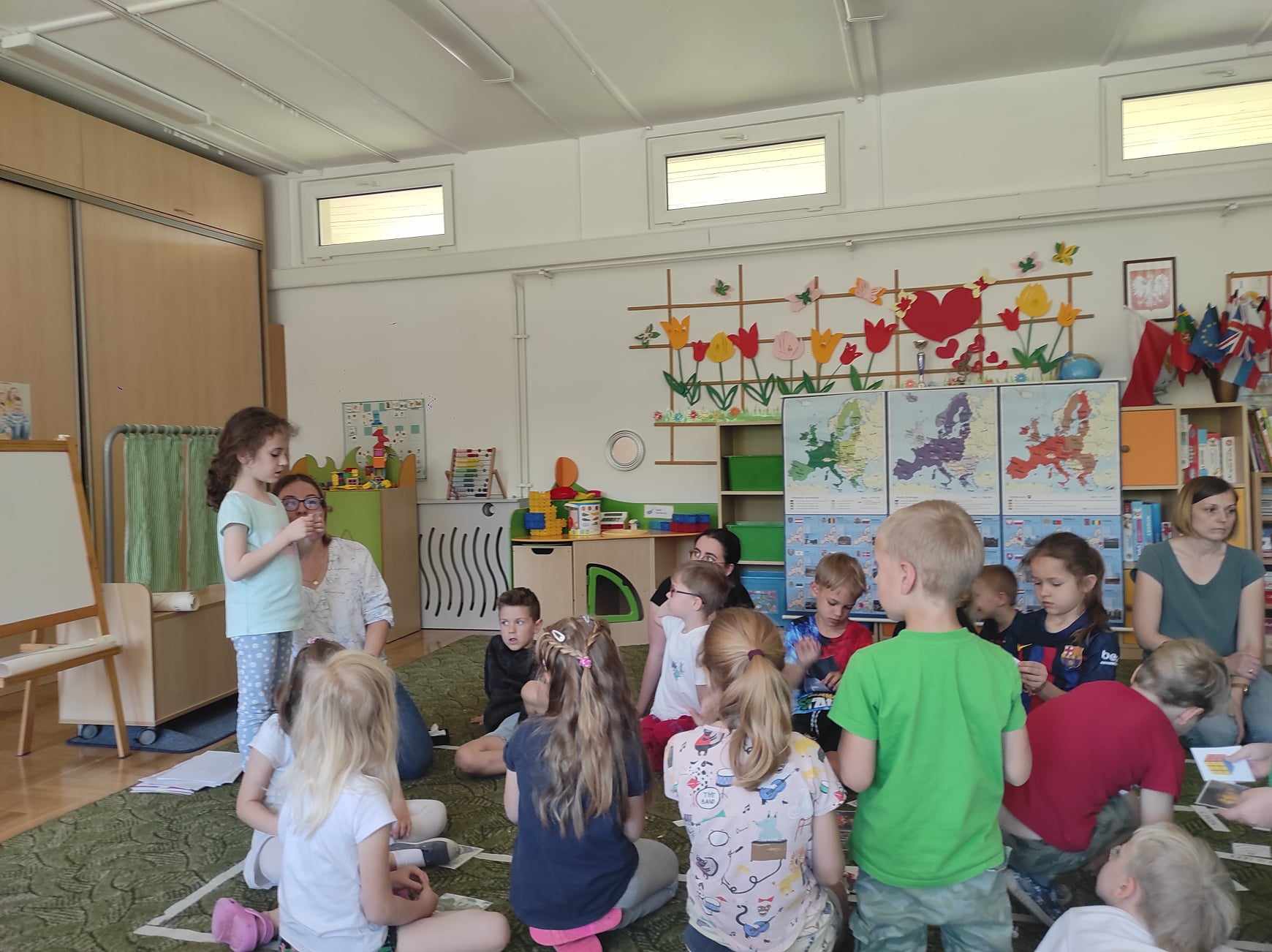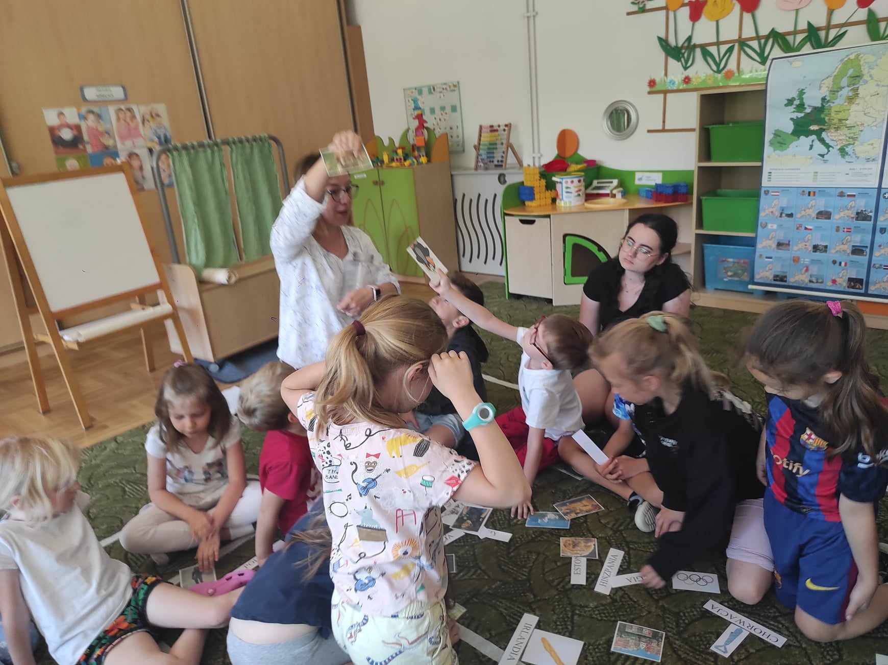 Przedszkolaki z grupy „Zajączki“ rozmawiały w mijającym tygodniu o Polsce i Europie, poznały historię powstania Unii Europejskiej, charakterystyczne cechy nie tylko Polski, ale i krajów Unii. Celem zajęć było m.in. wyrabianie u dzieci poczucia przynależności narodowej, zapoznanie z symbolami Unii Europejskiej, rozbudzanie zainteresowania życiem, kulturą ludzi w niektórych krajach Europy. Jak się okazało „Zajączki“ świetnie odnalazły się w takiej tematyce, poznały wiele ciekawostek, ale też dzieliły się z innymi swoją wiedzą