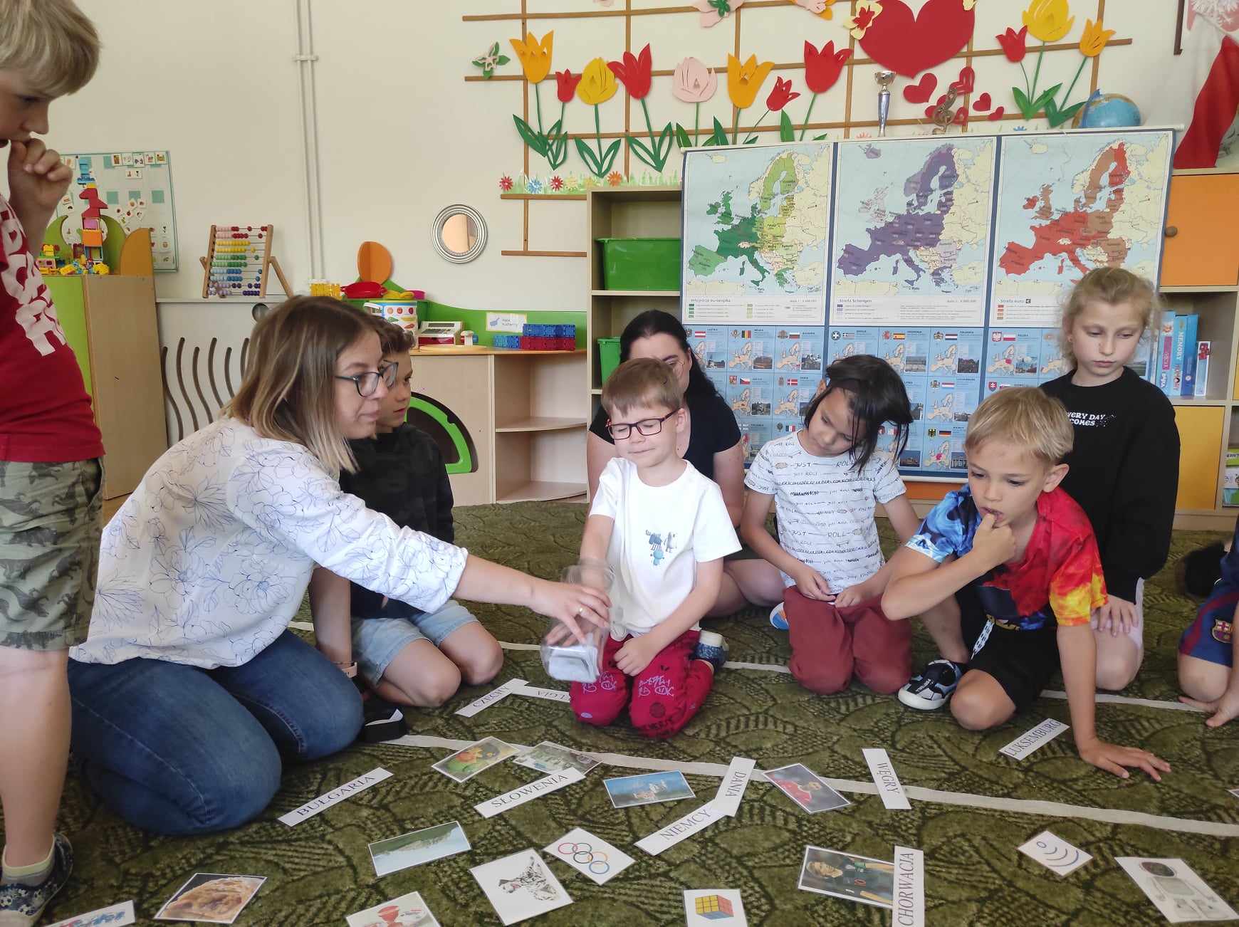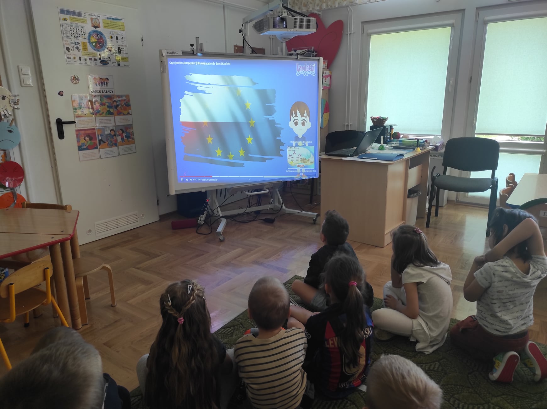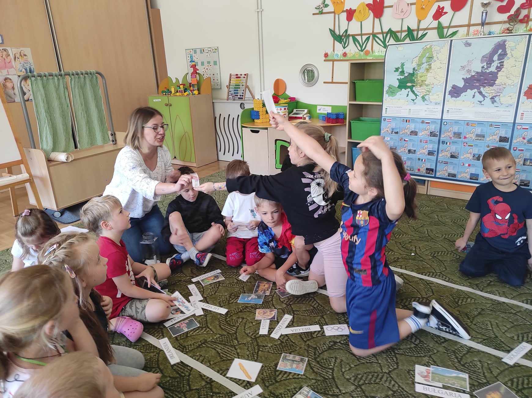 Przedszkolaki z grupy „Zajączki“ rozmawiały w mijającym tygodniu o Polsce i Europie, poznały historię powstania Unii Europejskiej, charakterystyczne cechy nie tylko Polski, ale i krajów Unii. Celem zajęć było m.in. wyrabianie u dzieci poczucia przynależności narodowej, zapoznanie z symbolami Unii Europejskiej, rozbudzanie zainteresowania życiem, kulturą ludzi w niektórych krajach Europy. Jak się okazało „Zajączki“ świetnie odnalazły się w takiej tematyce, poznały wiele ciekawostek, ale też dzieliły się z innymi swoją wiedzą