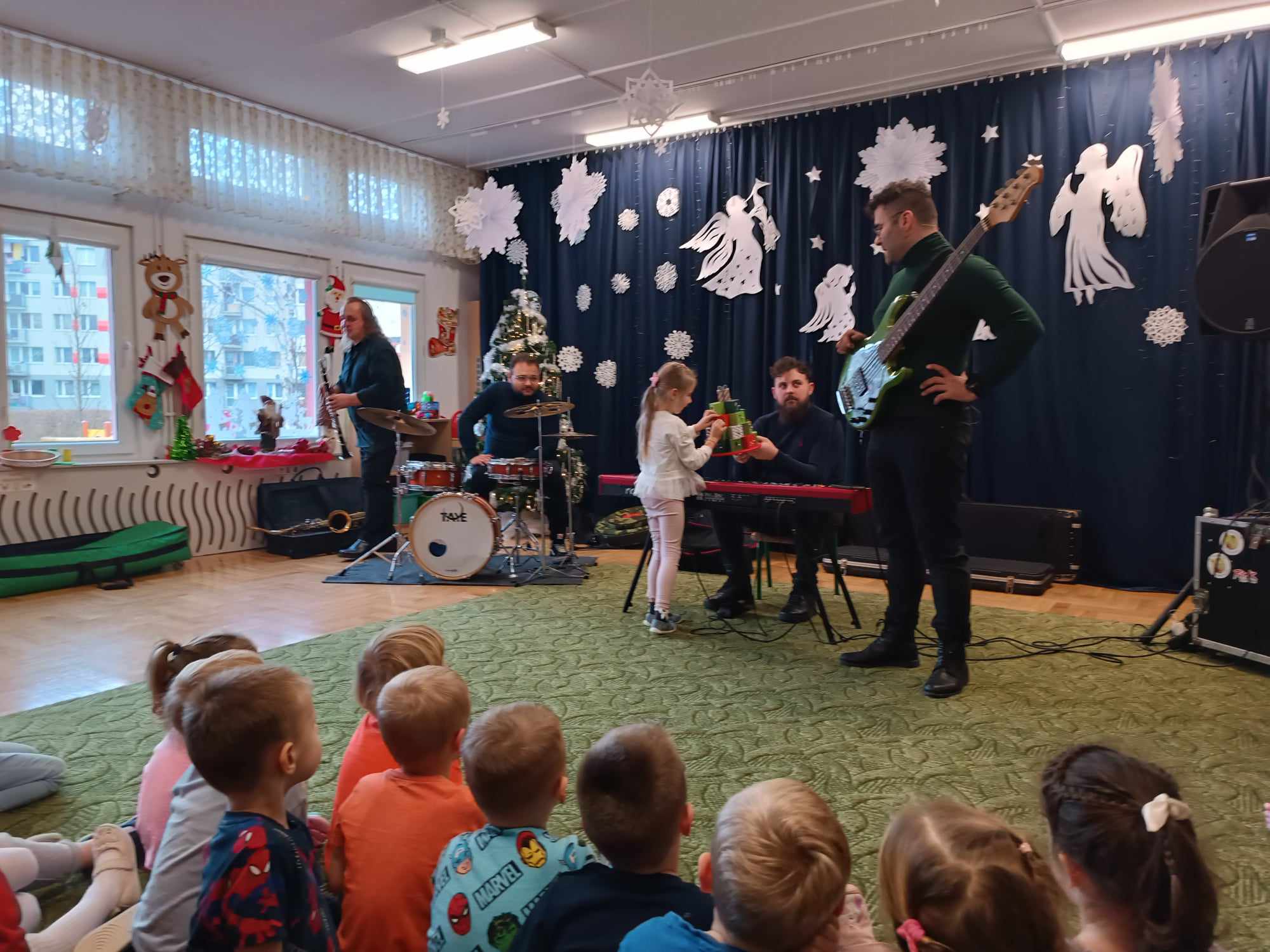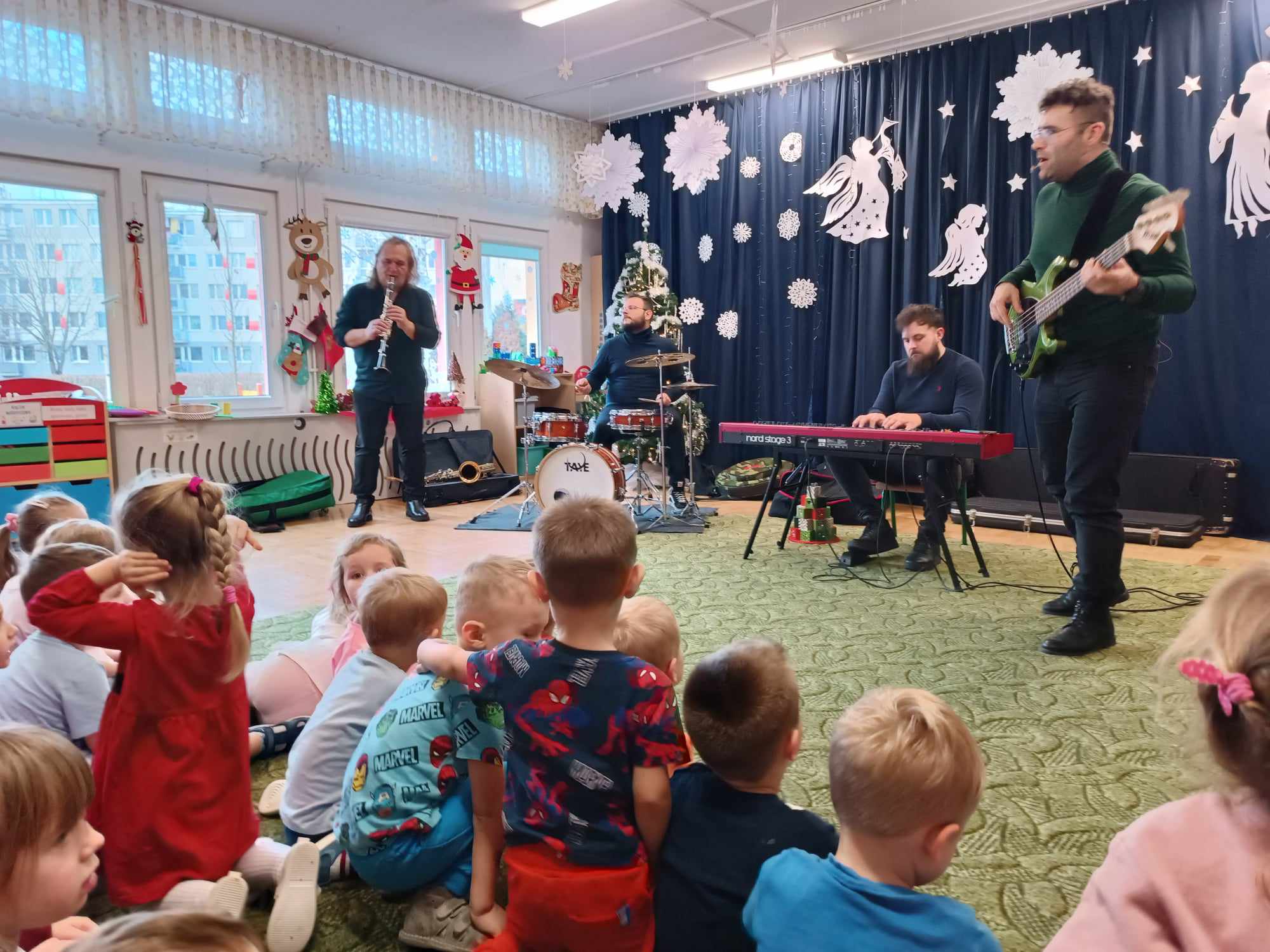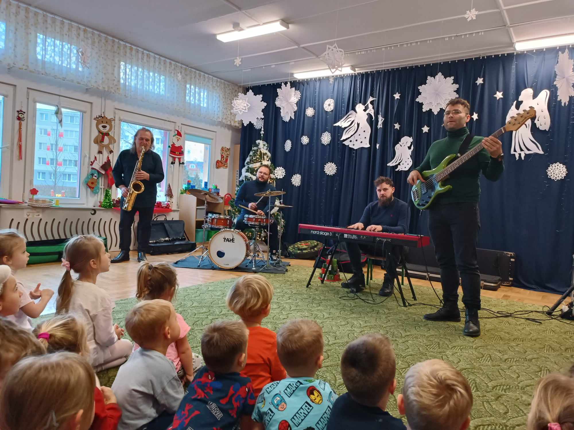 17.12.2024 r. w naszym przedszkolu odbył się koncert kolęd w wykonaniu Pracowni Jaszczur i Przyjaciele. Muzycy zaprosili nas do wspólnego śpiewania kolęd i pastorałek. Sprawili wszystkim ogromną radość i muzycznie wprowadzili w klimat Świąt Bożego Narodzenia. Było to wspaniałe kolędowanie.