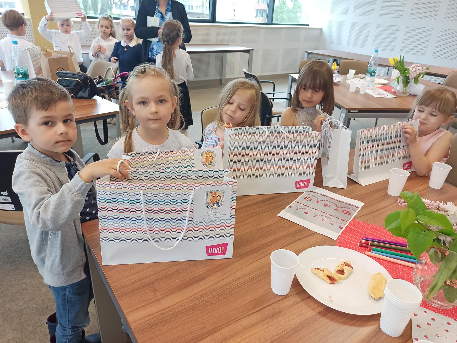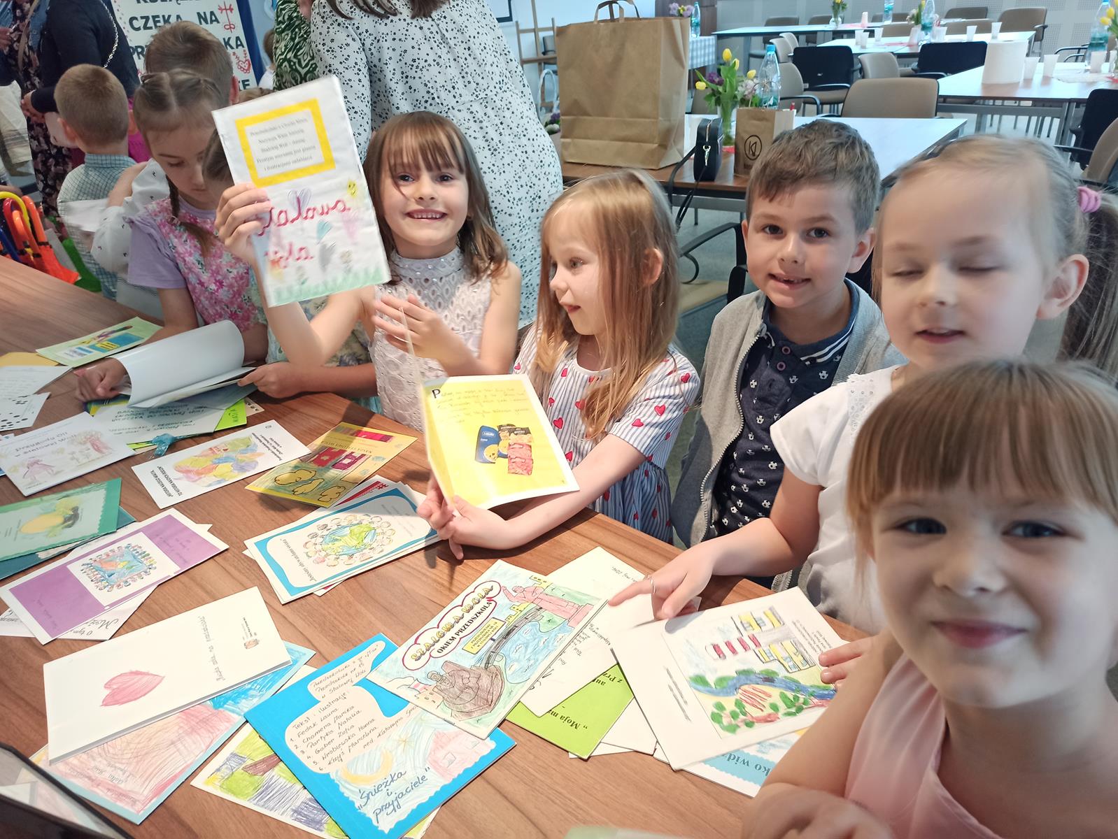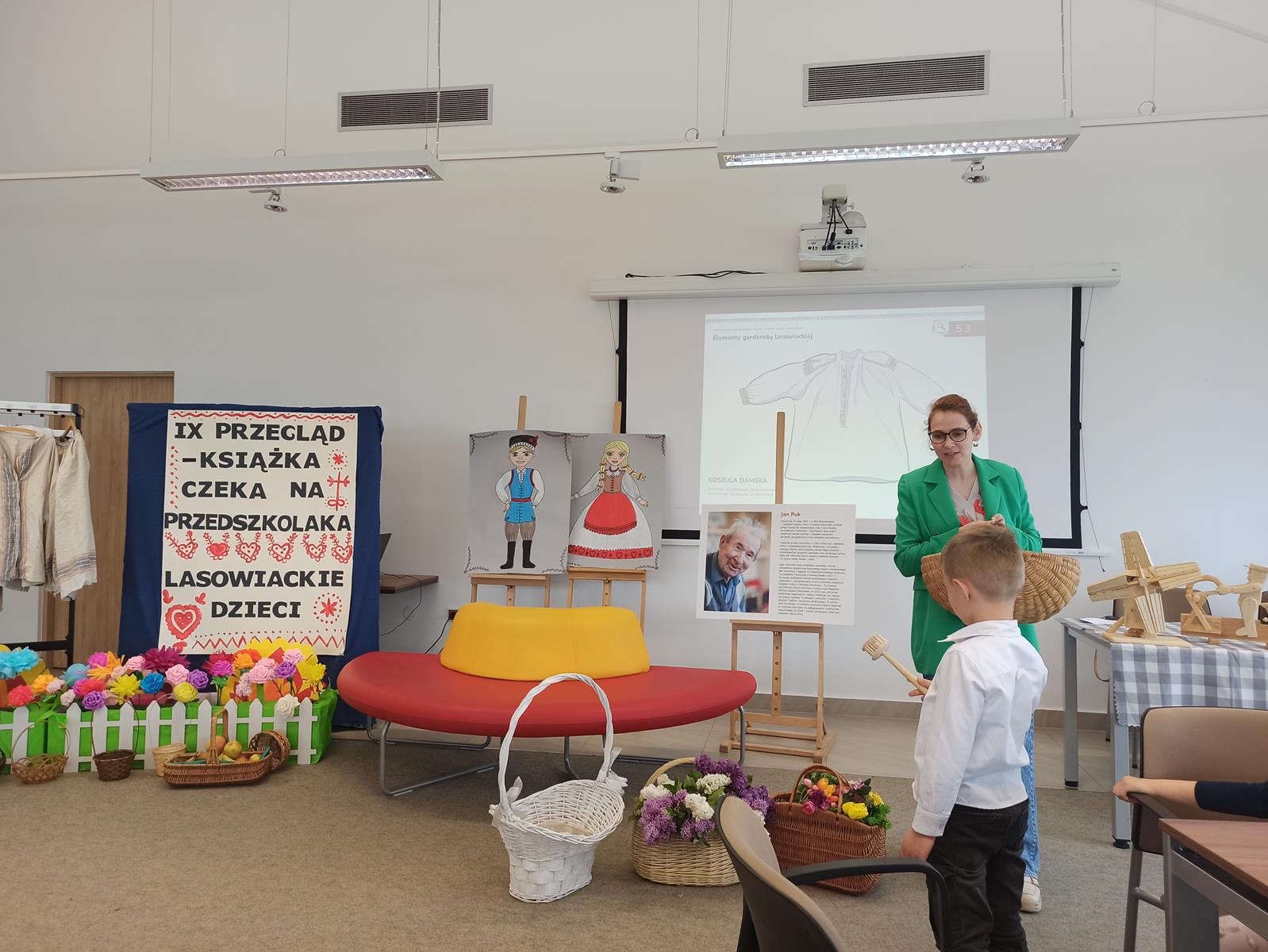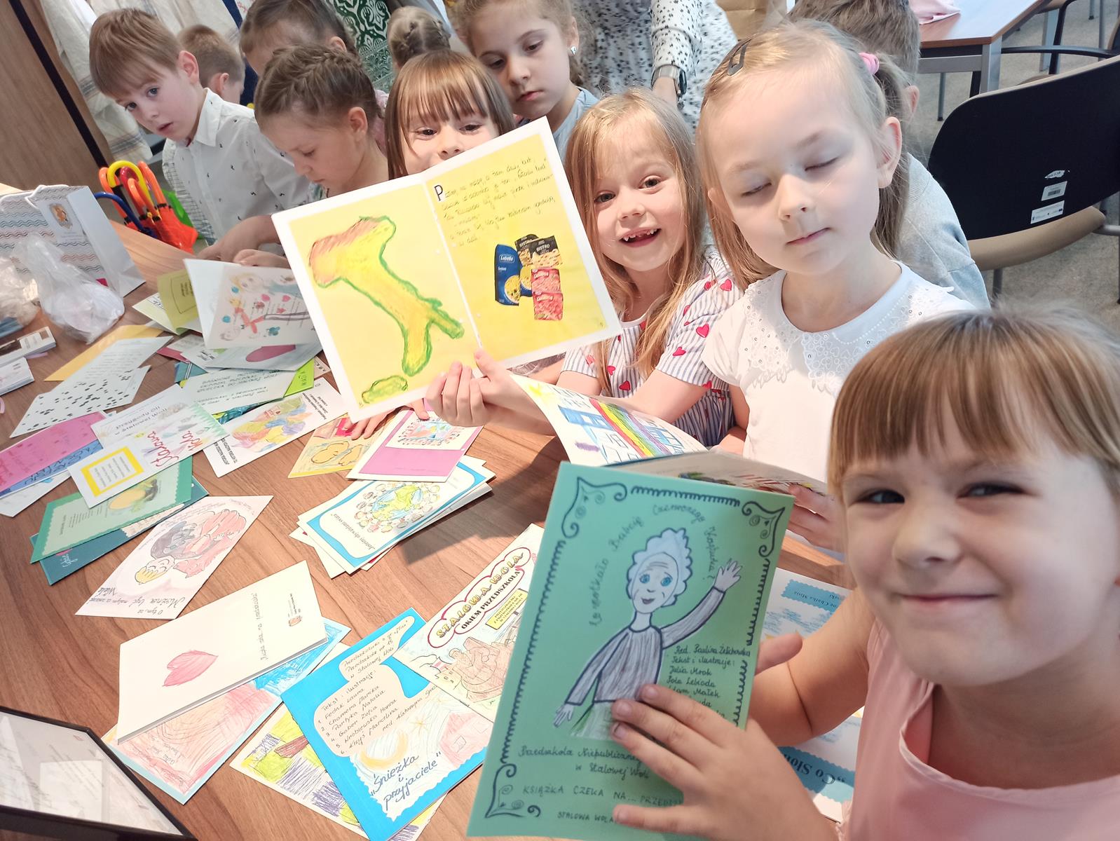 W dniu 25.04.2025r. w Miejskiej Bibliotece Publicznej w Stalowej Woli dobył się IX przegląd „Książeczka czeka na…przedszkolaka“. W tym roku przewodnim tematem książeczki były zwyczaje i kultura lasowiacka. Dzieci z Grupy Biedronki bardzo chętnie taką książeczkę stworzyły a następnie zaprezentowały ja na przeglądzie. W trakcie uroczystości dzieci miały okazje zapoznać się z zwyczajami lasowiackimi, uczestniczyć w warsztatach, a także obejrzeć książeczki z poprzednich lat. Akcja „Książka czeka na przedszkolaka” to inicjatywa, która nie tylko promuje czytelnictwo wśród najmłodszych, ale również zachęca dzieci do twórczego wyrażania siebie poprzez książkę.