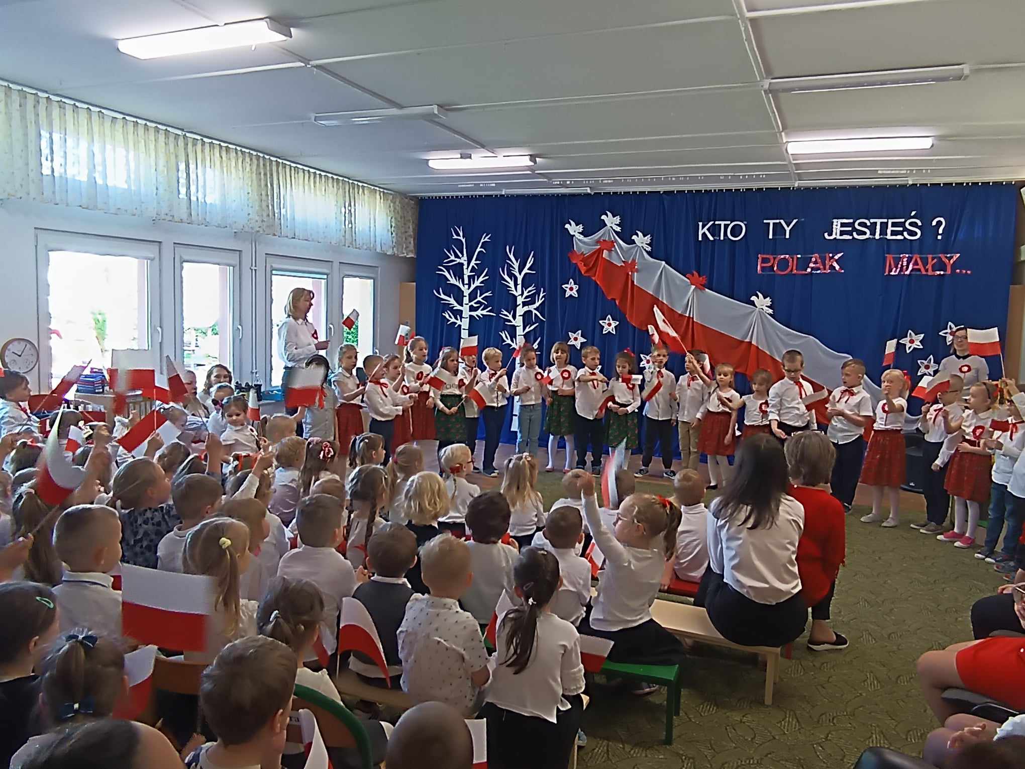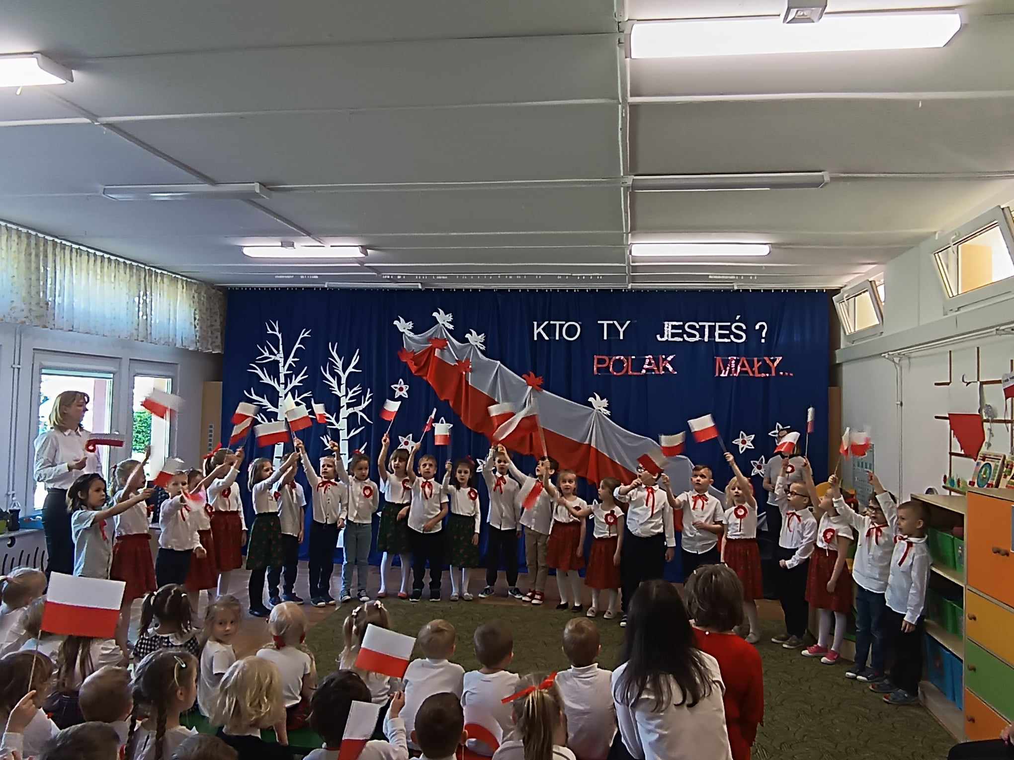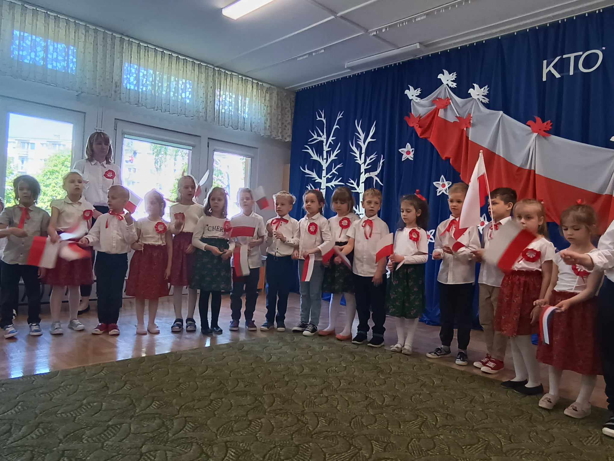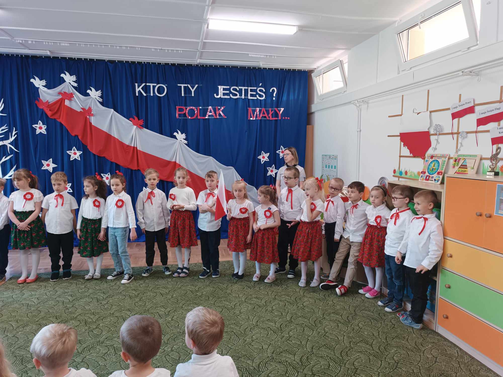 Maj obfituje w święta narodowe, 1 Maja Święto Pracy, 2 Maja Święto Flagi Rzeczpospolitej Polskiej i 233 rocznica Uchwalenia Konstytucji 3 Maja świętowaliśmy w naszym przedszkolu już na koniec kwietnia. Przedszkolaki z grupy „Zajączki“ opowiedziały młodszym kolegom o tych ważnych dla Polski świętach, przypomniały o symbolach narodowych, zaśpiewały piosenki o tematyce patriotycznej, zaprezentowały taniec. Była to okazja do krzewienia wśród dzieci poczucia przynależności narodowej, patriotyzmu oraz szacunku dla własnego kraju.