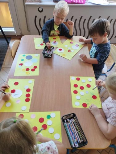 W piątek 15 września obchodziliśmy „Międzynarodowy Dzień Kropki“, który był doskonałą okazją do porozmawiania z dziećmi na temat posiadanych przez nie talentów oraz zaprezentowanie ich światu, bo każdy z nas ma przecież jakiś talent. Bawiliśmy się kreatywnie i powstawały niepowtarzalne kropkowe dzieła sztuki w każdej z grup przedszkolnych.