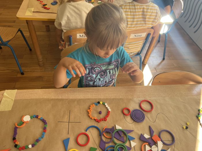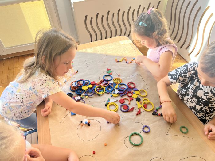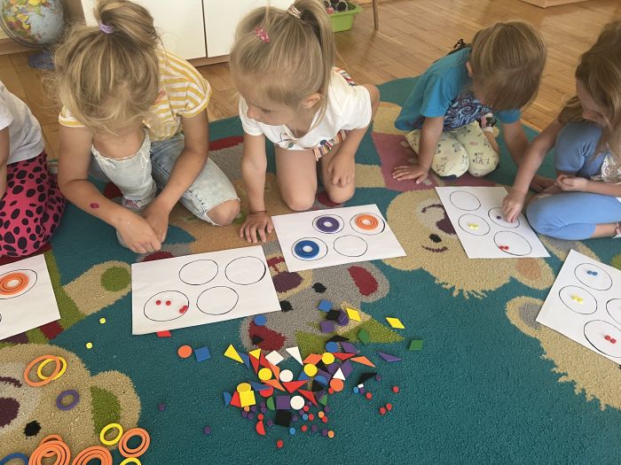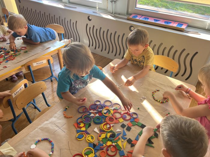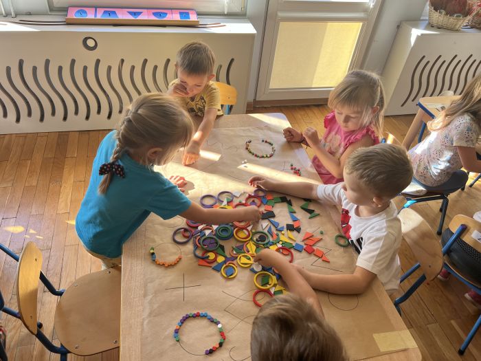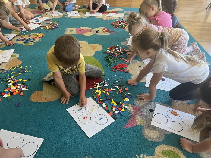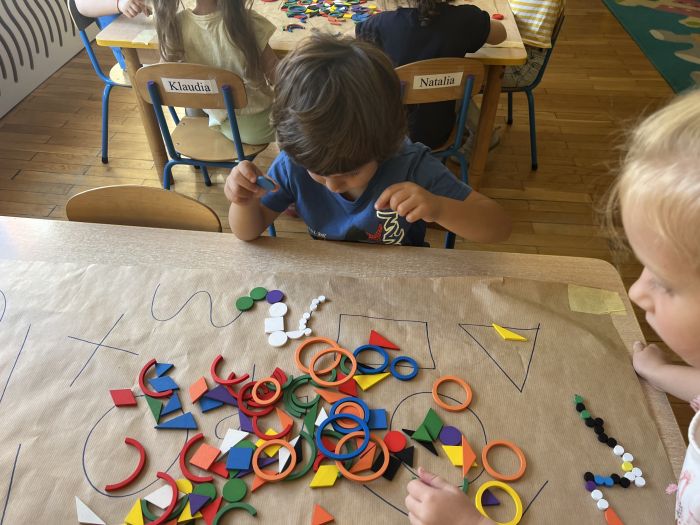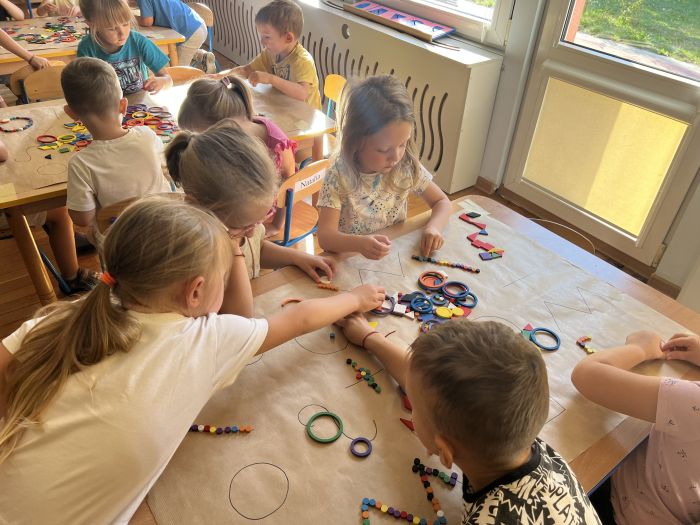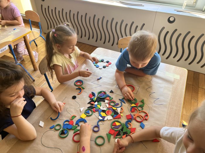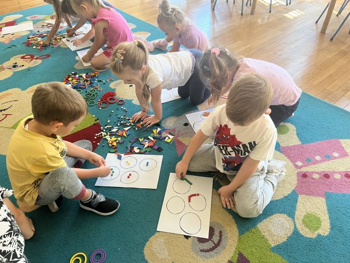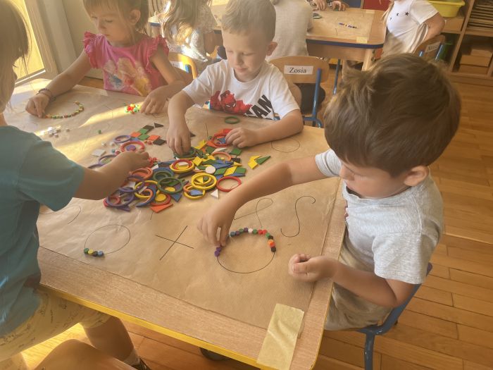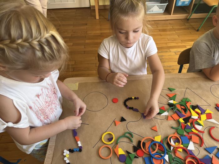 W październiku przedszkolaki z grupy „Misie” utrwalały nazwy kolorów wykorzystując do tego Dary Froebla. Klasyfikowały wybrane kolory oraz tworzyły kolorowe wzory swobodnie wybierając barwy oraz dany wzór w zależności od własnej inwencji twórczej.