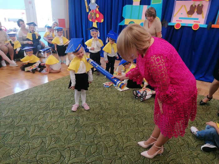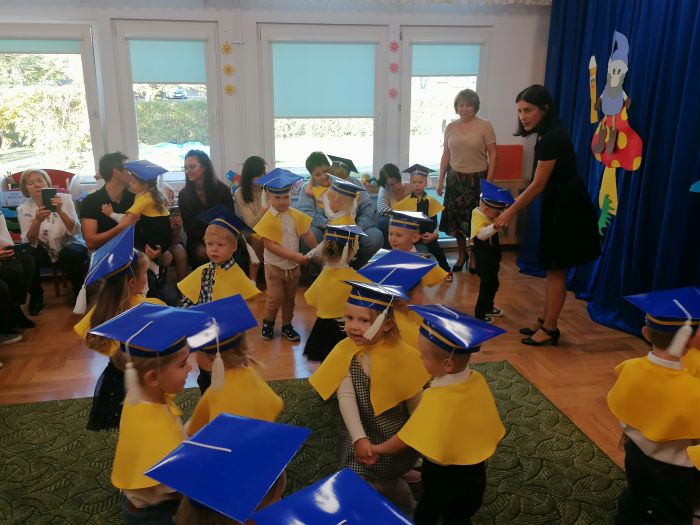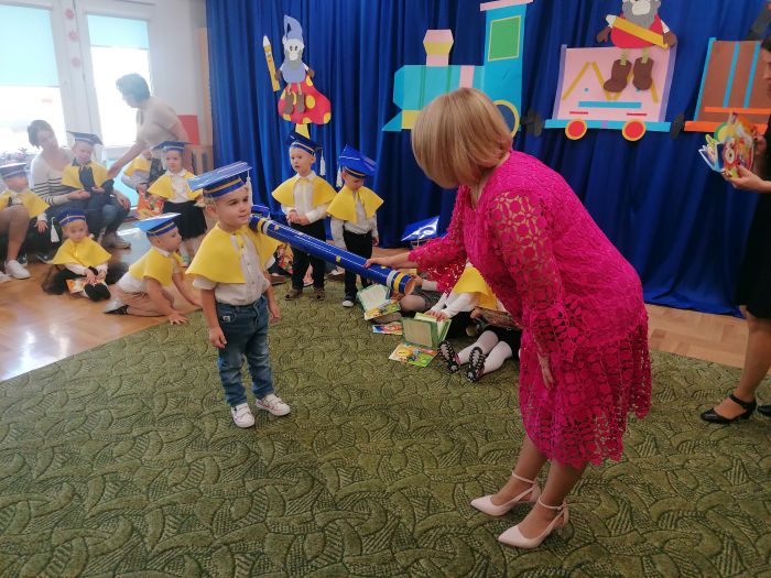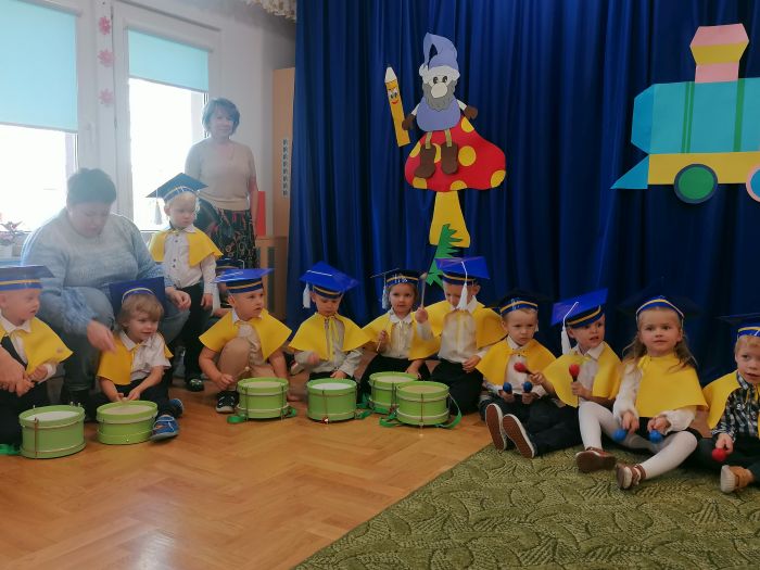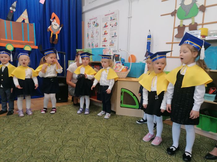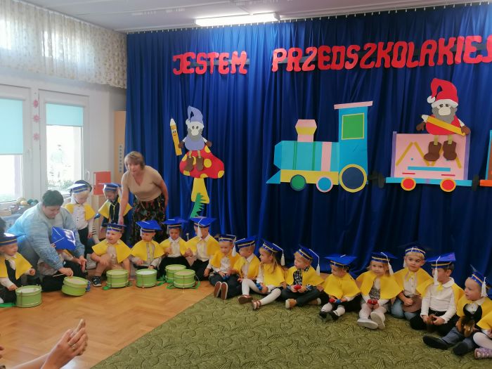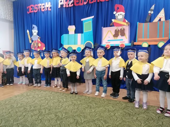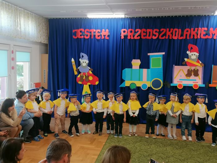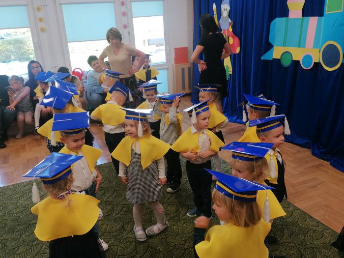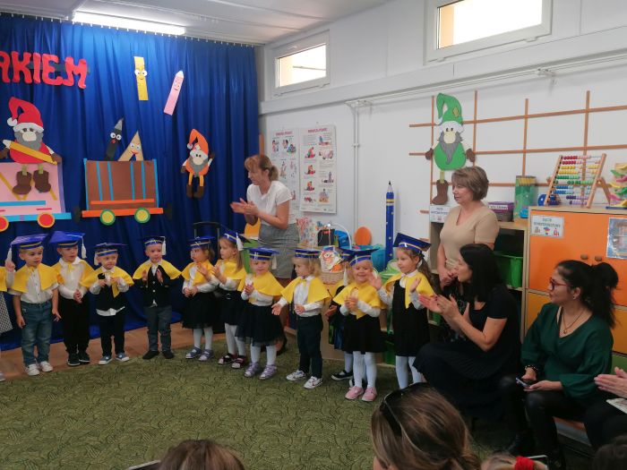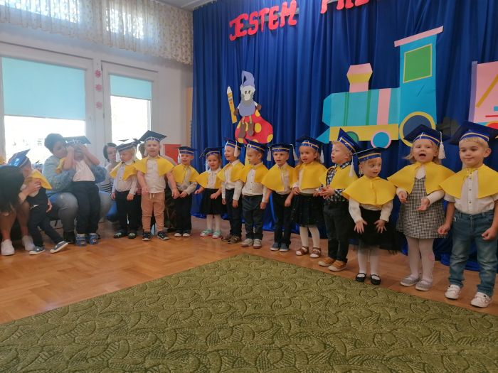 Pierwszy występ naszych Dzielnych Przedszkolaków. W środę 23 października 2024 odbyła się uroczystość Pasowania na Przedszkolaka, do grona przedszkolaków zostały przyjęte najmłodsze dzieci z grupy „Krasnale” . Uroczystego pasowania dokonała Pani Dyrektor a Dzieci zaprezentowały przygotowany program artystyczny - wierszyki, piosenki i tańce, który podziwiali dumni rodzice. Wszystkim gratulujemy!!!