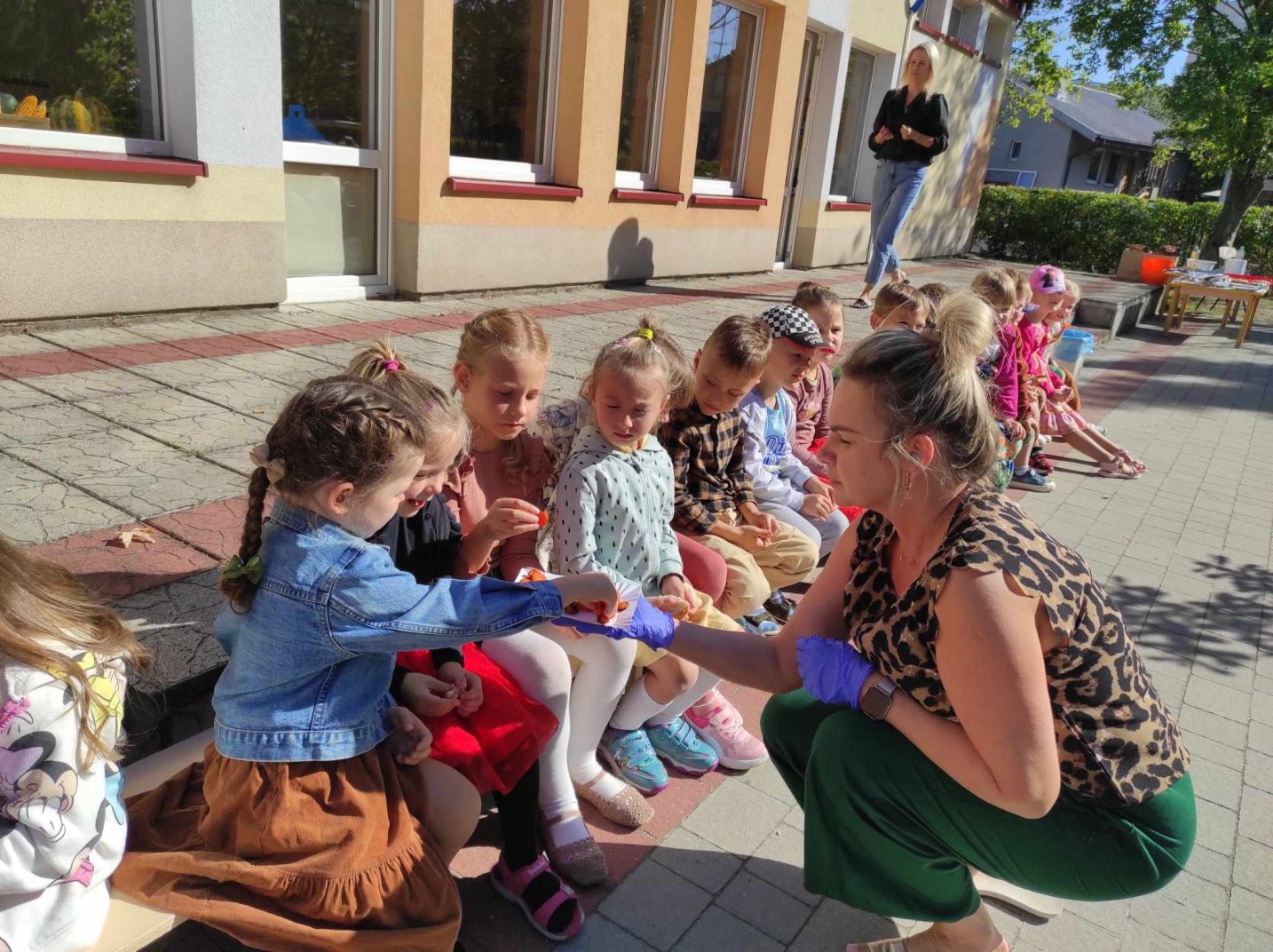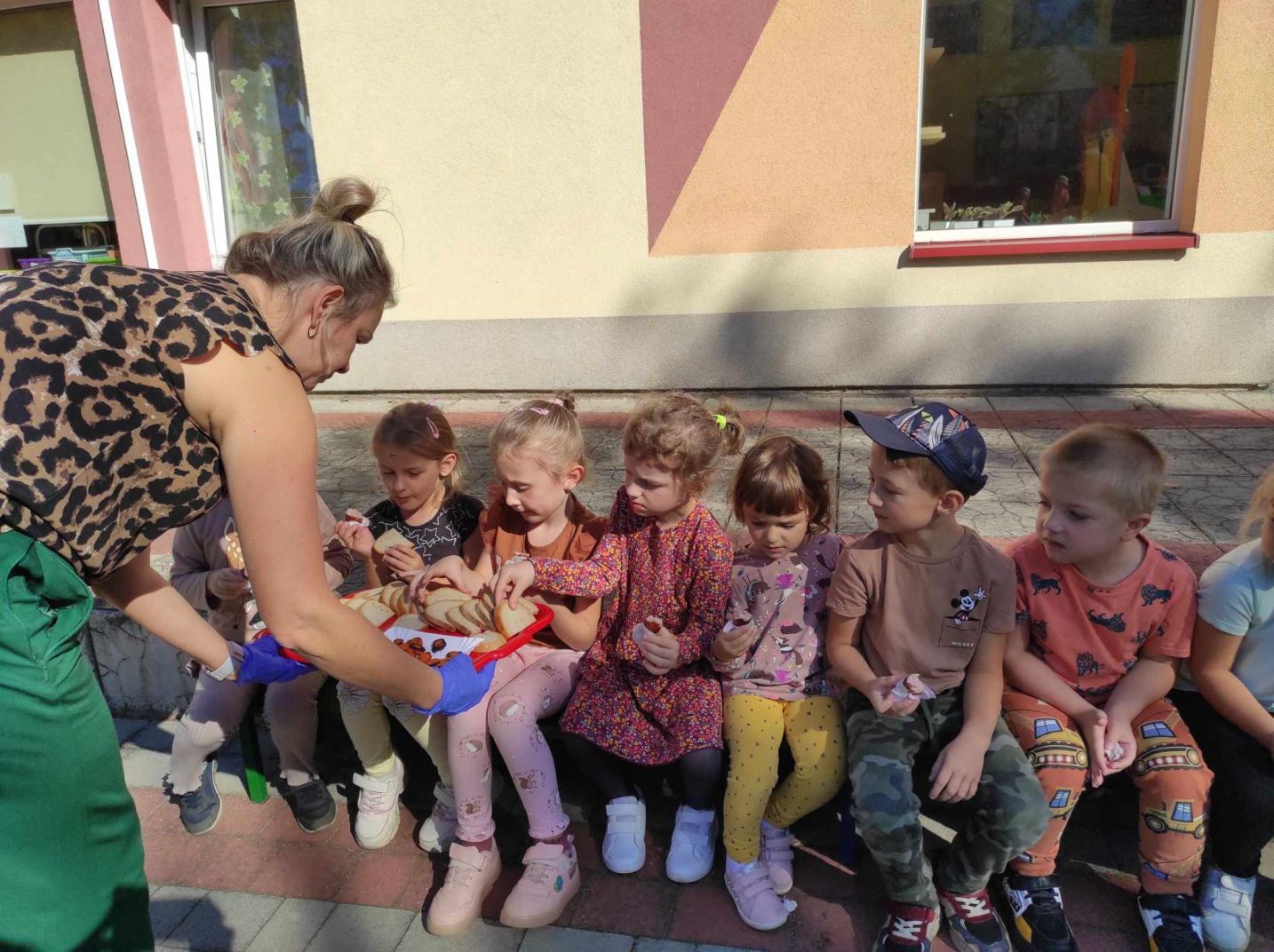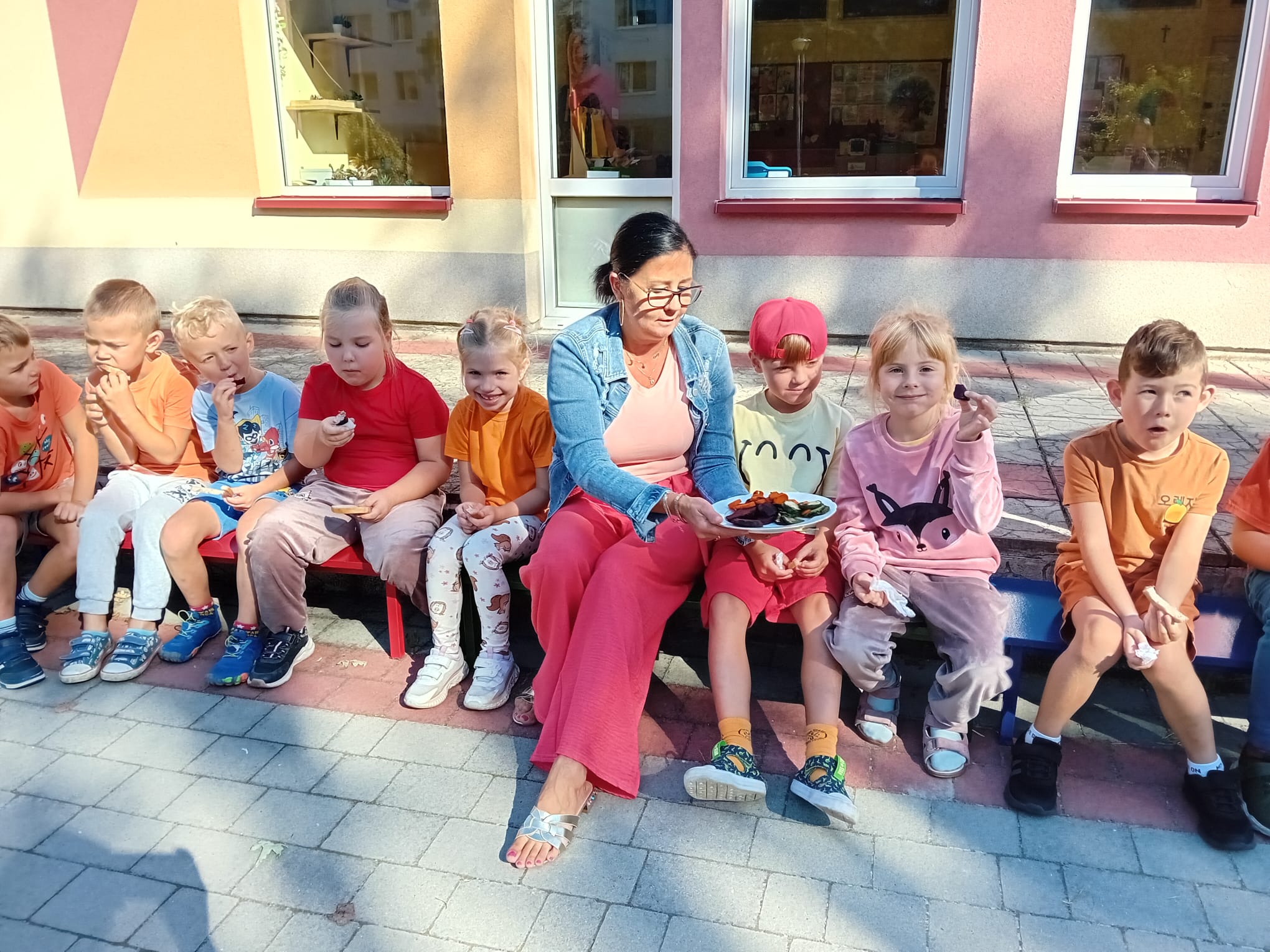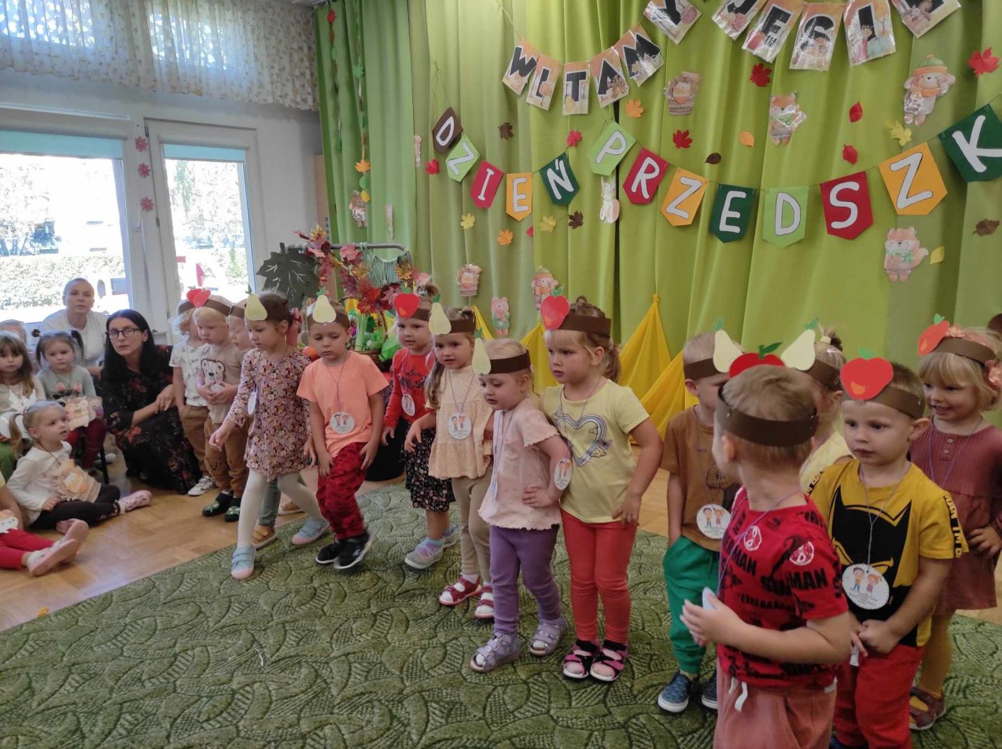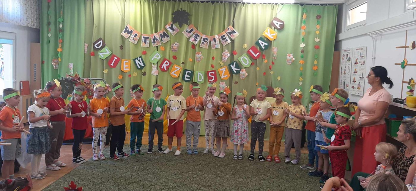 20.09.2024 r. przedszkolaki z naszego przedszkola świętowały Dzień Przedszkolaka i przywitały Panią Jesień. Najpierw wszystkie grupy obejrzały występ przedszkolaków z grupy „Misie“, następnie każda z grup zaśpiewała piosenkę dla Pani Jesieni. Po występach wszystkie przedszkolaki udały się do przedszkolnego ogrodu, gdzie czekały już grillowane kiełbaski, marchewki, cukinie, buraki. Po tej pysznej przekąsce przedszkolaki ruszyły do tańca i zabawy. To był bardzo radosny dzień!