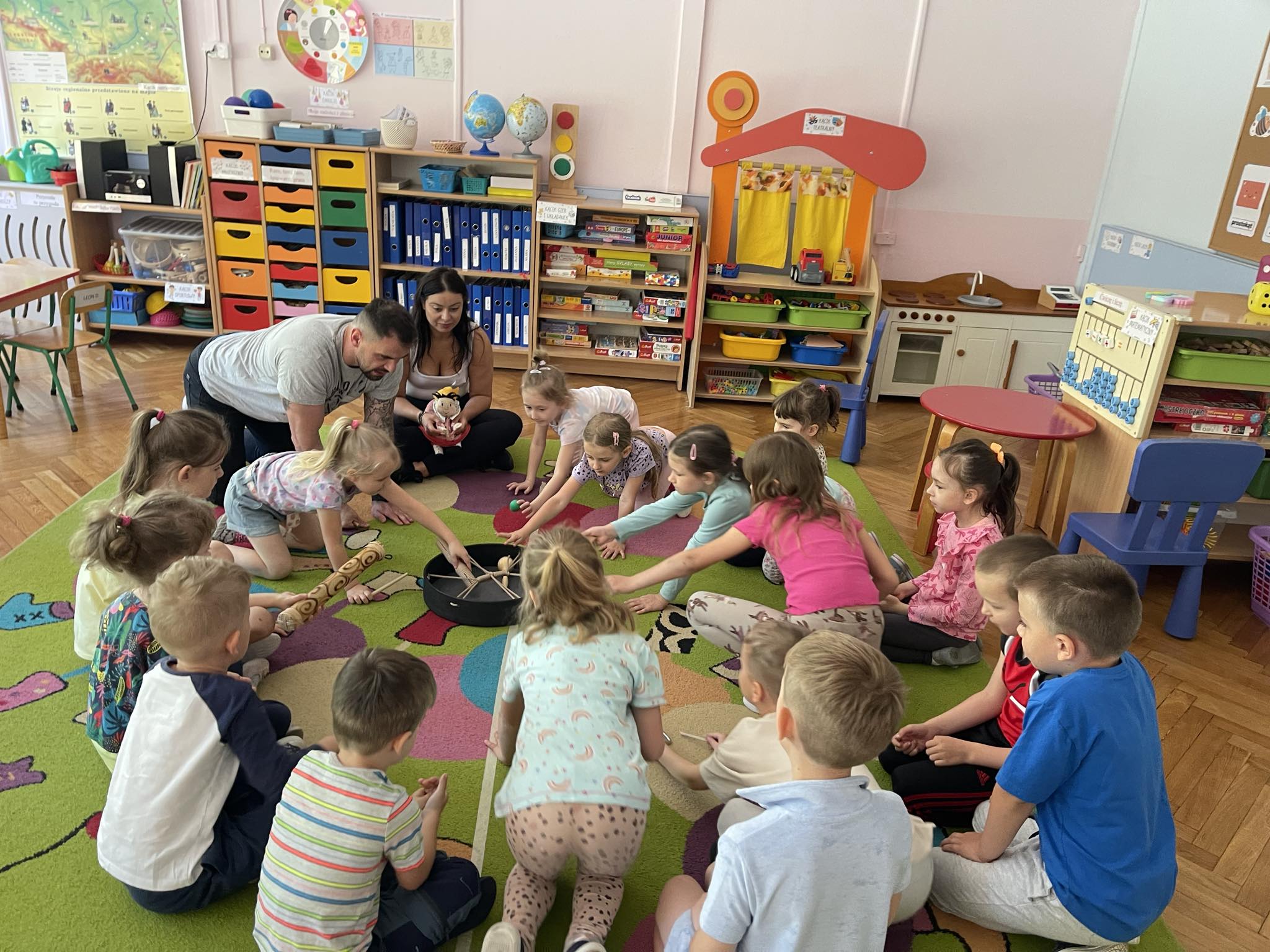 Podczas zajęć wykorzystywane są instrumenty intuicyjne czyli bębny, kalimby, tingsze, gongi, kubki burzowe, które wspierają proces autoekspresji dzieci, a także daje poczucie sprawstwa. Poprzez aktywne uczestnictwo w historii bohaterów warsztatów dzieci uczą się jak komunikować się zgodnie z duchem Porozumienia bez Przemocy, czekać na swoją kolej, radzić sobie z trudnymi emocjami tj. złość, strach, smutek oraz konstruktywnie pomagać rówieśnikom przeżywać trudne emocje.
