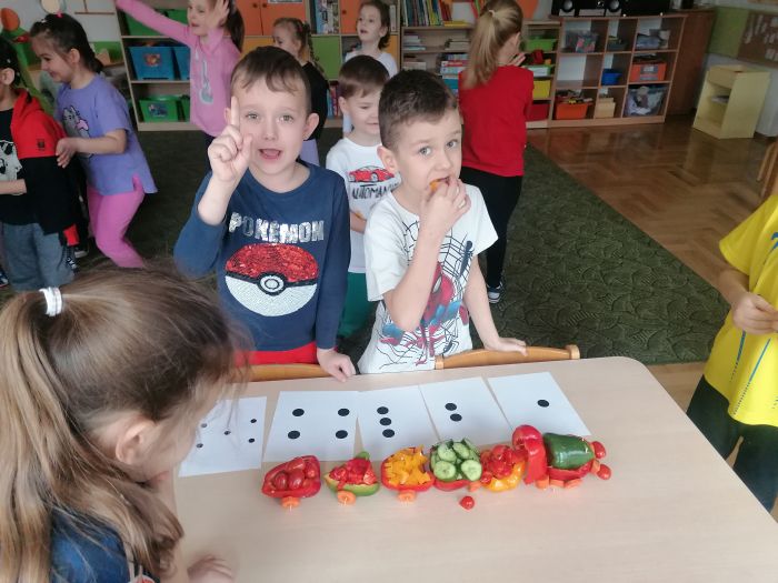 Realizując projekt pt. „Witaminki“ dzieci w grupie „Zajączki” poznały kolejne warzywo jakim jest papryka. Poznały ciekawostki na temat tego warzywa, zapoznały się z jego wyglądem oraz dowiedziały się jakie ma właściwości i wartości odżywcze. Wykonały witaminowo - paprykową lokomotywę, wykonały prace plastyczną i bawiły się w różne zabawy dydaktyczne i ruchowe których głównym bohaterem była papryka.