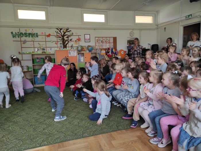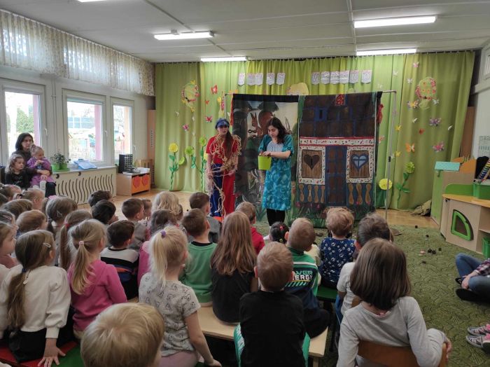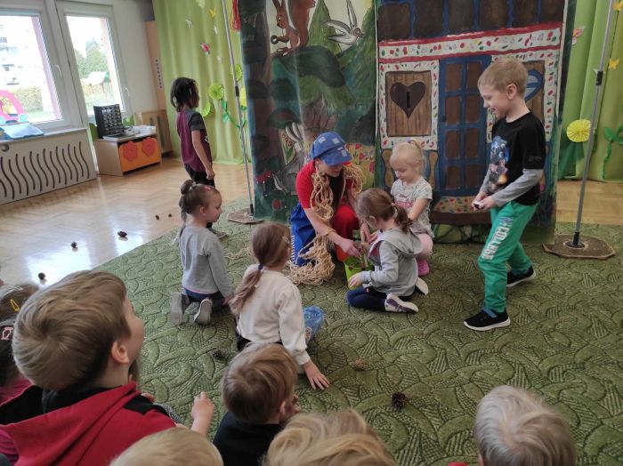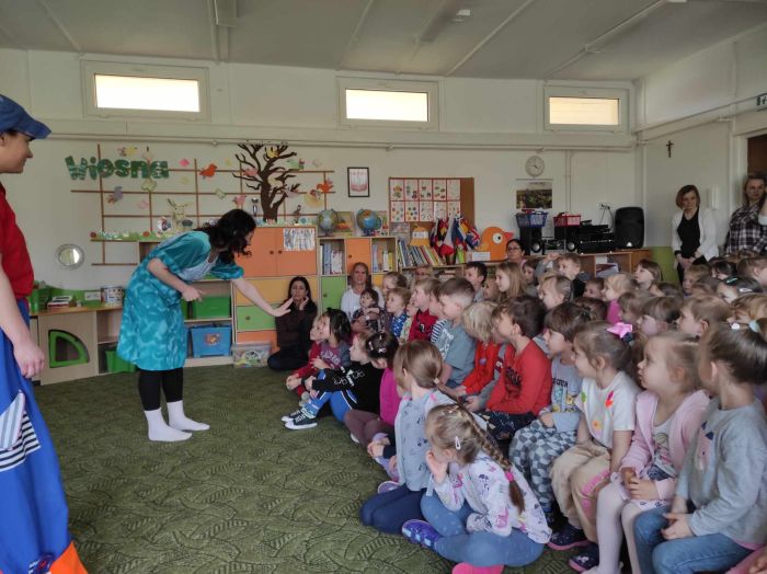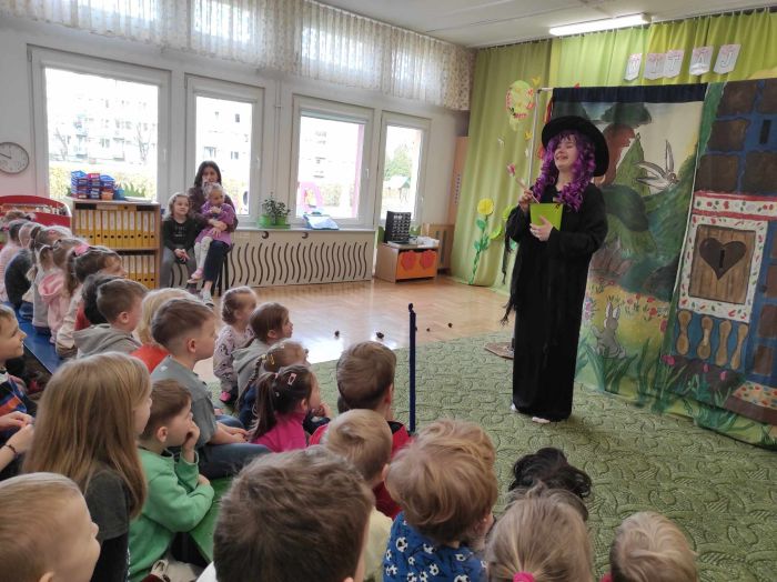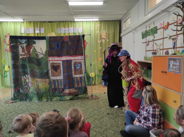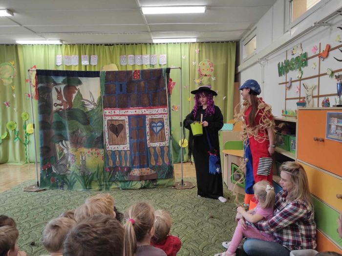 W dniu 27.03.2024 Przedszkole odwiedzili artyści ze studia Teatralnego Krak –Art z Krakowa. Dzieci obejrzały spektakl pod tytułem „Łakocie dla Jasia i Małgosi”. Zachwytom i radości nie było końca. Na przykładzie Jasia i Małgosi oraz kuszącego domku ze słodkich pierników dzieci dowiedziały się jak ważne jest zdrowe odżywianie a słodycze należy spożywać z umiarem.