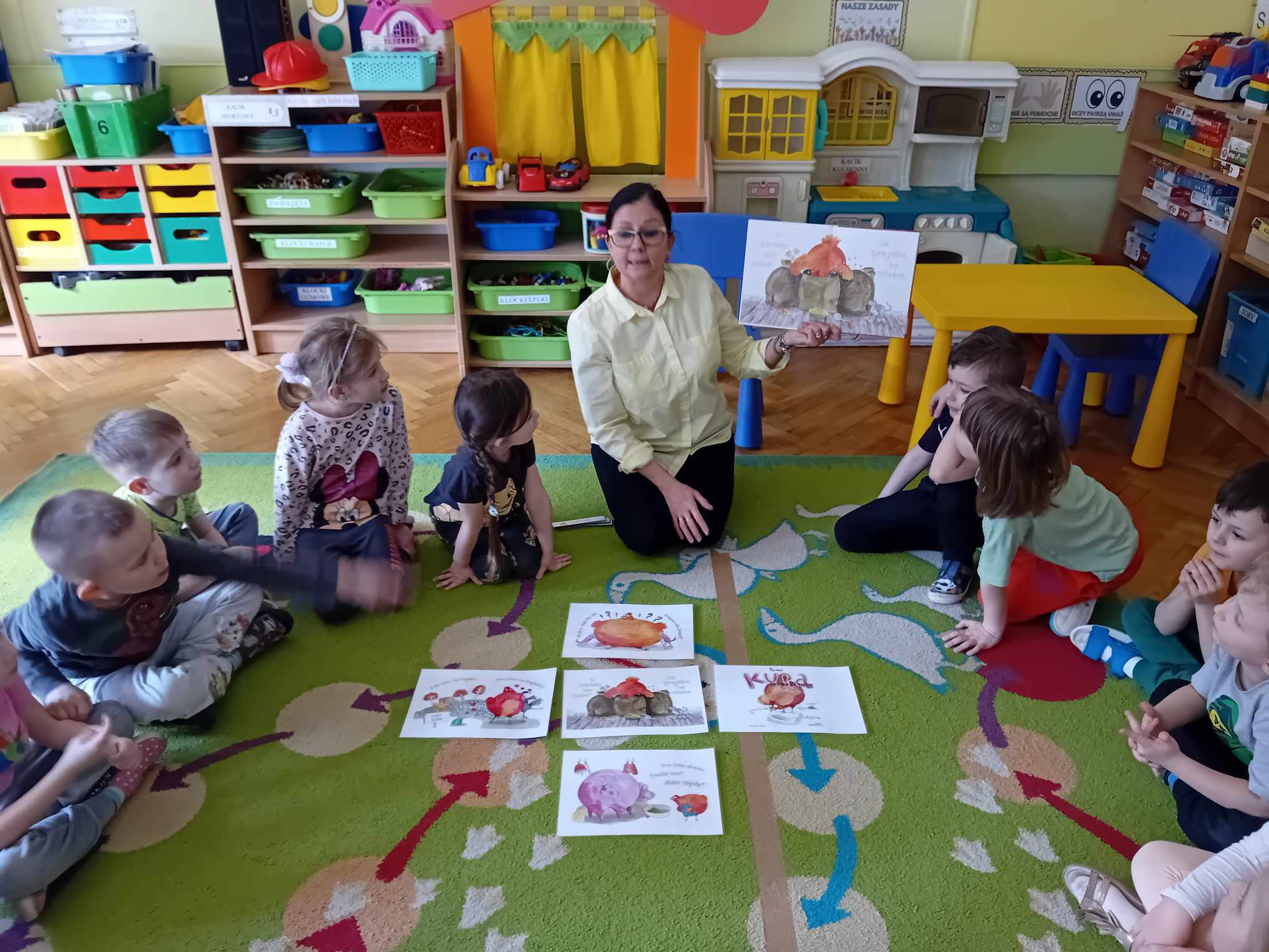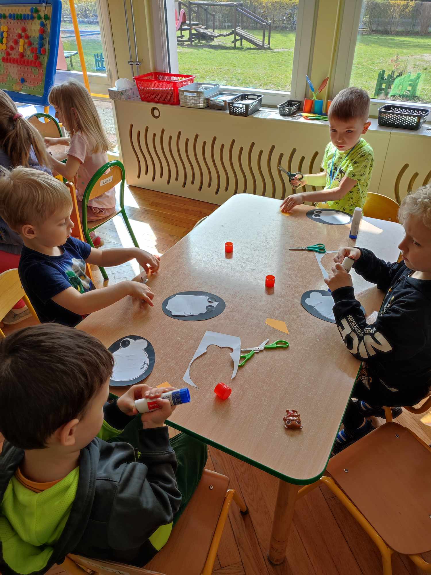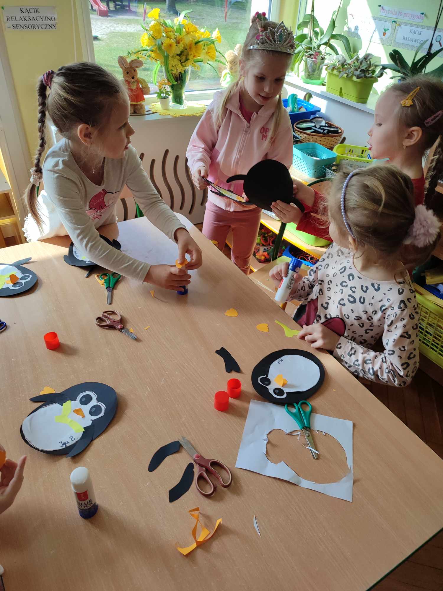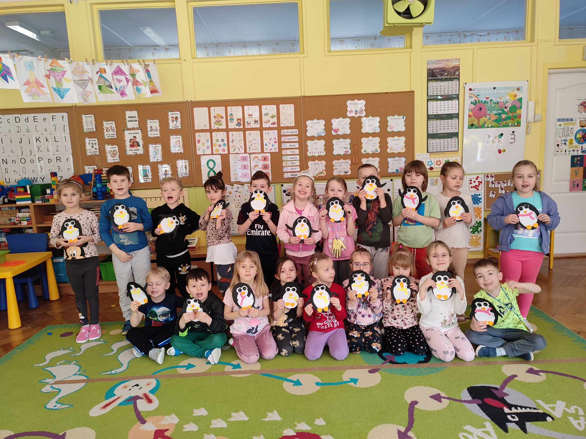 Dzieci z grupy ,,Biedronki” zrealizowały zadania z VI modułu w ramach Międzynarodowego Projektu Czytelniczego ,,Magiczna moc bajek”. Wzięły udział w pogadance na temat ,,Nie czyń drugiemu, co tobie niemiłe”. Rozmawiały o emocjach miłych i tych mniej przyjaznych propagując postawy odpowiedzialności cywilnej, odwagi i pewności siebie. Wyjaśniliśmy sobie znaczenie słowa ,,życzliwy”, wspólnie wykonaliśmy ,,Drzewko życzliwości” z życzliwymi pozdrowieniami i życzeniami. Podczas obchodów Pierwszego Dnia Wiosny przedszkolaki w ramach realizacji modułu rozdawały na spacerze przygotowane w przedszkolu ,,Uśmiechnięte buźki” - symbole życzliwości spotkanym mieszkańcom osiedla. Dzieci wzięły także udział w Dniu Kolorowej Skarpetki - akcji ,,Załóż kolorowe skarpetki”- przeprowadzone zostały zajęcia integracyjne z okazji Światowego Zespołu Downa. Rodzice również zostali włączeni do aktywnej i systematycznej współpracy w realizację Projektu pod hasłem ,,Najpiękniej czyta moja mama i mój tata”. Przedszkolaki poznały dobranockę z dawnych lat ,,Mały Pingwin Pik -Pok”, głównego bohatera i jego przygody. Oglądały bajkę na podstawie książki A. Bahdaja ,,Mały Pingwin Pik – Pok”. Wykonały pracę plastyczno – przestrzenną ,,Pingwin” według instrukcji zgodnie z pedagogiką planu daltońskiego. Zapoznały się z książką z serii ,,Ptasia Banda – Kura, co tyła na diecie”. Rozmawiały o ,,Odwadze bycia sobą”, akceptacji własnego wyglądu, własnych wad i niedoskonałości.