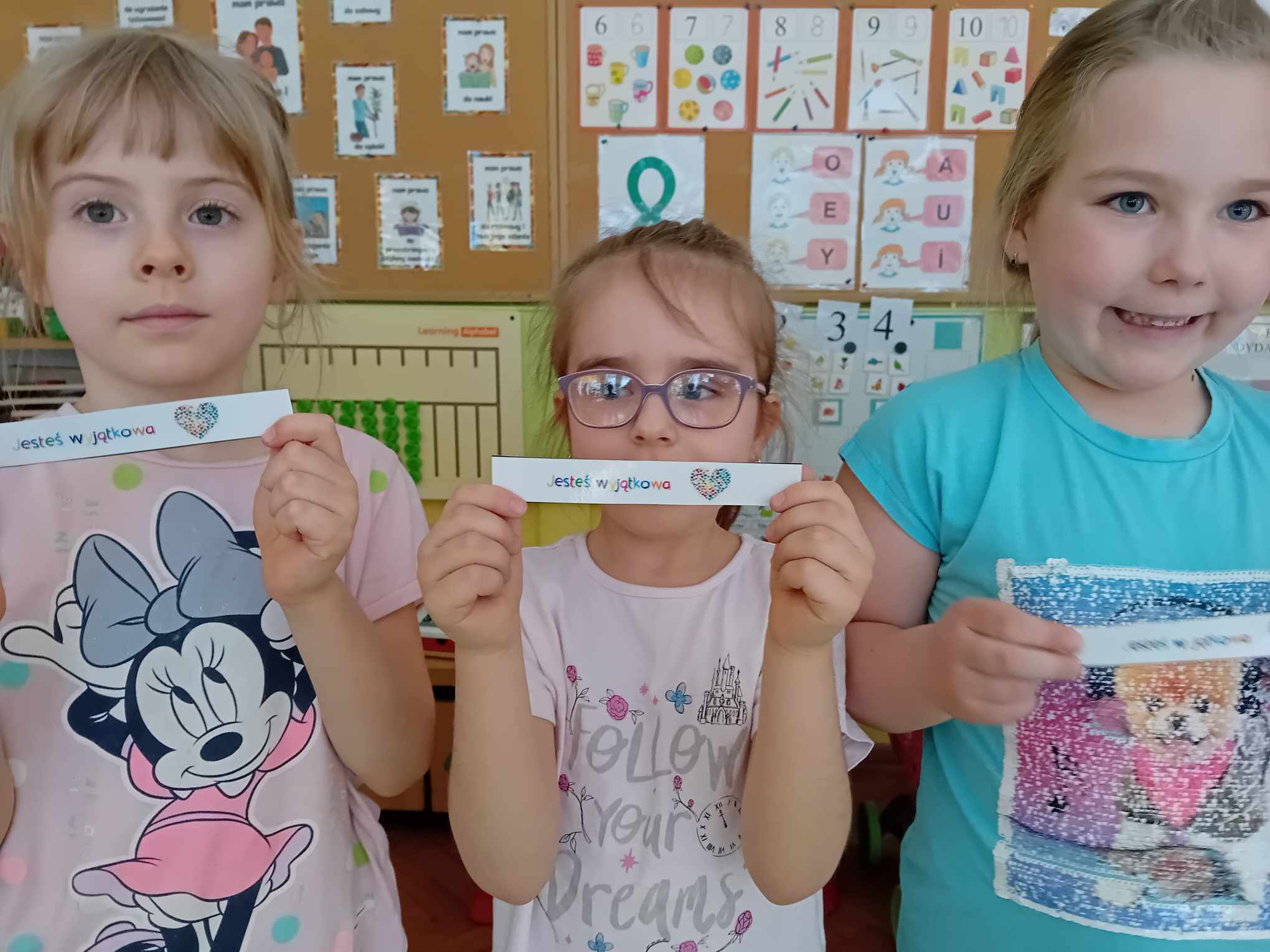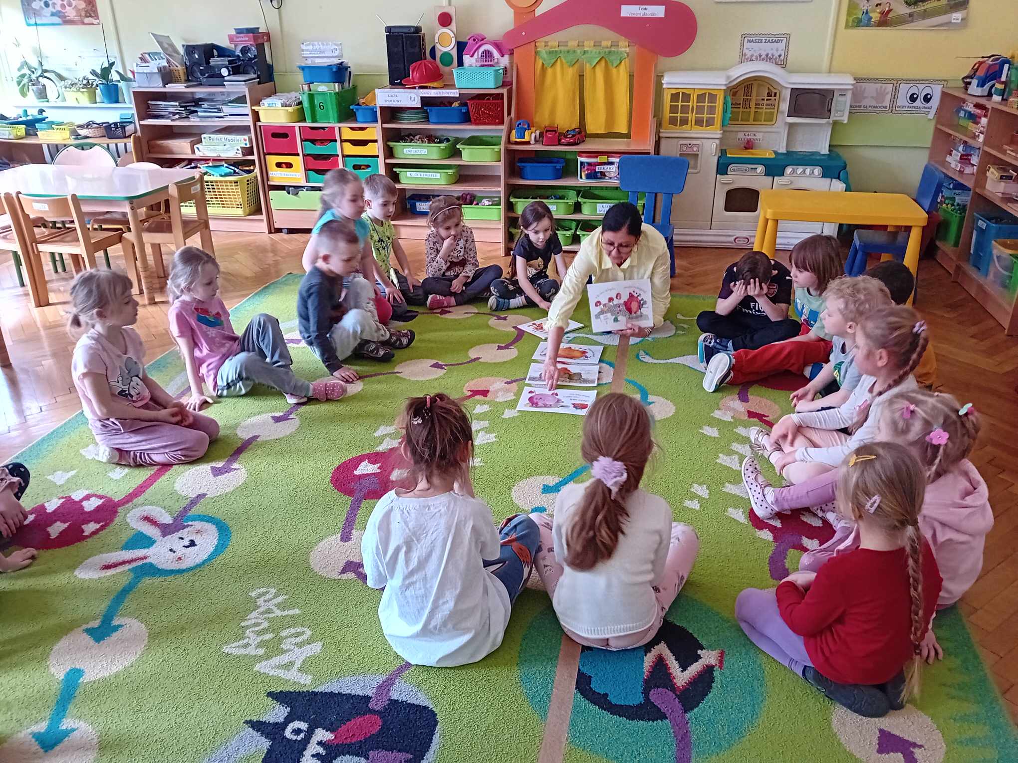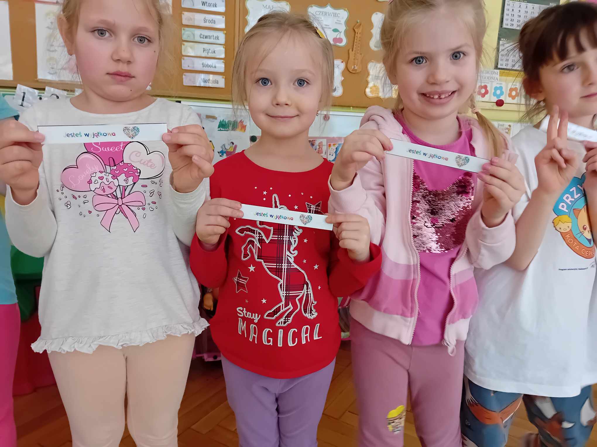 Dzieci z grupy ,,Biedronki” zrealizowały zadania z VI modułu w ramach Międzynarodowego Projektu Czytelniczego ,,Magiczna moc bajek”. Wzięły udział w pogadance na temat ,,Nie czyń drugiemu, co tobie niemiłe”. Rozmawiały o emocjach miłych i tych mniej przyjaznych propagując postawy odpowiedzialności cywilnej, odwagi i pewności siebie. Wyjaśniliśmy sobie znaczenie słowa ,,życzliwy”, wspólnie wykonaliśmy ,,Drzewko życzliwości” z życzliwymi pozdrowieniami i życzeniami. Podczas obchodów Pierwszego Dnia Wiosny przedszkolaki w ramach realizacji modułu rozdawały na spacerze przygotowane w przedszkolu ,,Uśmiechnięte buźki” - symbole życzliwości spotkanym mieszkańcom osiedla. Dzieci wzięły także udział w Dniu Kolorowej Skarpetki - akcji ,,Załóż kolorowe skarpetki”- przeprowadzone zostały zajęcia integracyjne z okazji Światowego Zespołu Downa. Rodzice również zostali włączeni do aktywnej i systematycznej współpracy w realizację Projektu pod hasłem ,,Najpiękniej czyta moja mama i mój tata”. Przedszkolaki poznały dobranockę z dawnych lat ,,Mały Pingwin Pik -Pok”, głównego bohatera i jego przygody. Oglądały bajkę na podstawie książki A. Bahdaja ,,Mały Pingwin Pik – Pok”. Wykonały pracę plastyczno – przestrzenną ,,Pingwin” według instrukcji zgodnie z pedagogiką planu daltońskiego. Zapoznały się z książką z serii ,,Ptasia Banda – Kura, co tyła na diecie”. Rozmawiały o ,,Odwadze bycia sobą”, akceptacji własnego wyglądu, własnych wad i niedoskonałości.