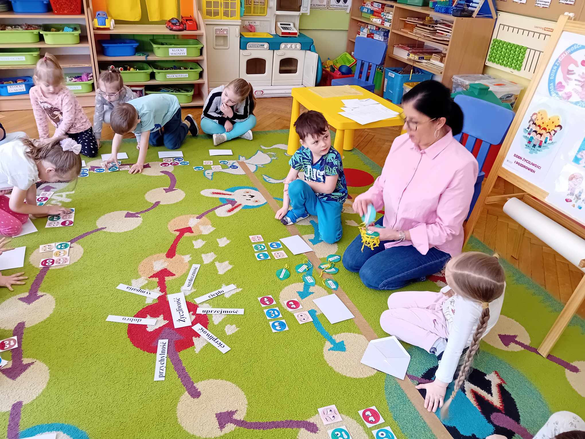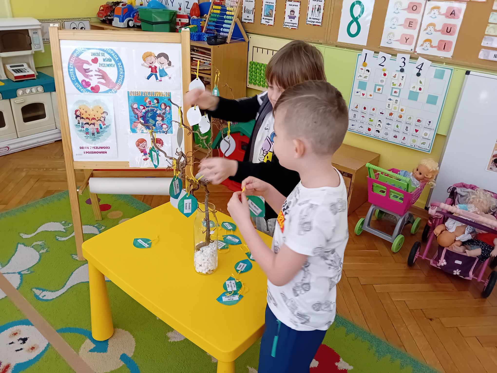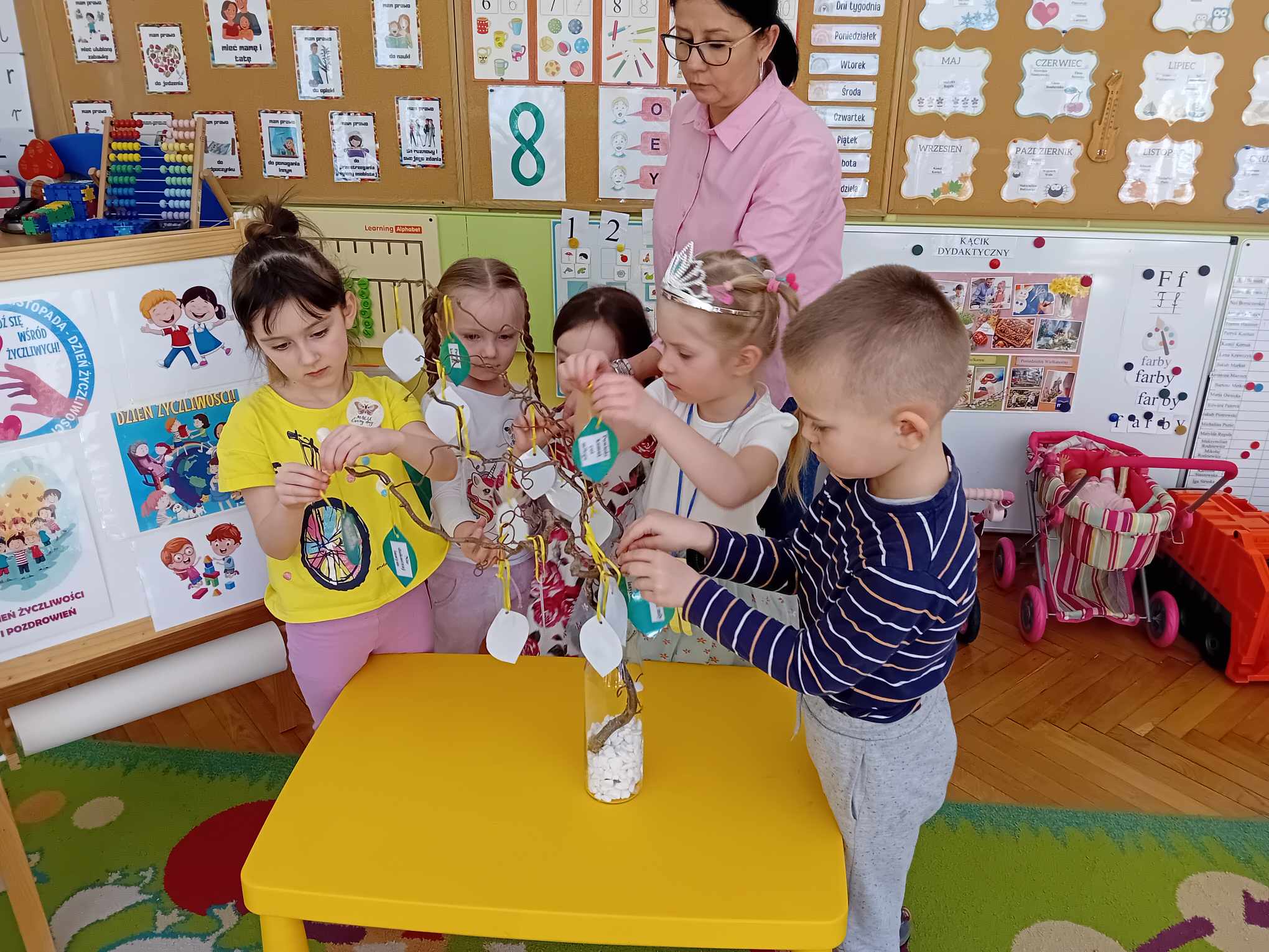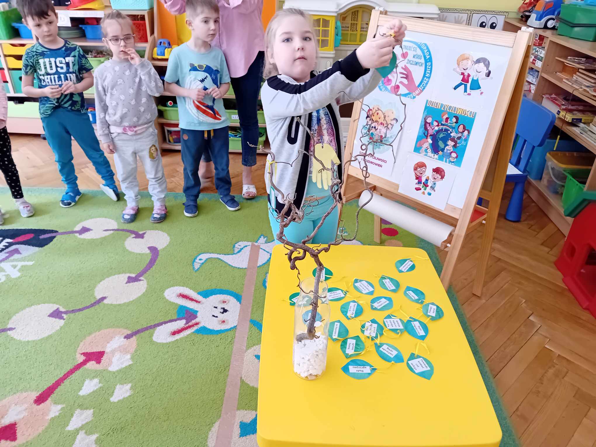 Dzieci z grupy ,,Biedronki” zrealizowały zadania z VI modułu w ramach Międzynarodowego Projektu Czytelniczego ,,Magiczna moc bajek”. Wzięły udział w pogadance na temat ,,Nie czyń drugiemu, co tobie niemiłe”. Rozmawiały o emocjach miłych i tych mniej przyjaznych propagując postawy odpowiedzialności cywilnej, odwagi i pewności siebie. Wyjaśniliśmy sobie znaczenie słowa ,,życzliwy”, wspólnie wykonaliśmy ,,Drzewko życzliwości” z życzliwymi pozdrowieniami i życzeniami. Podczas obchodów Pierwszego Dnia Wiosny przedszkolaki w ramach realizacji modułu rozdawały na spacerze przygotowane w przedszkolu ,,Uśmiechnięte buźki” - symbole życzliwości spotkanym mieszkańcom osiedla. Dzieci wzięły także udział w Dniu Kolorowej Skarpetki - akcji ,,Załóż kolorowe skarpetki”- przeprowadzone zostały zajęcia integracyjne z okazji Światowego Zespołu Downa. Rodzice również zostali włączeni do aktywnej i systematycznej współpracy w realizację Projektu pod hasłem ,,Najpiękniej czyta moja mama i mój tata”. Przedszkolaki poznały dobranockę z dawnych lat ,,Mały Pingwin Pik -Pok”, głównego bohatera i jego przygody. Oglądały bajkę na podstawie książki A. Bahdaja ,,Mały Pingwin Pik – Pok”. Wykonały pracę plastyczno – przestrzenną ,,Pingwin” według instrukcji zgodnie z pedagogiką planu daltońskiego. Zapoznały się z książką z serii ,,Ptasia Banda – Kura, co tyła na diecie”. Rozmawiały o ,,Odwadze bycia sobą”, akceptacji własnego wyglądu, własnych wad i niedoskonałości.
