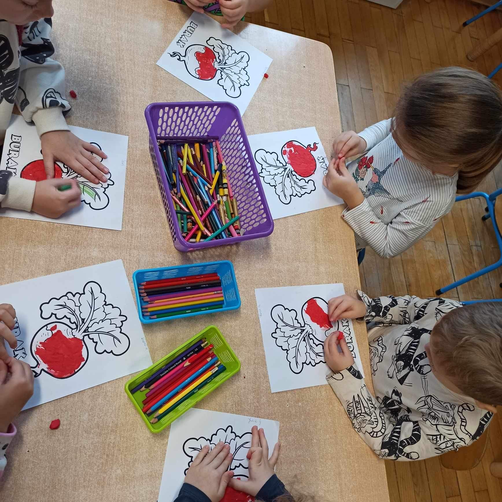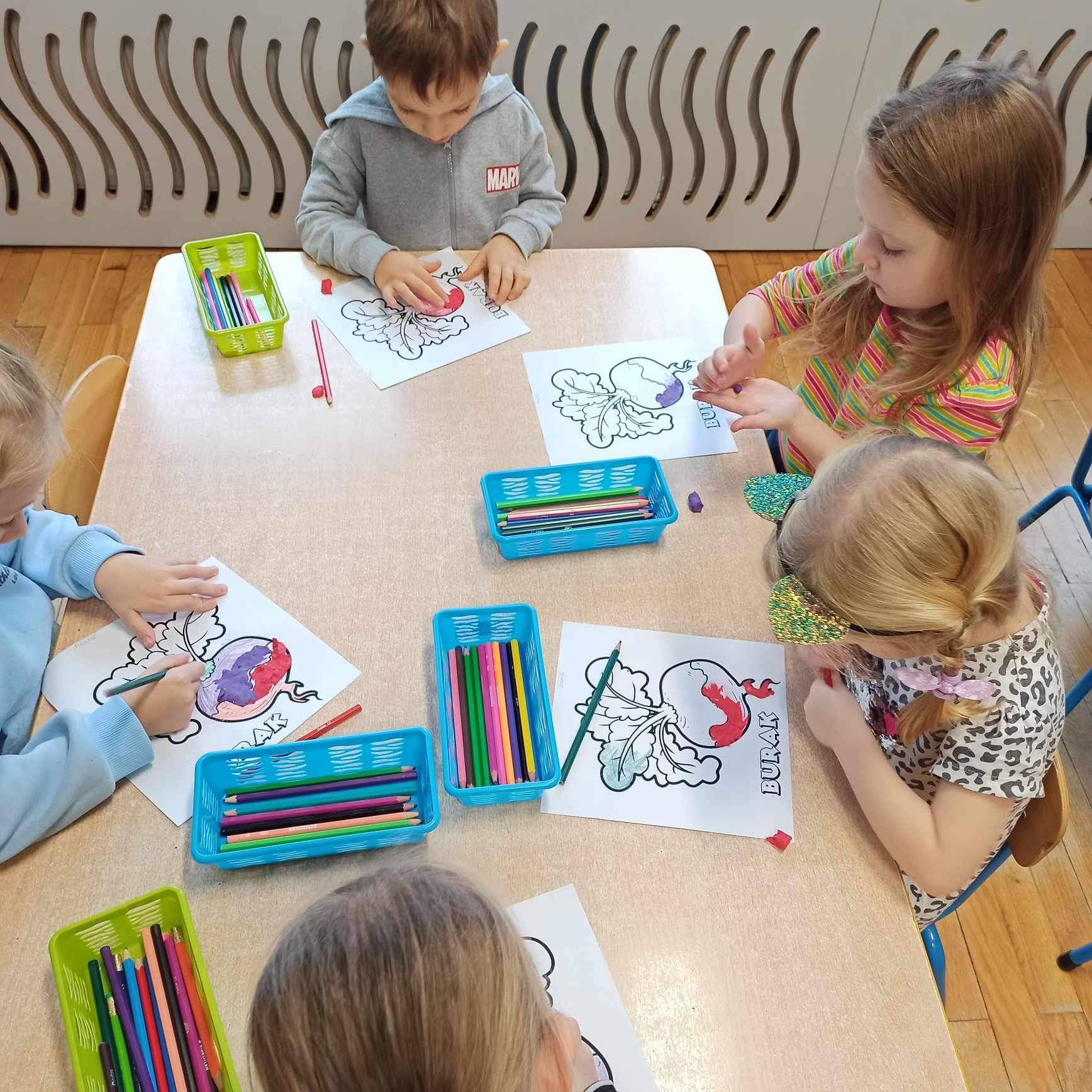 Realizując projekt pt. „Witaminki“ dzieci poznały kolejne warzywo jakim jest burak. Poznały ciekawostki na temat tego warzywa, zapoznały się z jego wyglądem oraz dowiedziały się jakie ma właściwości i wartości odżywcze. Przedszkolaki bawiły się również do tematycznej piosenki i wykonały prace plastyczne.