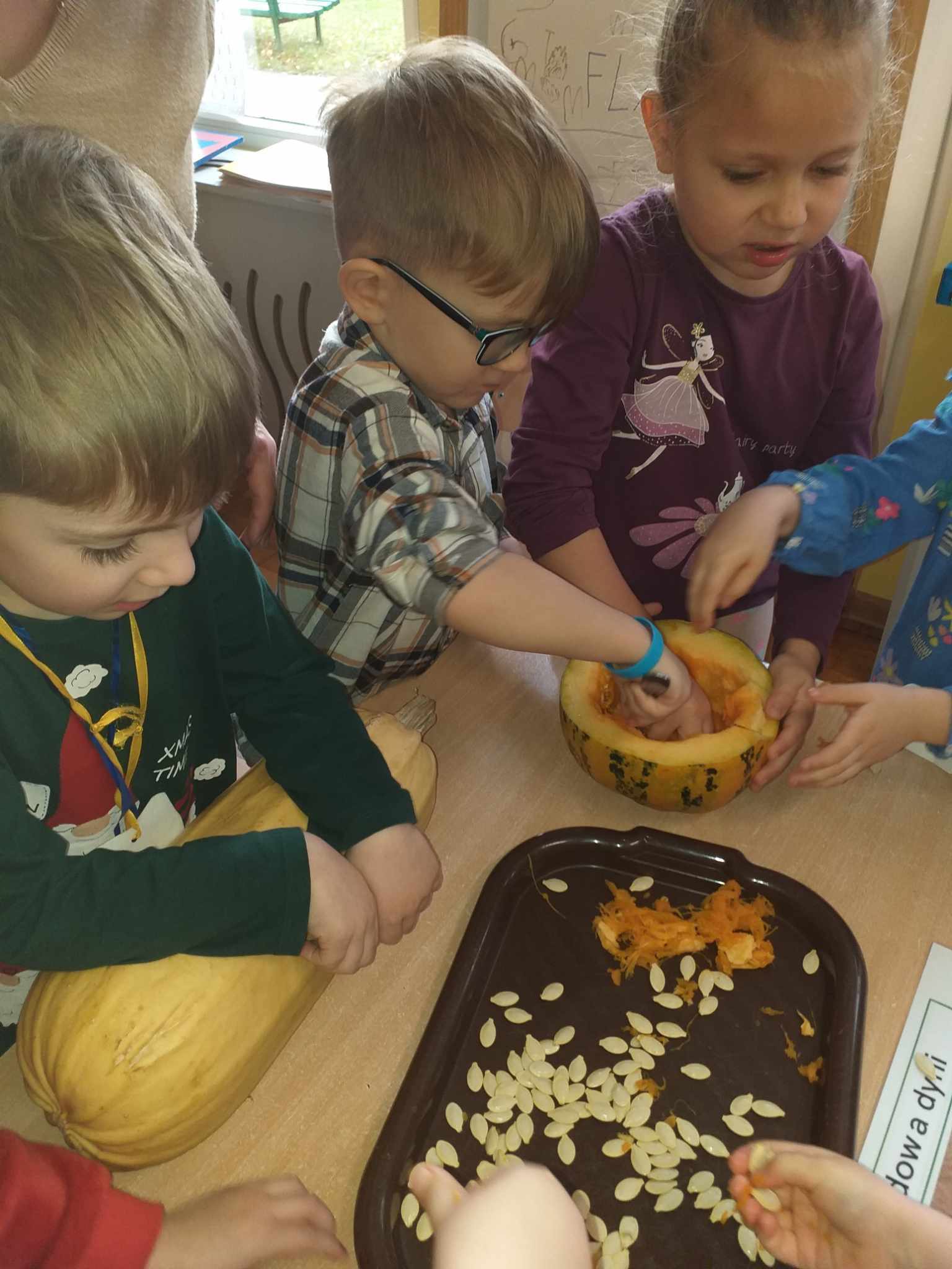Przedszkolaki meldują wykonanie dyniowego wyzwania w związku z realizacją Projektu Edukacyjnego pt. „Witaminki“. Dzieci miały okazję poznać różne odmiany dyń, dowiedzieć się jak rośnie dynia i jakie są jej korzyści dla zdrowia. Następnie przeliczały i klasyfikowały dynie według wielkości, koloru, kształtu. Dynia zainspirowała nas również do przeprowadzenia eksperymentów i doświadczeń, które były bardzo interesujące i ekscytujące. Nie zabrakło również zabaw ruchowych oraz wykonania prac plastycznych związanych z dynią. #witaminki