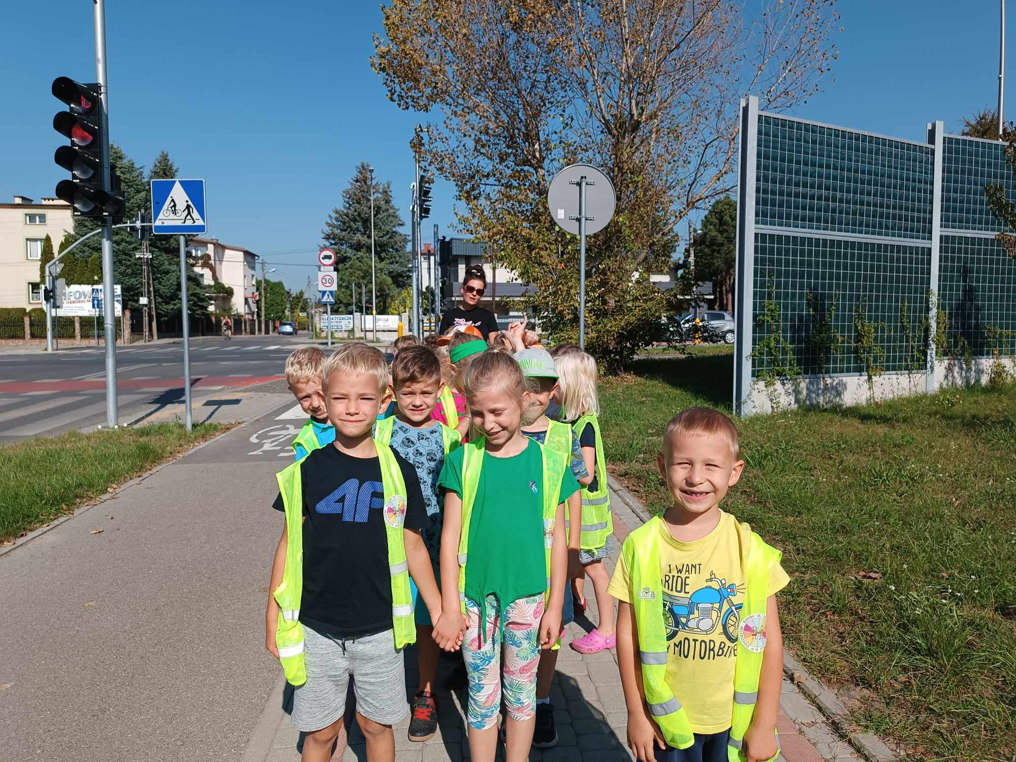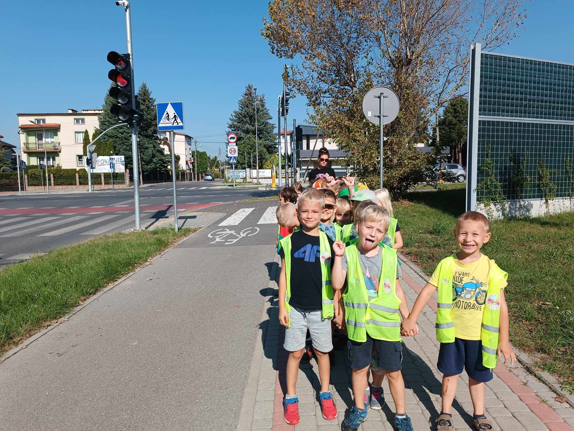 Bezpieczeństwo na drodze, to bardzo istotna kwestia, więc przedszkolaki z grupy „Zajączki” po omówieniu wszystkich zasad wybrały się na spacer na pobliskie skrzyżowanie. Znając i stosując zasady wszystkie dzieci przeszły przez skrzyżowanie z sygnalizacją świetlną. Sprawnie przedostały się na drugą stronę ulicy z wykorzystaniem przejścia dla pieszych. Podczas spaceru miały okazję omówić napotkane znaki drogowe. Po takiej „lekcji“ z pewnością wiedzą, jak bezpiecznie przechodzić przez ulicę i stosować się do znaków drogowych.