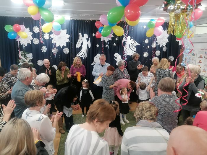 Celem spotkania było sprawienie obopólnej radości z niespodzianki dla Babci i Dziadka w dniu ich święta.