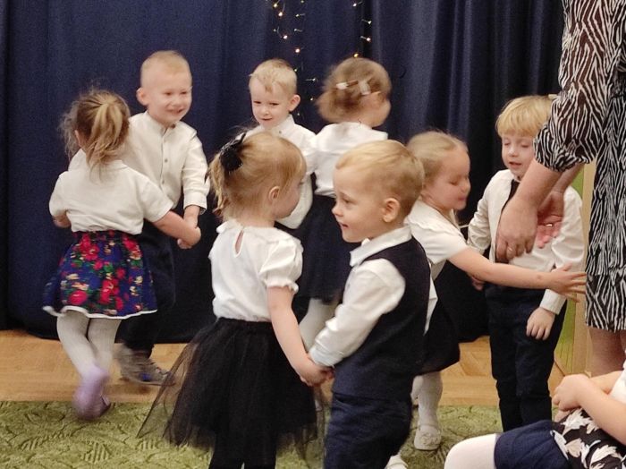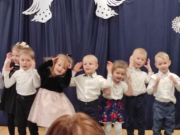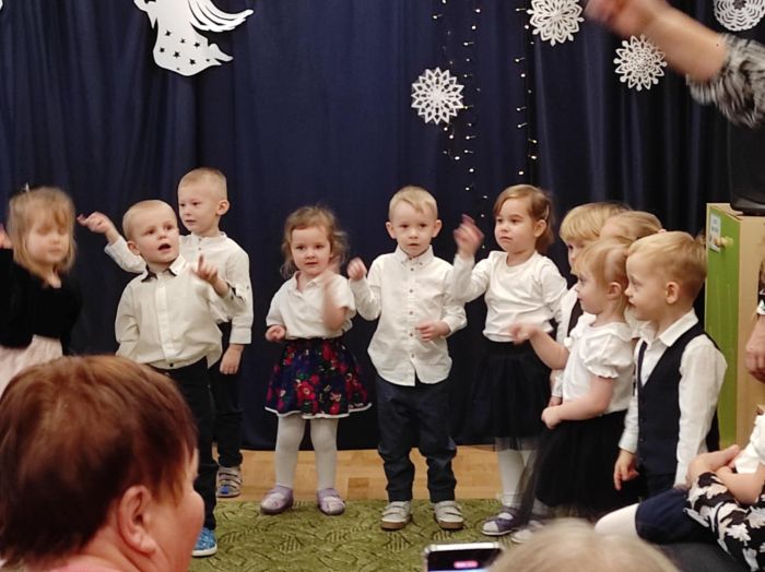W pierwszej części zaśpiewały piosenki: „Babcia i Dziadek" i „Babciu, droga babciu” , zagrały na instrumentach a następnie pięknie recytowały krótkie rymowanki o babci i dziadku. Maluchy zaprezentowały również układ taneczny „Twist dla Babci i Dziadka” oraz wykonały taniec „Rock’N roll dla babci i dziadka”. Ostatnią niespodzianką dla naszych gości była inscenizacja muzyczno - ruchowa do piosenki "Droga babciu, Drogi Dziadku”. Na zakończenie wszystkie przedszkolaki odśpiewały sto lat i złożyły swoim kochanym babciom i dziadkom serdeczne życzenia oraz wręczyły laurki. Były także pamiątkowe zdjęcia. Bardzo dziękujemy Babciom i Dziadkom za to, że odwiedzili nasze przedszkole oraz za to, że mogliśmy chociaż trochę umilić im czas i sprawić radość.
