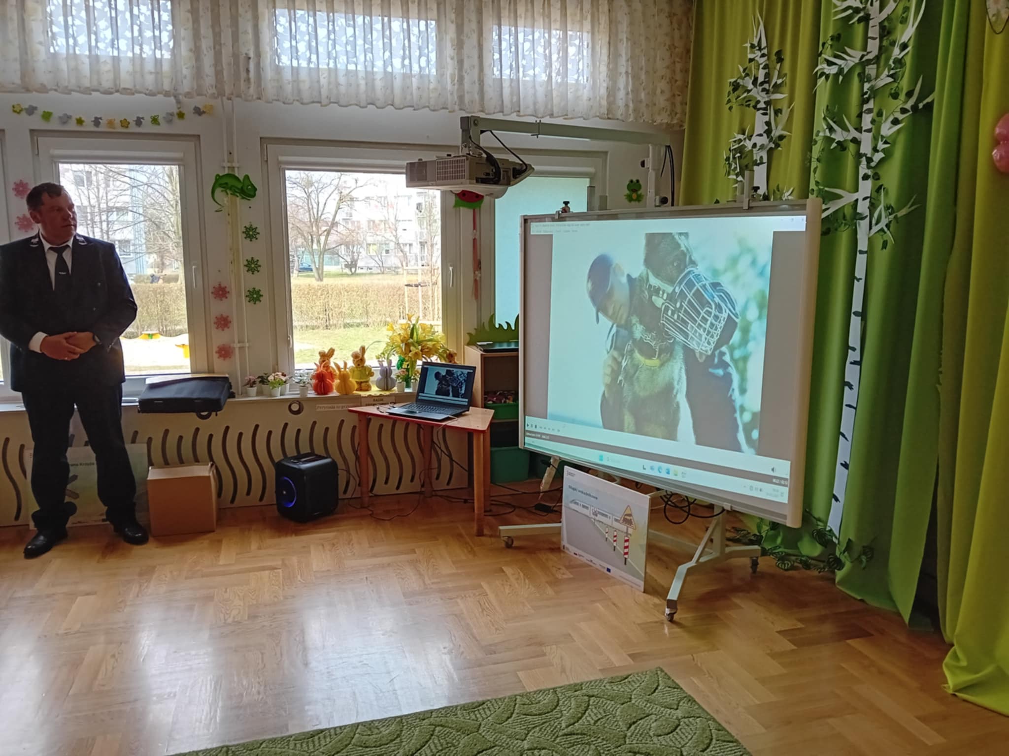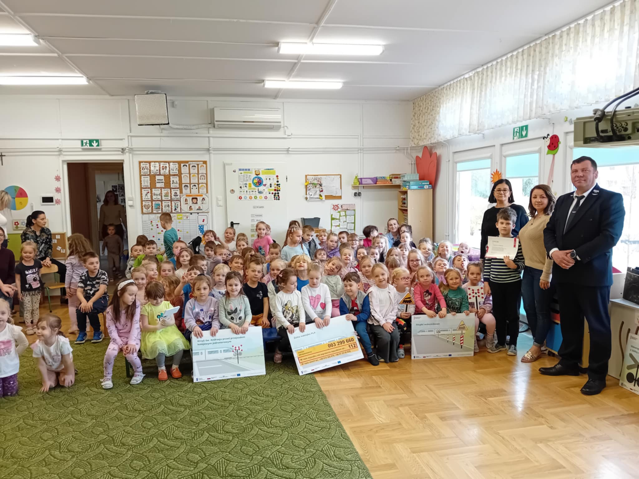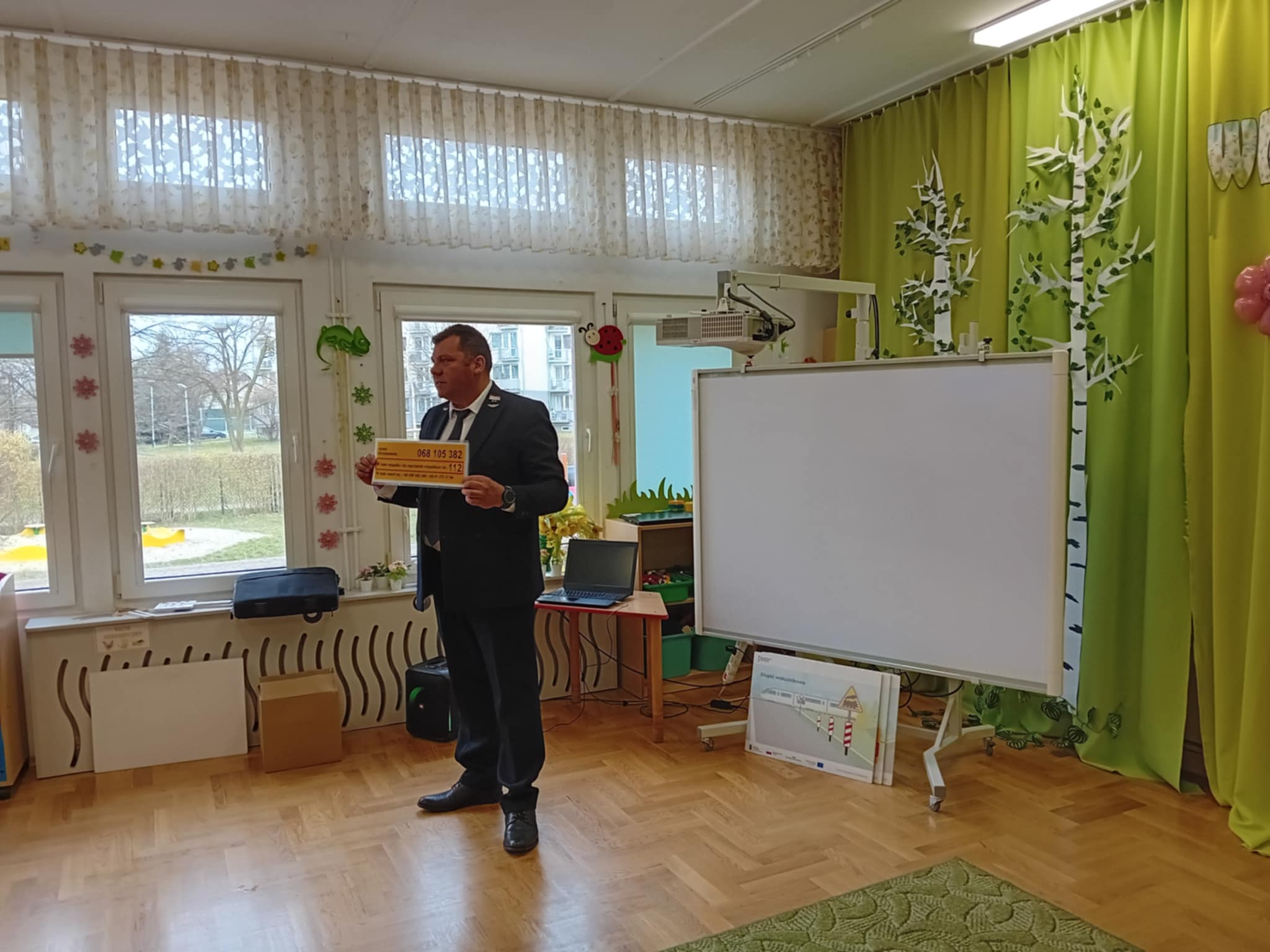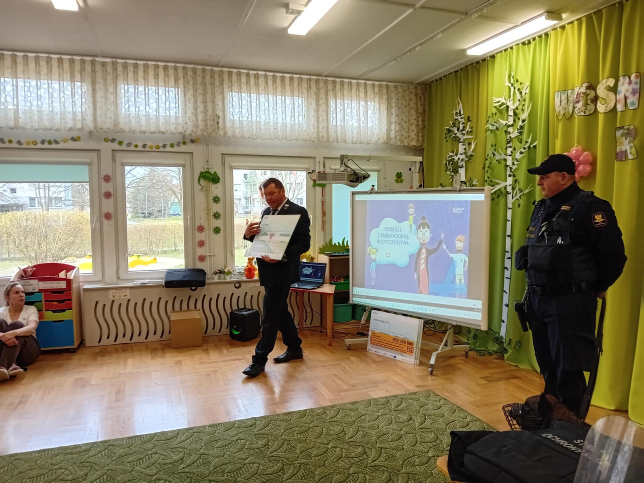 24.03.2025 r. odbyło się spotkanie całej społeczności przedszkolnej z funkcjonariuszami Straży Ochrony Kolei i psem w ramach kampanii społecznej ,,Bezpieczny przejazd” pt. ,,Posłuchaj głosu rozsądku”. Kampania ,,Bezpieczny przejazd” jest realizowana, by powiedzieć ,,Stop” brawurze i łamaniu przepisów na przejazdach i przejściach kolejowych. Pracownicy straży pokazali przedszkolakom swoje umundurowanie i akcesoria niezbędne w swojej pracy. Dzieci poznały znaki, które znajdują się w pobliżu przejazdów kolejowych min.: znaki Stop i Krzyż św. Andrzeja, a także poznały tajniki ,,Żółtej Naklejki”. Podczas spotkania przedszkolaki dowiedziały się, w jaki sposób zachować bezpieczeństwo na przejazdach kolejowych. Dzieci poznały pracę funkcjonariuszy Straży Ochrony Kolei wraz z psem. Ponadto obejrzały filmy edukacyjne na temat zasad bezpiecznego zachowania się w pobliżu torów kolejowych.