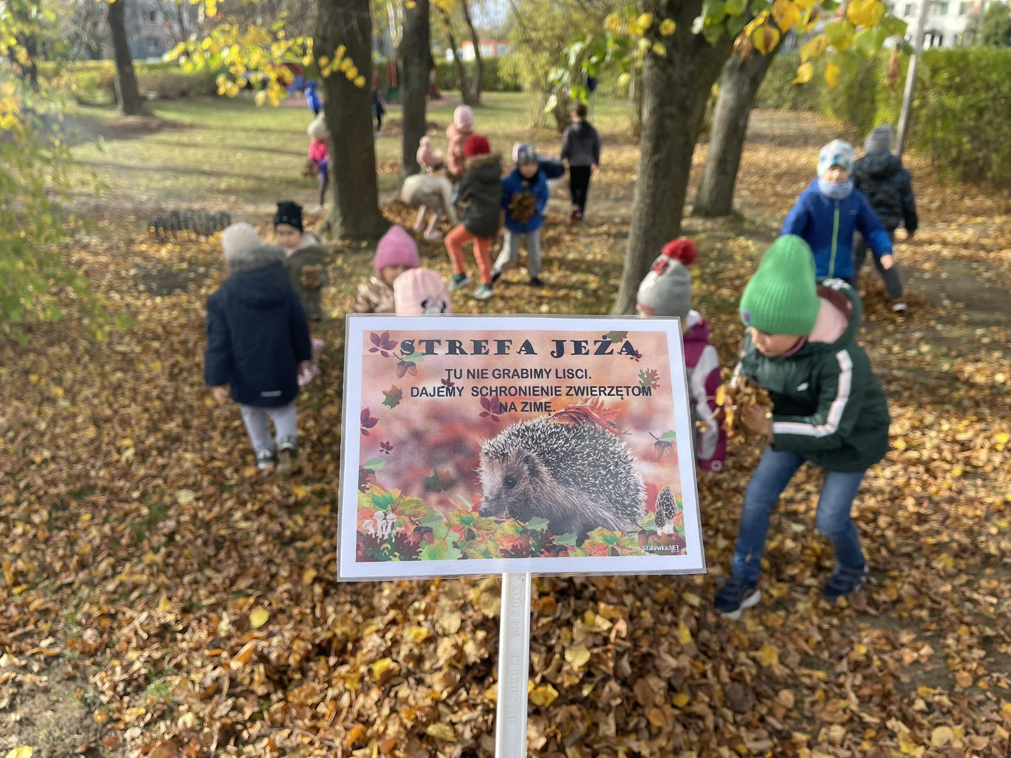 Nasi mali odkrywcy w ogrodzie przedszkolnym stworzyli wspaniałą Strefę Dla Jeża, aby pomóc naszym kolczastym przyjaciołom przetrwać nadchodzącą zimę. Dzieci z pasją zbierały suche liście i gałązki, tworząc przytulne schronienie dla jeża. Teraz, gdy dni stają się krótsze, a temperatury spadają jeże mają miejsce do schronienia i zasłużonego odpoczynku. Dziękujemy naszym małym ochotnikom za ich zaangażowanie w troskę o zwierzęta i za wspaniałe lekcje empatii i opieki nad przyrodą!