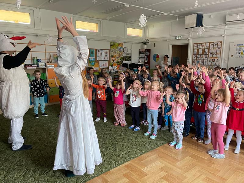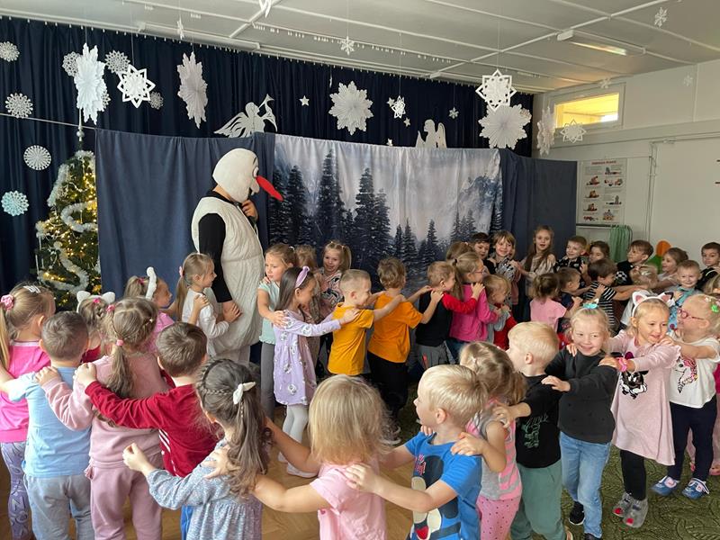 Dnia 17.12.2024r. w przedszkolu odbyło się się przedstawienie teatralne pt. „Świąteczna gorączka Olafa“ w wykonaniu aktorów ze studia Teatralnego Krak-Art w Krakowie. Pełna humoru i wzruszeń opowieść przypomniała nam czym jest prawdziwa magia świąt – miłość, przyjaźń i wspólne chwile. Dzieci były zachwycone, ponieważ mogły brać czynny udział w przedstawieniu.