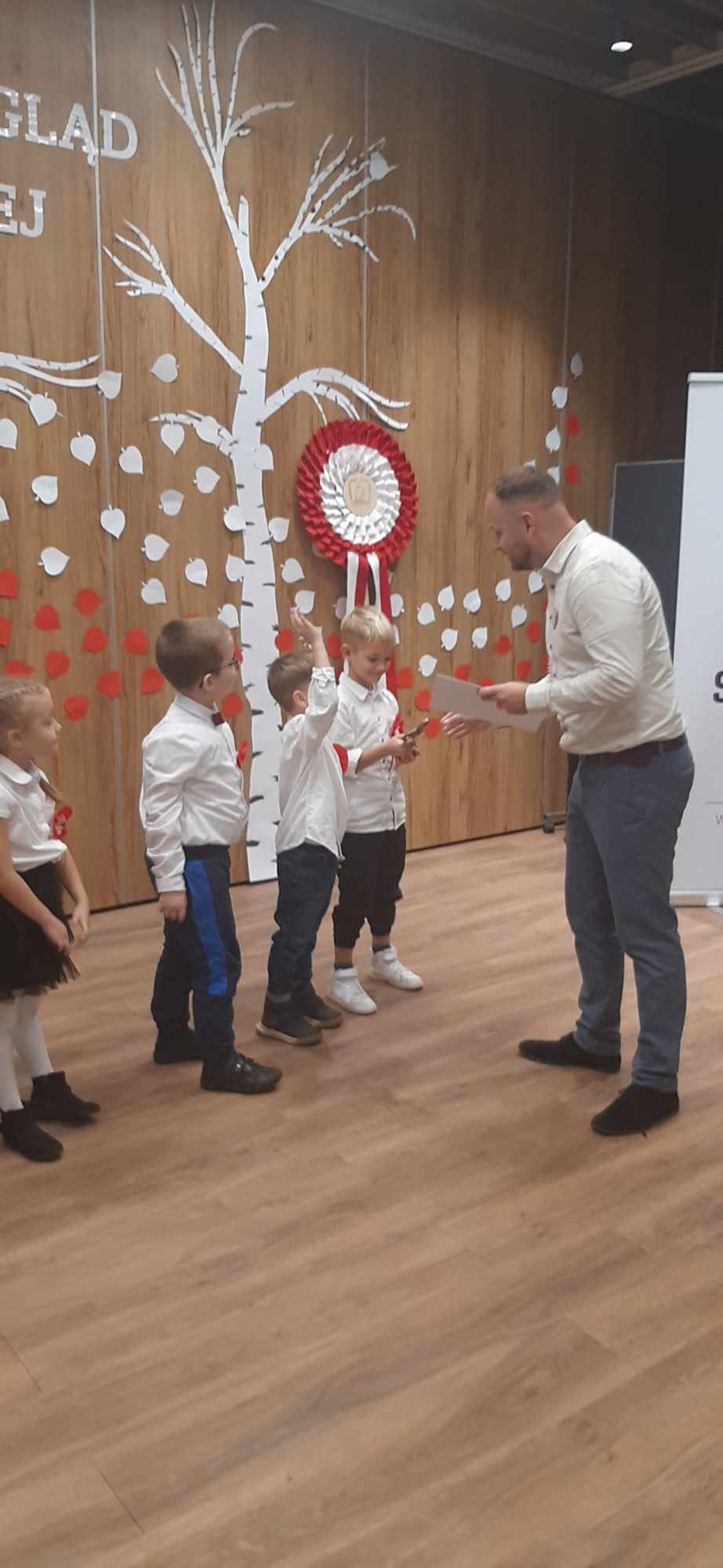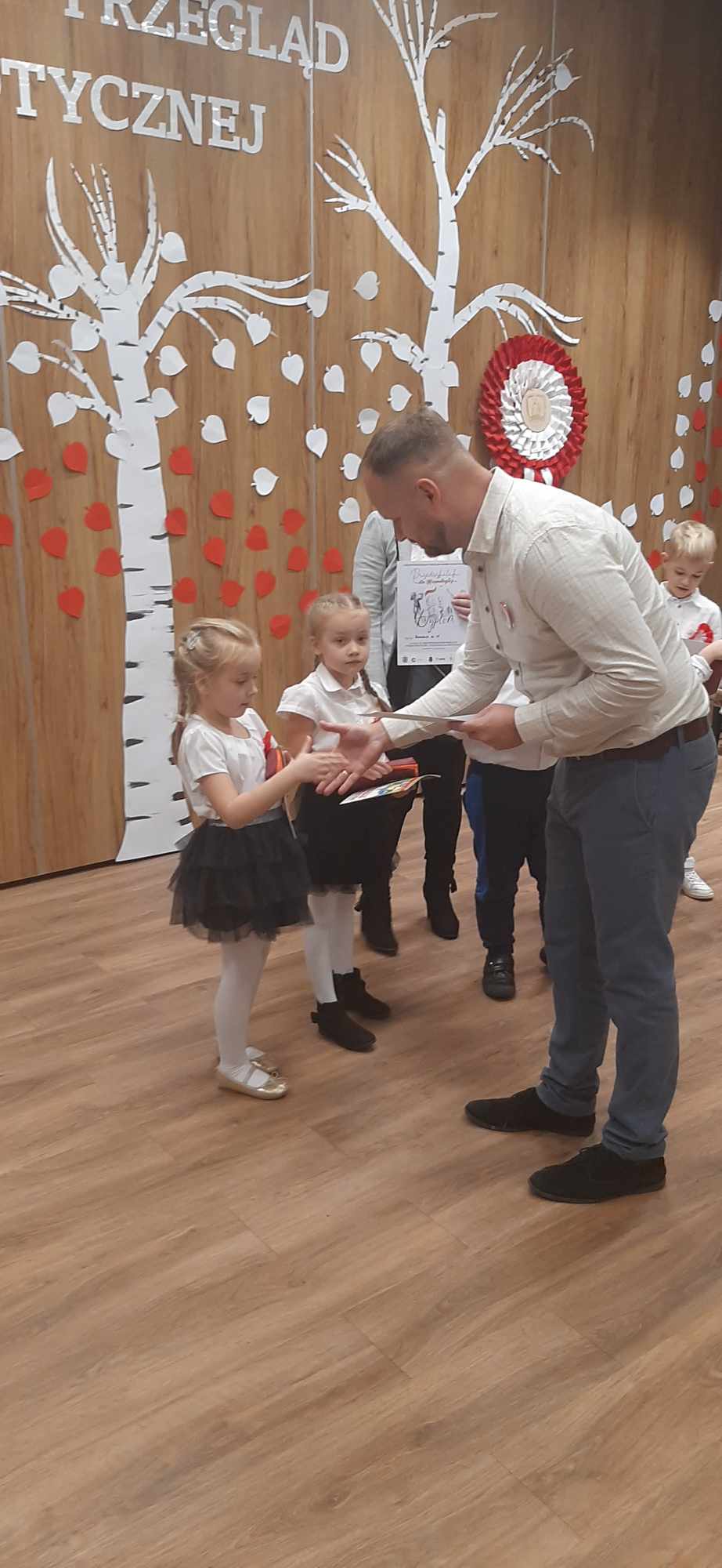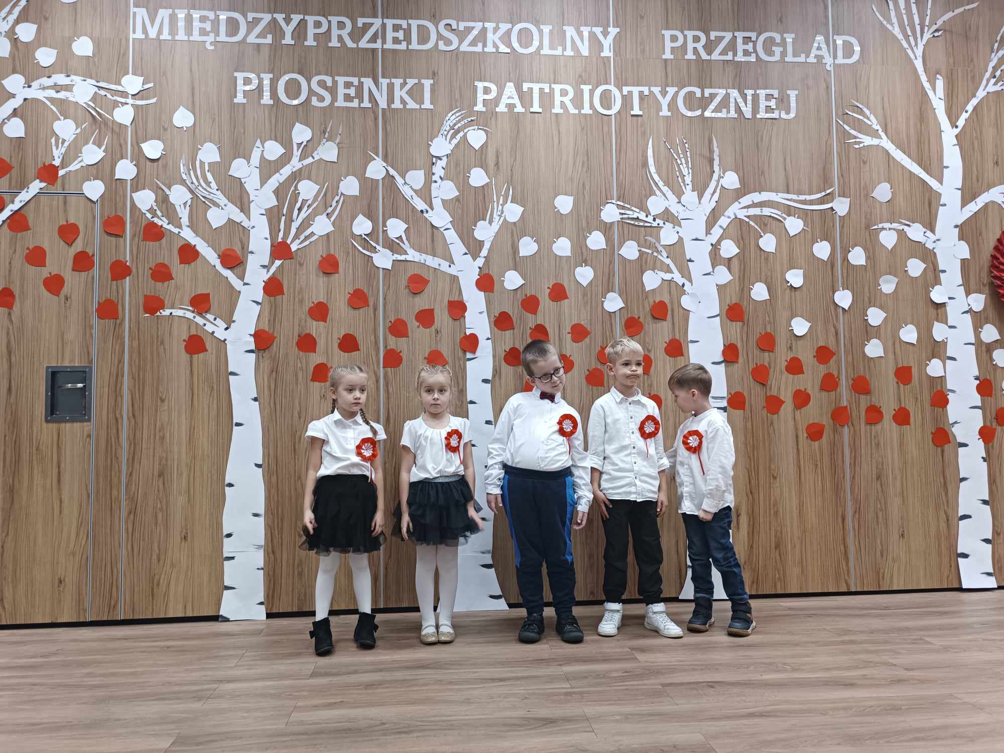 13.11.2023 r. reprezentacja przedszkola z grupy „Zajączki“ wzięła udział w II Międzyprzedszkolnym Przeglądzie Piosenki Patriotycznej zorganizowanym przez Przedszkole Chatka Misia. W Centrum Aktywności Seniora nasze przedszkolaki zaśpiewały piosenkę „Polsko śpiewam dla Ciebie, tańczę i gram“. Mimo niewielkiej tremy Ania, Dominika, Hubert, Krzyś i Franio pięknie się zaprezentowali. Gratulujemy naszym małym artystom i dziękujemy Rodzicom za współpracę.