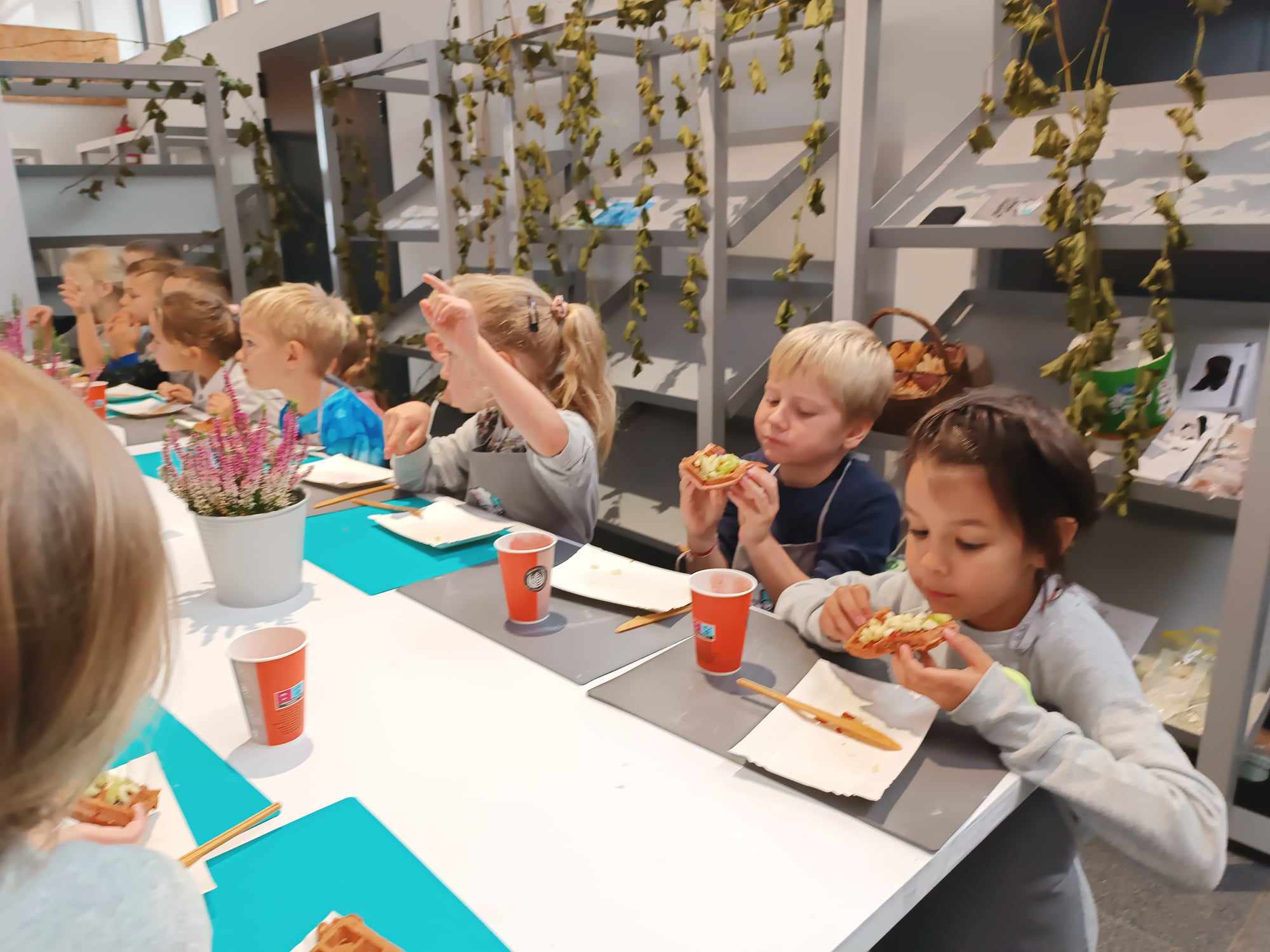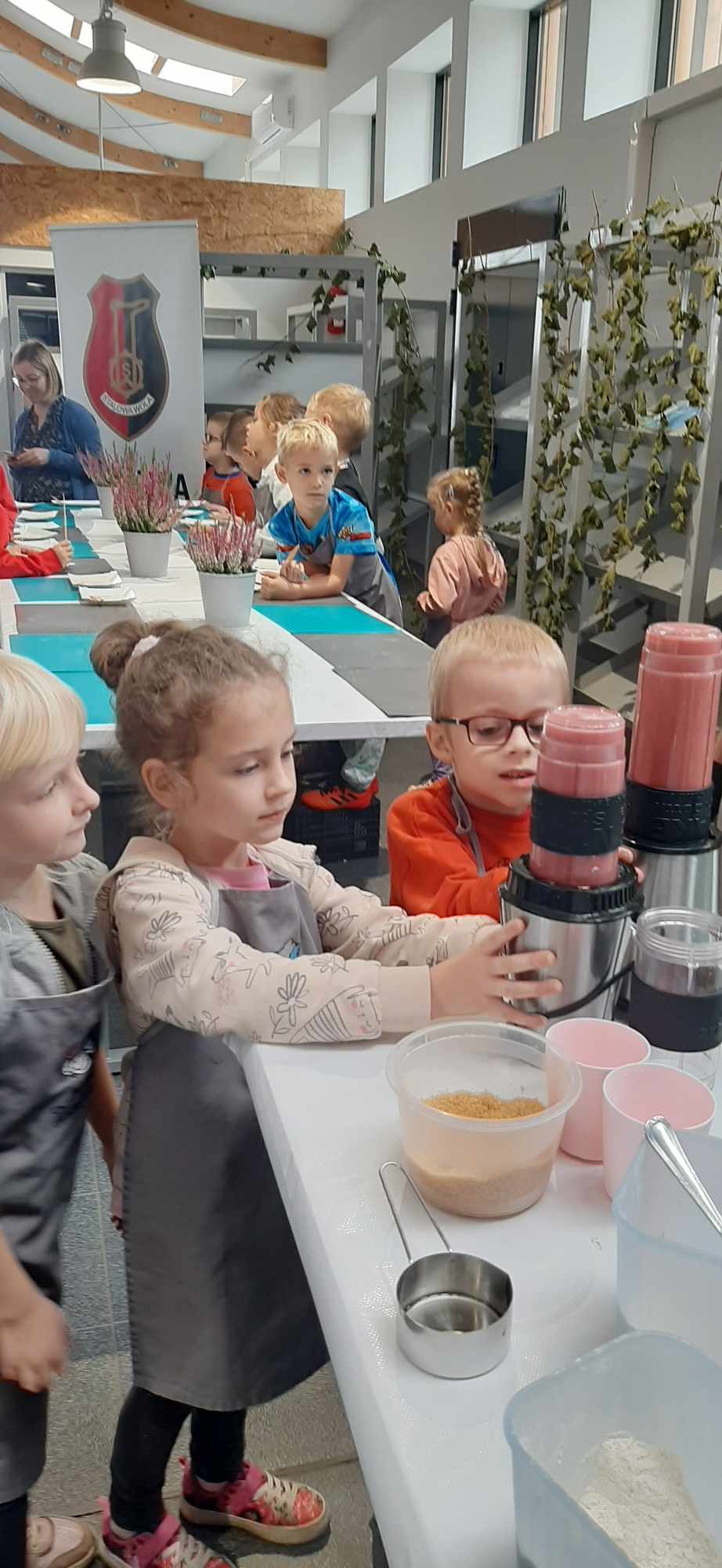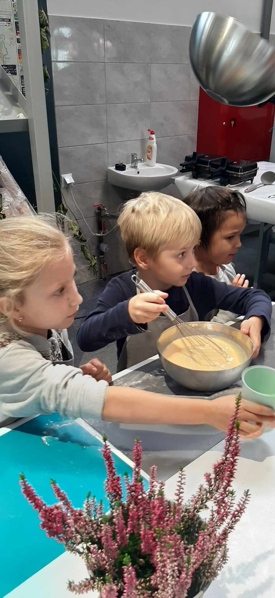 W miniony piątek przedszkolaki z grupy „Zajączki“ wzięły udział w warsztatach kulinarnych prowadzonych przez Państwa Ewelinę i Mariusza Szkutników z „Zabawy w gotowanie“. W radosnej atmosferze „Zajączki“ „oswoiły“ smak buraka, przygotowały pyszny koktajl owocowo-warzywny i różowe gofry z dodatkiem buraka. Jak się okazało, wcale nie był wyczuwalny w przygotowanych potrawach. Była to bardzo wartościowa lekcja zdrowego żywienia.